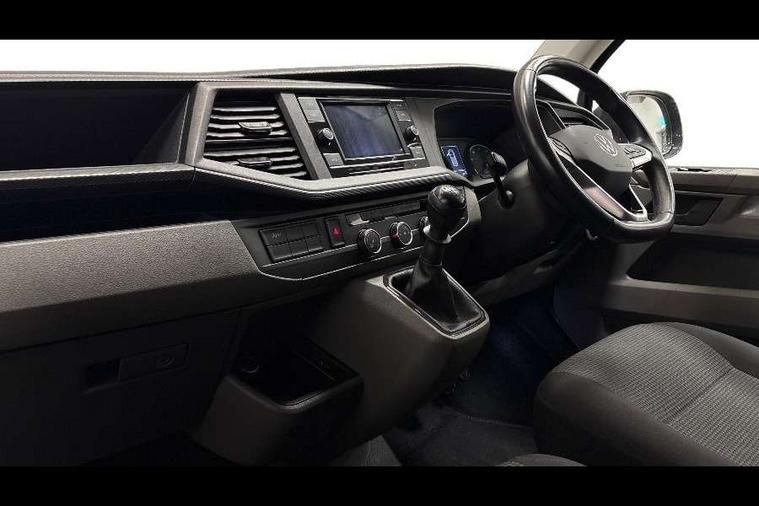Cross wind assist, Dimmable illuminated instruments, Driver alert with Multi-function display plus, eCall emergency system, Forward collision warning front assist with autonomous emergency braking, Mobile phone interface, Multi function display plus with black and white display, 2 USB interfaces type C in dashboard, 4 speakers with 2 tweeters and 2 woofers, Composition colour radio with 6.5" touchscreen, Digital radio reception (DAB+), Volkswagen app connect, 4 stages windshield wiper intermittent control for windshield wipers, Closing rear wing door with unlatching from the inside, H7 twin halogen headlamps, Heat insulating glass (green) in cab and passenger/load compartment, Heat insulating windshield made of laminated glass, Left convex exterior mirror, Rear wing doors without window apertures, Right convex exterior mirror, Separate Daytime running lights, Transporter nameplate on the rear fender, Unpainted radiator grille with 2 chrome trims, 3 spoke leather wrapped multi function steering wheel, Comfort headliner in cab, hardboard roof trim in passenger and load compartment, Dust/pollen filter, Folding grab handles on roof frame, Front and rear left without window closed side panel in load compartment, Front seats on the right in 1st row of seat, Glove compartment without illumination, Heavy duty tool kit and jack, High partition, Interior plastic loading edge protection, LED Interior lighting in load and passenger compartment, Manual adjustable lumbar support for right single seat in 1st row seats, Standard lower part dashboard in palladium, Without breakaway interior rear view mirror, Without refrigerant, Without right side window apertures in passenger and load compartment, Non smoker pack - Transporter, 3 point height adjustable seat belts on outer seats cab with electric pretensioners, Driver and front passenger airbag with front passenger airbag deactivation, Warning buzzer and light for driver and front passenger seat belt not fastened, Without child safety lock in passenger compartment, Electronic immobiliser, Wheel bolts without wheel locks, 16" chassis with 16" brake system, Diesel particulate filter, Electronic stability control, ABS, ASR with deactivation button, hill start assist and brake assist system, Standard anti drum measures, Start/stop system with regenerative breaking,