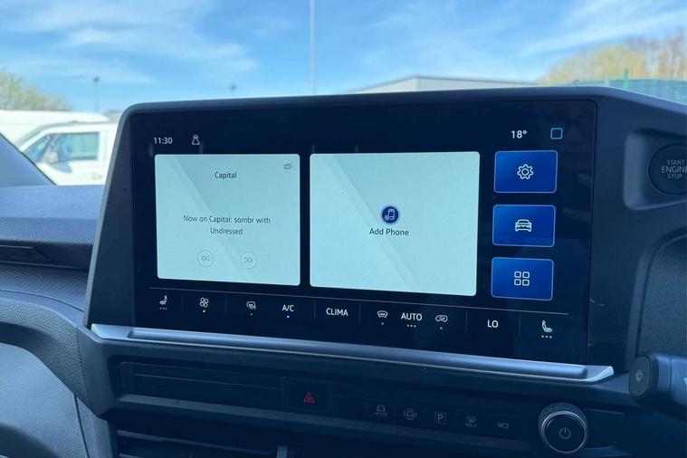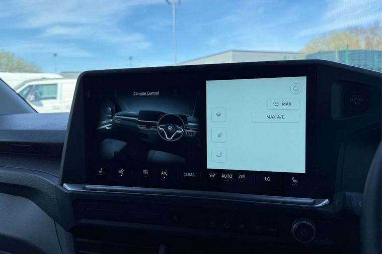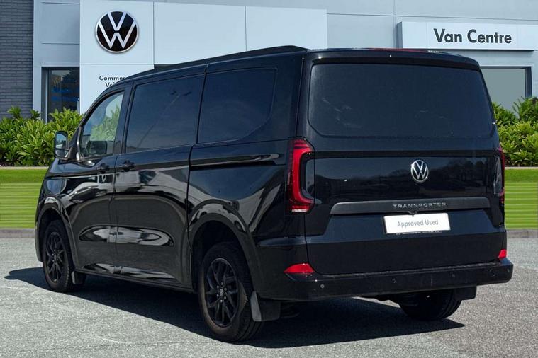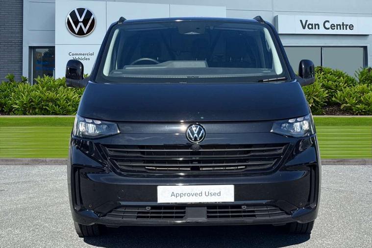12" digital drivers display, 13" touchscreen infotainment display with wireless app connect and DAB radio, 5G Modem, Adaptive cruise control, Apple CarPlay and Android Auto, Dynamic road sign display, eCall emergency system, Electromechanical speed sensitive power steering, height and longitudinally adjustable steering column, Lane and blind spot assist with exit warning system, Preparation of VW connect and connect plus, Traffic jam assist, Wireless mobile phone charging, Wrong way driver warning, Body colour bumpers, Body coloured door handles, Body coloured door mirrors, Body coloured radiator grille, Electrically heated, adjustable and folding door mirrors, Heat reflecting side window glass, Mud flaps front and rear, Rear Transporter nameplate in black grained decorative trim, Vehicle opening configuration 1x 1st row of seats, 2x all doors, 12V outlet in centre console and 12V outlet on rear right D-pillar, 2x 15-W USB data/charging ports in dashboard and 1x USB-C, 1x USB-A center bottom, 2x LED lights in load compartment, 3x additional super bright LED lights in load compartment, 4 way height and tilt adjustable head restraints, 5 additional USB-C charging ports, Black plastic scuff plate for sliding door in cargo without illumination, Cabin interior lighting, Gear selector lever on steering wheel, Glasses compartment in driver side roof, Grab handle on A-pillar passenger side, Illuminated lockable glovebox, Lashing rings for reinforced floor covering, Narrow centre console with cup holder and compartment for mobile phone, Overhead storage compartment, Rubber floor covering in cab, Striped fabric upholstery, Without passenger seats in load compartment, Driver and front passenger airbag with front passenger airbag deactivation, Dual tone horn, Front and curtain airbags for driver and front passenger, Seat belt pretensioner for driver seat, Anti theft alarm system with interior monitoring in cab, backup horn and towing protection, Electronic immobiliser, Lockable wheel bolts, Preparation for alcohol ignition interlock, 5+ Promise, Alternator - 230A, Electromechanical brake booster, Electronic stability control, ABS, ASR with deactivation button, hill start assist and brake assist system,
