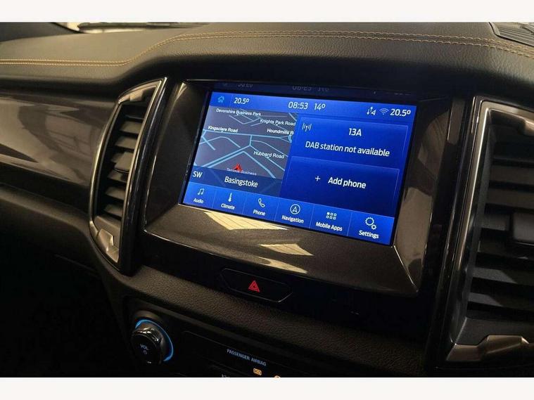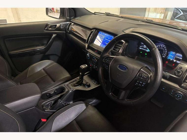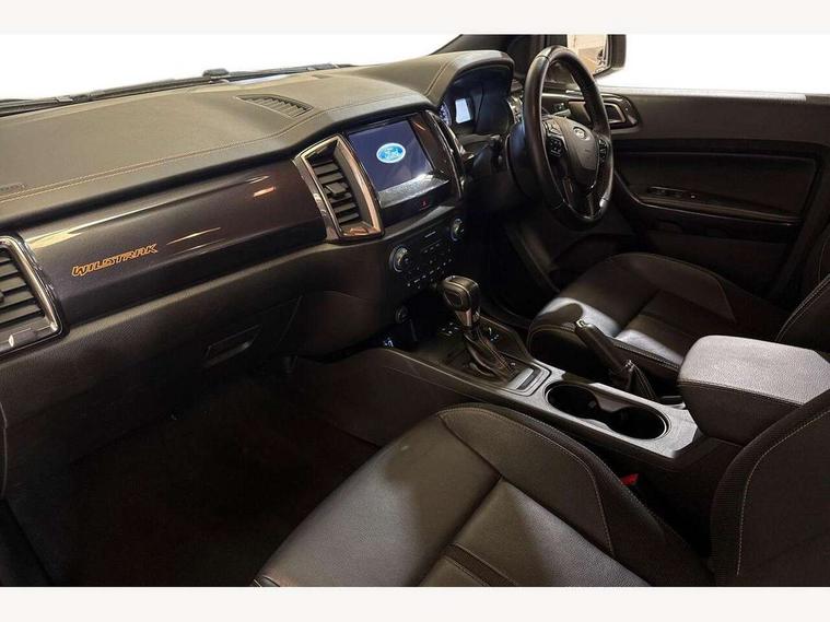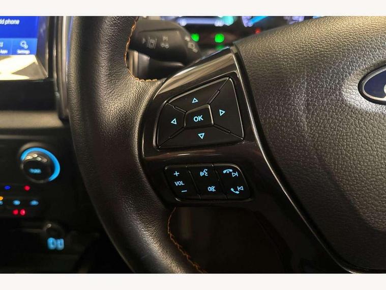 2 key fob, Collision mitigation braking system, Electric power assisted steering, Fixed rear view camera, Intelligent speed assistant, Lane keeping aid, Traffic sign recognition, Trip computer, Automatic headlights, Body coloured plastic front bumper, Boulder grey exterior door handle, Boulder grey exterior door mirror, Boulder grey radiator grille, Daytime running lights, Dual power heated fold back door mirror with puddle lamp and signal, Electrically operated windows with one shot driver's window, Electrochromic interior mirror, Front splash guard and mud flaps, Heated windshield and rear window, High mounted stop lamp with cargo area light, LED Front fog lamp, LED projector headlamps, Moulded in colour tailgate handle, Painted front fender grille, Privacy glass, Rain sensitive windshield wipers, Rear bumper chrome under-bar, Rear bumper step in boulder grey, Rear mudflaps, Roof rails, Side step with brushed inserts, Sports bar, Tailgate - Easy-lift/lower mechanism, Under hood engine cover, Underbody protection, Centre console coolbox, Chrome interior door handle, Driver seat back mounted map pocket, Dual control system - Electronic air temperature control (EATC), Ebony headliner, Heated front seat, Journey grain partial leather upholstery with Wildtrak logo, Leather gearknob, LED ambient interior lighting, Power adjustable 8 way driver seat, Premium front and rear floor mats with Wildtrak logo, Reach and rake adjustable steering column, Roof storage for driver sunglasses, Sport leather stitched steering wheel, Tie down rails and rope hooks, Wildtrak door trim panel insert, ICE feature pack 129 - Ranger, 3 point inertia rear seatbelts, Driver and front passenger airbag, side airbag, curtain airbag and driver knee airbag, ISOFIX child safety seat attachment, Seatbelt reminders for driver and front passenger, Tyre pressure sensors, Double locking power door lock with flip key, Immobiliser, Locking wheel nuts, Passive anti theft system, Passive keyless entry and start system, Power tailgate lock, Spare wheel lock, Thatcham category 1 alarm security system, ABS, ESP and roll over mitigation, Emergency brake assist, Engine start/stop system, Locking rear axle, Power converter,