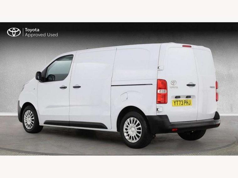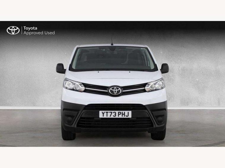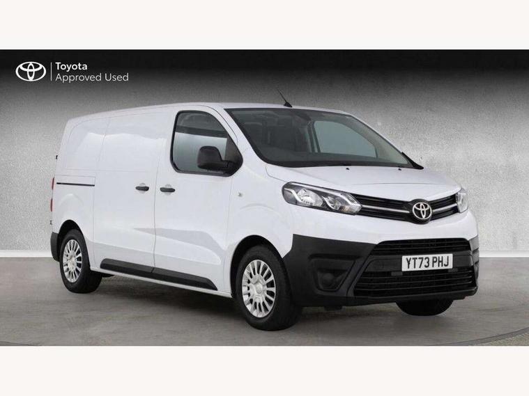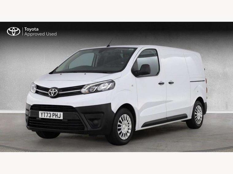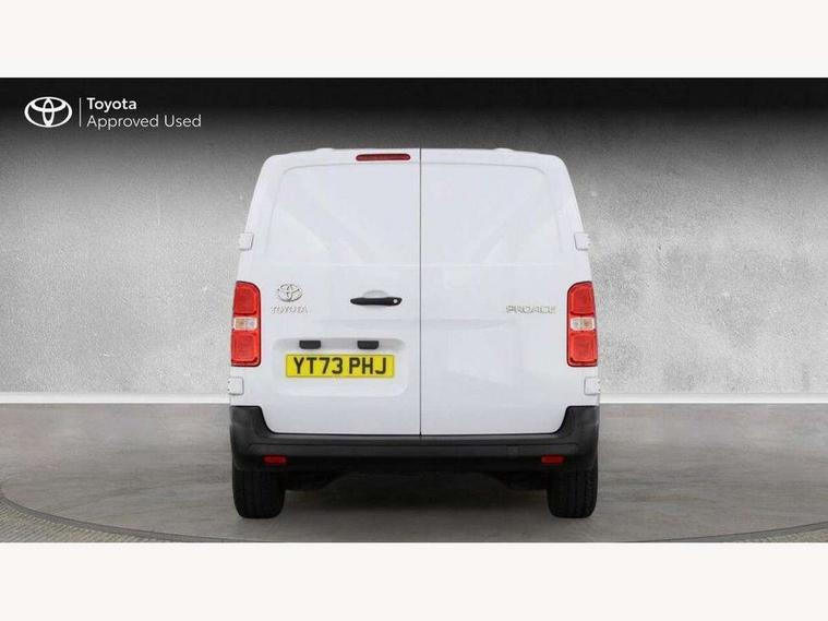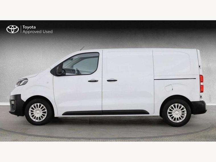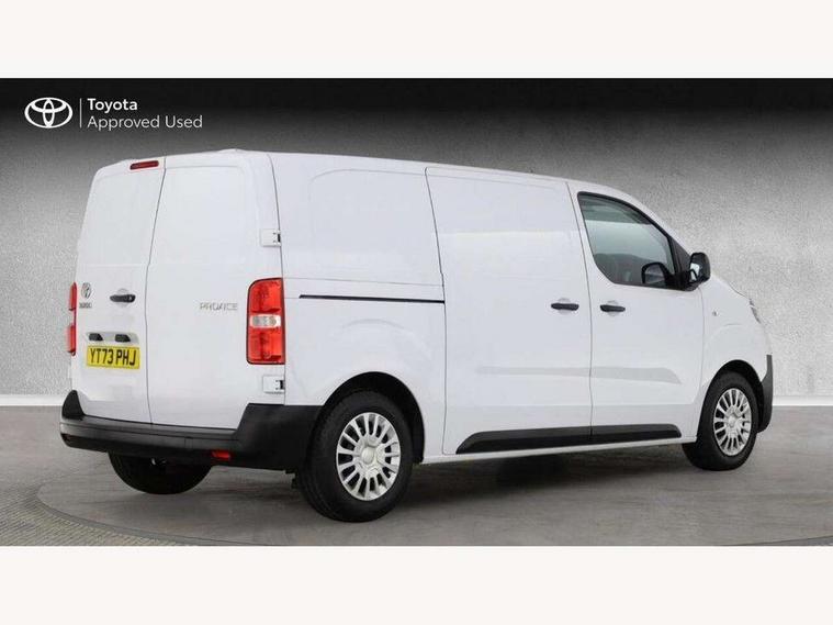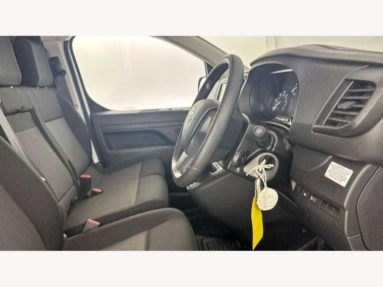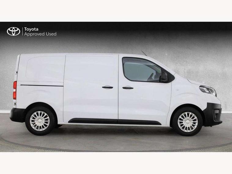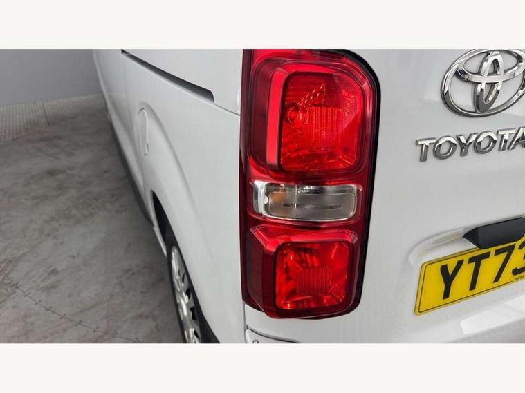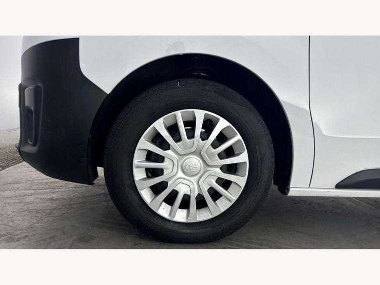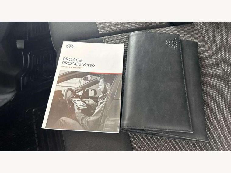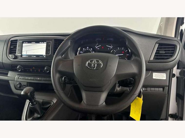 Bluetooth handsfree connectivity, Cruise control, PAS, Tyre pressure warning system (TPWS), 4 speakers, Digital radio (DAB), Radio/CD player, USB connector, 180 degree opening rear doors, Acoustic windscreen, Auto Headlights, Auto wipers, Black bumpers, Black door handles, Black protection moulding on side door, Body Coloured roof, Daytime running lights, Front power windows, Headlight cut-off reminder, Heated door mirrors, LED High mounted stop light, Manually adjustable day/night rear view mirror, Multi reflector halogen headlights, Panel rear wing doors, Power adjustable door mirrors, Rear combination lights, Short Antenna, Smoke tinted (30%) privacy glass on rear passenger window, Two manual sliding side doors, 2 seat front passenger bench, Driver seat armrest, Fabric seats, Front cup holders, Front room lights, Glovebox light, LED Driver and front passenger personal lights, Lighted and chilled upper glove box, Manually reclining and sliding driver and front passenger seats, Open upper dashboard storage compartment, Panel bulkhead with window and protective grille, Storage under passenger bench, Air conditioning and Smart cargo pack - Proace, Parking pack - Proace, Double front passenger airbag, Front passenger airbag on/off switch, Supplement restraint system (SRS) 2 airbags, Alarm, Deadlocks + 2 remote keys, Power door locks, 12V power front outlet, 12v socket in dashboard and rear, Adjustable speed limiter (ASL), Anti lock braking system (ABS), Brake Assist (BA), Stop/start function, Toyota traction select, Vehicle stability control (VSC) and hill start assist control (HAC), Full size spare wheel, Full wheel covers,