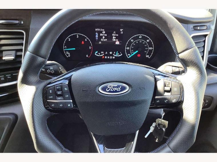 Easy fuel capless refuelling system, Embedded modem, Ford Eco mode, PAS, Selectable drive mode, Trip computer, Vehicle maintenance monitor, Audio controls mounted on steering wheel, 180 Degree rear cargo check arms, Automatic headlamps with follow me home, Automatic lights and wipers, Body colour door handles, Body coloured body side mouldings, Body coloured door mirrors, Body coloured exterior mirror finish, Body coloured lift/decklid exterior handles, Body coloured rear bumpers, Chormed grille with 3 bars, Delete roof mounted turn signals, Digital rear view mirror, Door open tyre carrier drop, Electric front windows with one touch facility for driver and front passenger, Emergency brake light flashing, Front splash guards/Mud flaps, Headlamp levelling, Intermittent front wash/wipe, Kerbside side load doors, Low roof line, Molded load floor liner, Quad beam headlamps, Rear cargo hinged door, Rear door edge warn reflectors, Rear mudflaps, Rear splash guards, Tutone painted plastic front bumper, Unrestricted side load door opening, Wide bodyside grey mouldings, 2 Interior grab handles, Assist handle, Cloth upholstery, Colour keyed exterior pack, Complete rear trim board, Driver and passenger sunvisors with illuminated vanity mirrors, Floorwell lights, Front manual air conditioning, Header mounted courtesy lights - 2 map lights, Header mounted package tray, Height adjustable front headrests, Illuminated footwell, Leather gearshift knob, LED load compartment rail light, Load compartment interior light, Lockable glove box, Map reading lights, Partial molded headliner, Passenger underseat storage box, Reach and rake adjustable steering column, Recirculation heater, Side rear door trim panel - Level 1, Sunglasses roof storage, Tool kit, Interior trim accent pack C - Transit custom, Less rear seat pack - Transit Custom, Load area protection kit 2 - Transit Custom, 3 point seatbelts for all seats, Driver's airbag, Dual note electric horn, Front outer passenger airbag with deactivation switch, Height adjustable drivers seatbelt mount, Passenger airbag restraint, Passenger seatbelt height adj, Seatbelt remainder for driver and passenger, Auto locking on drive-away, Auto relocking, Configurable Unlocking, Inclination anti-Theft sensor, Locking wheel lug nut, Power door dead locks, Remote central locking, Speed dependent power lock group, Thatcham category 1 alarm with 2nd remote key, 2 12v sockets, 80 litre fuel tank, ABS, Auto start/stop system, Diesel particulate filter, ESP, Extra heavy duty alternator, Mechanical parking brake, Power point plug 400W - Level 2, Roll stability control, Side wind mitigation, Standard duty suspension, 16" 6.5 alloy wheels, Full wheelcovers,