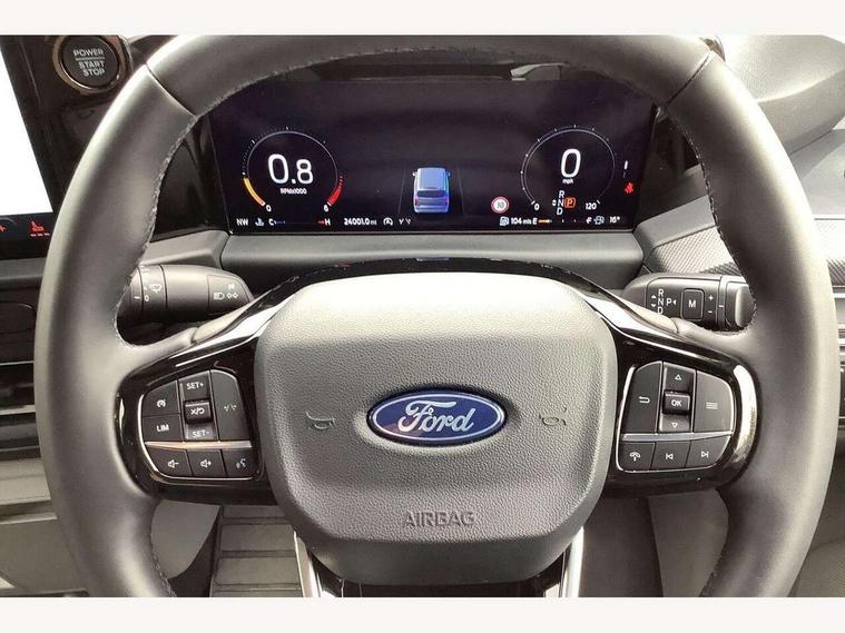 13" Touchscreen, 5G embedded modem, AECS NO SMS/Roll Detect 2G, PAS, Tyre pressure monitor, SYNC 4 - Android Auto/Apple Car Play, advance speech recognition, over the air update capability, Automatic headlights, Automatic windscreen wipers, Body coloured door mirrors, Body coloured front bumper, Body coloured rear bumpers, Daytime running lights, Electric front windows with one touch facility for driver and front passenger, Front mud flaps, Front splash guards, Low roof line, Quickclear front window defroster, Rear cargo hinged door, Rear splash guards, Trailer sway control, 6 Load compartment tie down loops, Courtesy light, Interior grab handle with driver's sunglasses holder, LED lights, Locking glove box lid, Sensico gearshift knob, 2 remote keys, Alcohol Interlock wiring preparation pack, Keyless entry and start, Locking wheel lug nut, Thatcham category 1 alarm, 20L AdBlue tank, ABS, Diesel particulate filter, ESP, Hill launch assist, Traction control, Full wheelcovers,