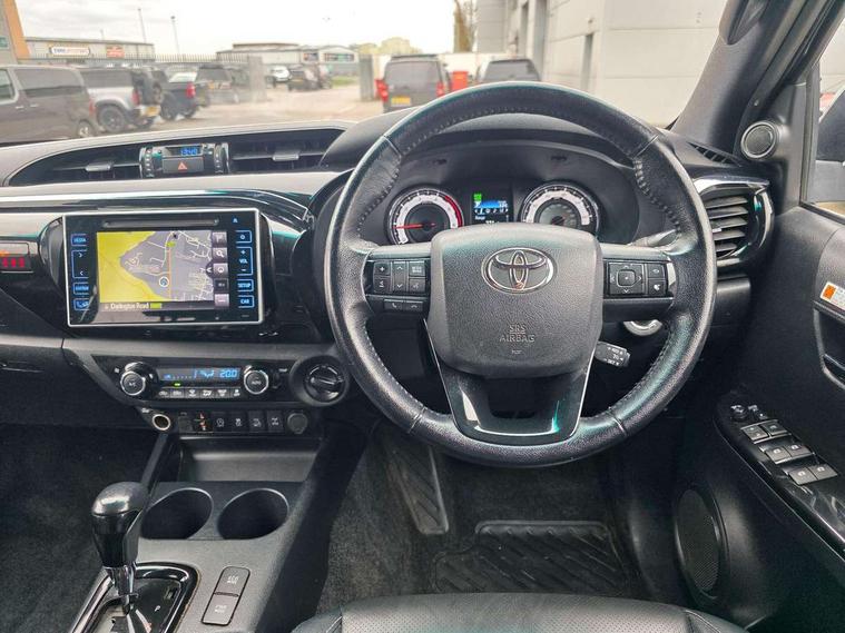 Child proof rear door locks, Driver and passenger airbag, Driver knee airbag, Front seatbelt pre-tensioners + force limiters, Isofix child seat preparation, Rear seatbelt pre-tensioners with load limiters, Side and curtain airbags, 18" Style alloy wheels with Matt black finish, Full size spare wheel, Immobiliser, Keyless entry and start, Lockable tailgate, Remote central locking, 2 12v sockets, ABS, Brake assist, Downhill Assist Control (DAC), EBD, Hill start assist, Load sensing proportioning system, Rear differential lock with auto disconnect, Road sign assist, Stop/start function, Traction control, Vehicle stability control, 6 speakers, Digital radio (DAB), Touch 2 audio + Bluetooth + MP3 Connectivity, USB and auxiliary socket, Black high over bar, Black side bar with steps, Body coloured front bumper, Chrome door handles, Chrome door mirrors, Chrome effect scuff plates, Chrome fog light surrounds, Chrome headlight surround, Chrome plated rear bumper, Chrome trim on radiator grille, Dusk sensitive lights, Electric front windows with one touch drivers window, Electrically retractable door mirror, Electronic headlamp levelling, Follow me home headlights, Front fog lights, Green tinted glass, Headlight washers, Heated rear window, Heated/electric door mirrors with integrated indicators, Laminated rear window privacy glass, LED Daytime running lights, LED headlights, Metallic paint, Mud flaps front and rear, Trailer sway control, Variable front wipers, 220V power socket, Automatic air conditioning, Carpet covered floor, Centre console coolbox, Centre console with lid, storage and armrest, Driver seat height adjuster, Heated leather seats, Leather steering wheel with mounted audio controls and leather gear knob, Leather upholstery, Locking glovebox, Rear seat tip-up function, Tilt adjustable steering wheel, 4.2" Multi information display, Cruise control, Fuel heater, Lane departure warning system, Lights on warning buzzer, PAS, Pre-collision system with pedestrian detection, Rear parking sensor, Rear view camera, Tachometer, Touch 2 with GO navigation system,