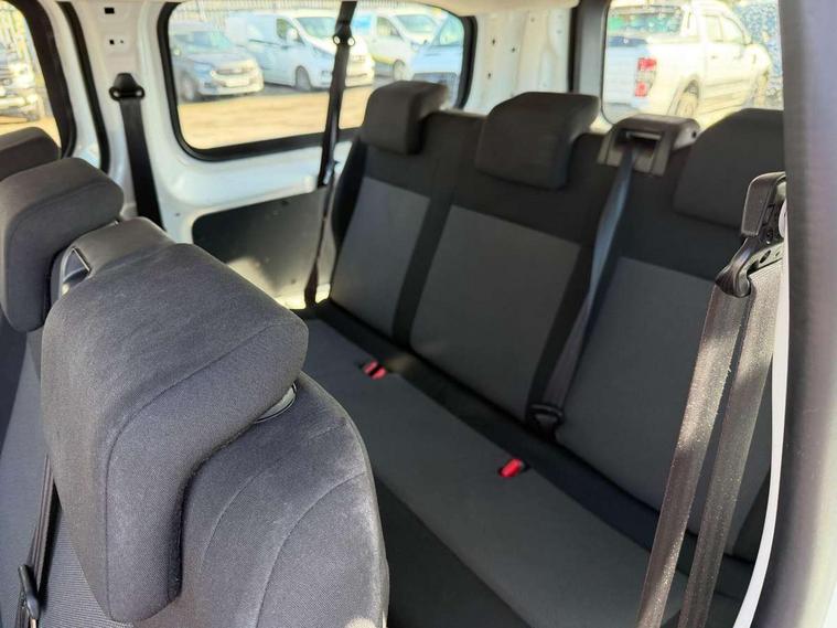 Central facia display - Audio information, Digital clock with automatic RDS time adjustment and outside air temperature with ice warning function, Instrumentation - speedometer, rev counter, low fuel gauge warning light, fuel economy gauge and coolant temperature warning light, Multi function trip computer - Trip odometer, vehicle range, average speed and fuel economy, instantaneous fuel economy and driving time, Speed sensitive electrically assisted power steering, Vauxhall connect including Ecall and connected services, Electric adjustable/heated door mirrors, Electric Front windows with one touch up/down facility, Flexible roof mounted aerial, Halogen headlights, Lights on audible warning, reversing light, hazard warning, rear fog light, high level brake light, side repeat indicators, daytime running light, Nearside and offside sliding side access door with fixed windows, Side protection mouldings, Tailgate and heated rear window with wash/wipe facility, Two speed windscreen wipers with variable intermittent wipe, 12V socket in saloon area, 3 spoke design steering wheel with satin chrome effect bezel, A4 storage compartment in facia, Air conditioning with pollen filter, air recirculation facility, illuminated controls and chilled glovebox facility, Body lock seatbelt pretensioner system, Curitiba cloth upholstery, Dual front passenger's seat with underseat storage tray, fixed position bench seat and backrest and height adjustable padded front head restraint, Facia mounted drinks holders, Fascia mounted gear lever and floor mounted handbrake lever, Front door pockets with three separate compartments, Lower shelf, Open lower glovebox with 12v socket and aux-in facility, Open storage compartments in facia, Reach and rake adjustable steering column, Rear head restraints, Seatbelt unfastened audible warning, Second row three passenger 60/40 split bench seat with tilt function, Six way adjustable driver seat with height and reach, backrest recline, lumbar adj, underseat storage and front padded head restraint, Storage pocket in front of gear lever, Third row three passenger fixed bench seat, Upper glovebox, 3x3 point rear seatbelts, Anti-lock braking system, emergency brake assist, electronic brake force distribution, engine drag torque control and hill start assist, Child proof locks on rear doors, Cornering brake control, Deactivation switch for front passengers front and side-impact airbags, Driver and front passenger airbags, Drivers and front passenger lap belt pretensioner system, Electronic stability programme with traction control, Front seatbelt force limiters, Full length curtain airbags second and third row seating, Full-size curtain airbags for driver and front passenger, Height adjustable lap and diagonal inertia reel seatbelts, ISOFIX child seat mountings incorporating top tether anchor points located on second row rear seats, Straight line stability control, Two front seat side-impact airbags, Tyre pressure monitoring system, Electronic engine deadlock immobiliser, steering column lock, lockable fuel filler cap and anti-theft spare wheel cradle, Locking wheel bolts, Remote control door locking, two keys with integral remote, door deadlocks and selective door locking, Remote control security alarm system - engine compartment protection, ultrasonic detectors in load area and siren, System monitors doors, tailgate, bonnet and the passenger compartment, Visible vehicle identification number, Mistral black/grey facia and door trim, 16" steel wheels with centre cap, Tyre inflation kit,
