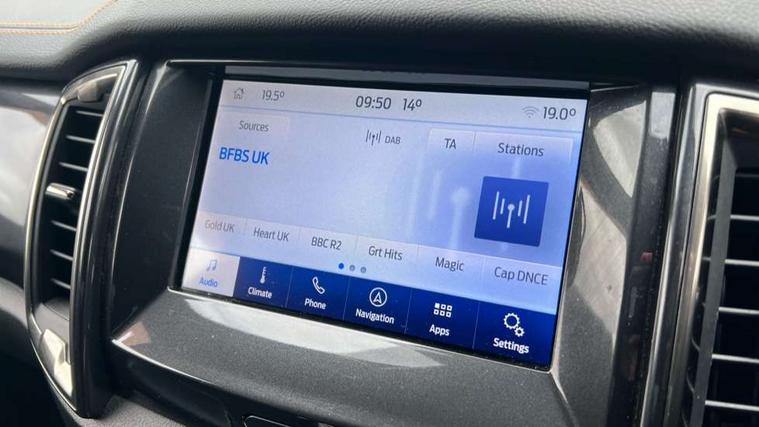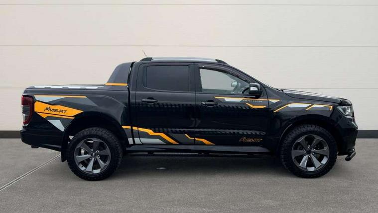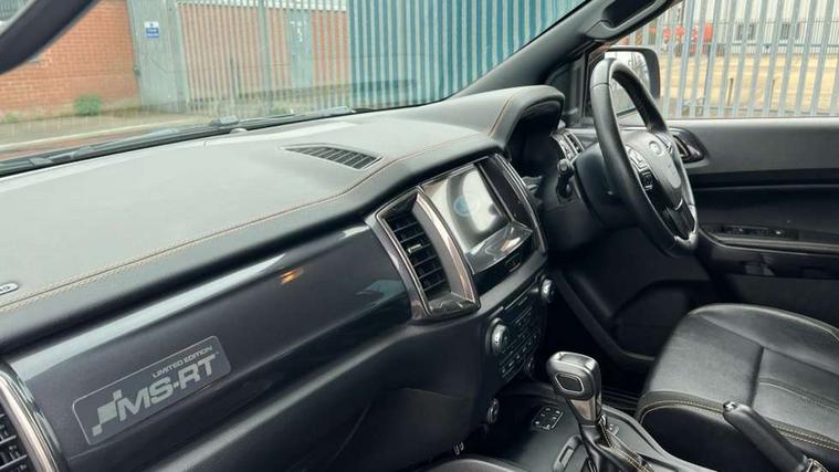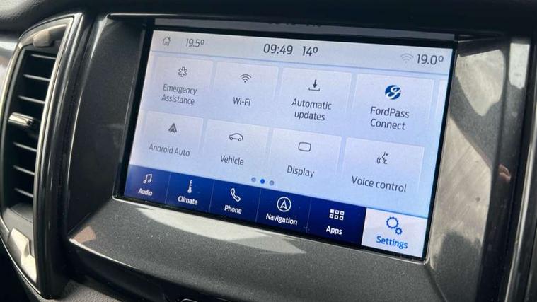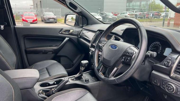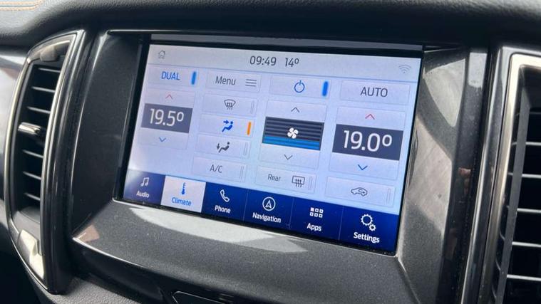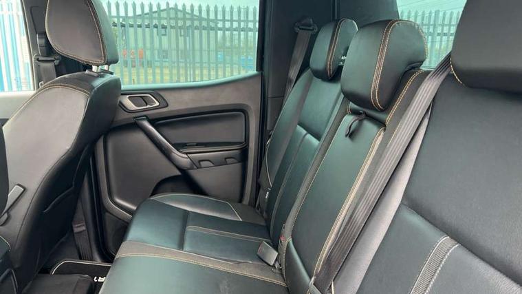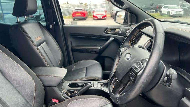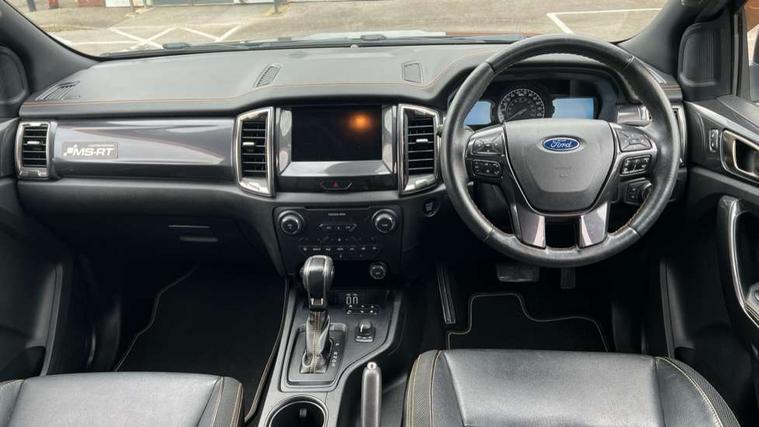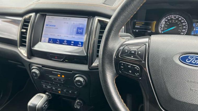 2 key fob, Collision mitigation braking system, Electric power assisted steering, Fixed rear view camera, Intelligent speed assistance, Lane keeping aid, Traffic sign recognition, Trip computer, Body coloured plastic front bumper, Boulder grey exterior door handle, Boulder grey exterior door mirror, Boulder grey radiator grille, Daytime running lights, Dual power heated fold back door mirror with puddle lamp and signal, Electrically operated windows with one shot driver's window, Electrochromic interior mirror, Front splash guard and mud flaps, Heated windshield and rear window, High mounted stop lamp with cargo area light, LED Front fog lamp, LED projector headlamps, Moulded in colour tailgate handle, Painted front fender grille, Privacy glass, Rain sensitive windshield wipers, Rear bumper chrome under-bar, Rear bumper step in boulder grey, Rear mudflaps, Roof rails, Side step with brushed inserts, Tailgate - Easy-lift/lower mechanism, Under hood engine cover, Underbody protection, Centre console coolbox, Chrome interior door handle, Driver seat back mounted map pocket, Dual control system - Electronic air temperature control (EATC), Ebony headliner, Heated front seat, Journey grain partial leather upholstery with Wildtrak logo, Leather gearknob, LED ambient interior lighting, Power adjustable 8 way driver seat, Premium front and rear floor mats with Wildtrak logo, Reach and rake adjustable steering column, Roof storage for driver sunglasses, Sport leather stitched steering wheel, Tie down rails and rope hooks, Wildtrak door trim panel insert, ICE feature pack 129 - Ranger, Driver and front passenger airbag, side airbag, curtain airbag and driver knee airbag, ISOFIX child safety seat attachment, Tyre pressure sensors, Double locking power door lock with flip key, Immobiliser, Locking wheel nuts, Passive anti theft system, Passive keyless entry and start system, Power tailgate lock, Spare wheel lock, Thatcham category 1 alarm security system, ABS, ESP and roll over mitigation, Emergency brake assist, Engine start/stop system, Locking rear axle, Power converter,