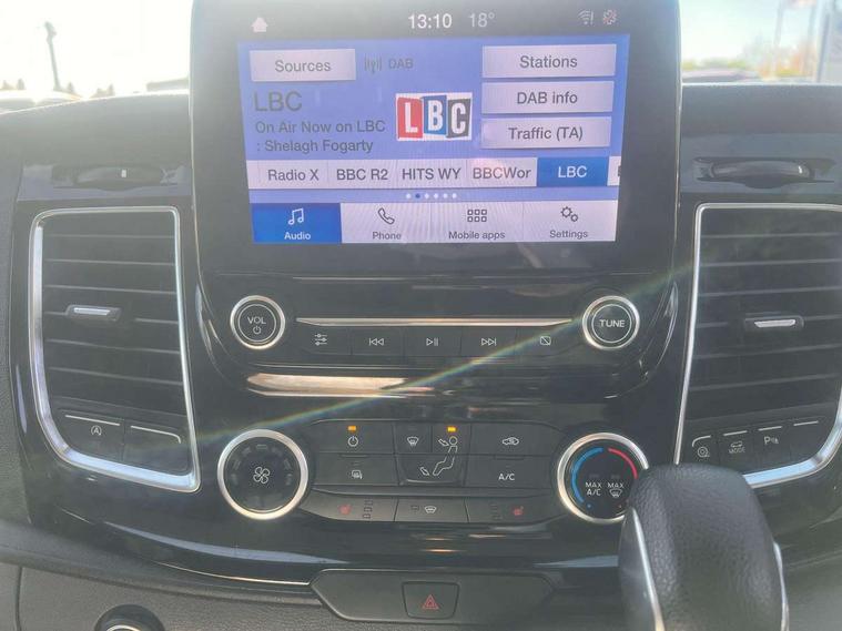 Easy fuel capless refuelling system, Ford Eco mode, PAS, Seatbelt warning indicator, Selectable drive mode, Vehicle maintenance monitor, Audio controls mounted on steering wheel, Aux input socket, 'Guide me home' headlights, Automatic lights and wipers, Body colour door handles, Body coloured body side mouldings, Body coloured door mirrors, Body coloured front bumper, Body coloured lift/decklid exterior handles, Body coloured rear bumpers, Chormed grille with 3 bars, Electric front windows with one touch facility for driver and front passenger, Fixed glazed dual side load doors, Front mud flaps, Headlamp levelling, Intermittent front wash/wipe, Passenger side sliding load door with track cover, Quickclear heated windscreen, Rear mudflaps, 2nd row three seat wide bench, Assist handle, Cloth upholstery, Coat hook, Colour keyed exterior pack, Complete rear trim board, Courtesy light, Driver and passenger sunvisors with illuminated vanity mirrors, Front manual air conditioning, Front passenger grab handle, Grab handle on B pillar, Half height load compartment trim boards, Header mounted package tray, Height adjustable head restraints, Illuminated footwell, Isofix child seat attachments - centre and offside 2nd row seats, Leather gearshift knob, Load box LED lights, Lockable glove box, Map reading lights, Moulded cab headlining, Passenger underseat storage box, Reach and rake adjustable steering column, Recirculation heater, Rubber floor covering, Sunglasses roof storage, Tie-down loops, 3 point seatbelts for all seats, Driver's airbag, Front outer passenger airbag with deactivation switch, Front passenger airbag, Front seatbelt pretensioners, Height adjustable drivers seatbelt mount, Passenger seatbelt height adj, Auto locking on drive-away, Auto relocking, Configurable Unlocking, Power door dead locks, Remote central locking, Thatcham category 1 alarm with 2nd remote key, 2 12v sockets, 80 litre fuel tank, ABS, Auto start/stop system, Diesel particulate filter, ESP + EBA, Heavy duty alternator, Power point plug 400W - Level 2, Roll stability control, Side wind mitigation, 16" 6.5 alloy wheels,