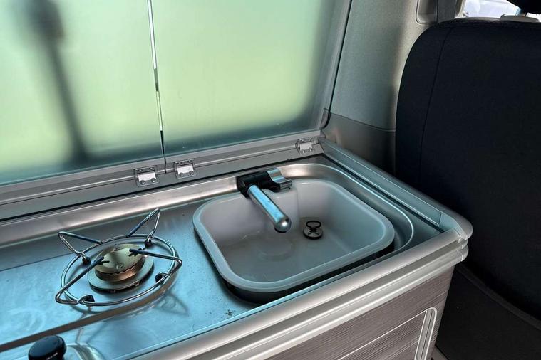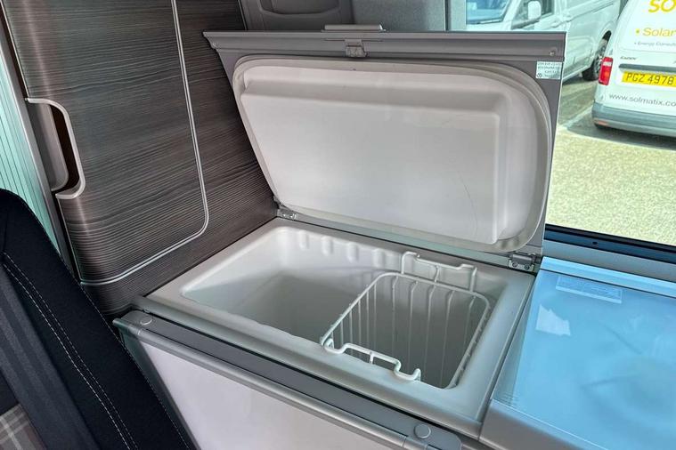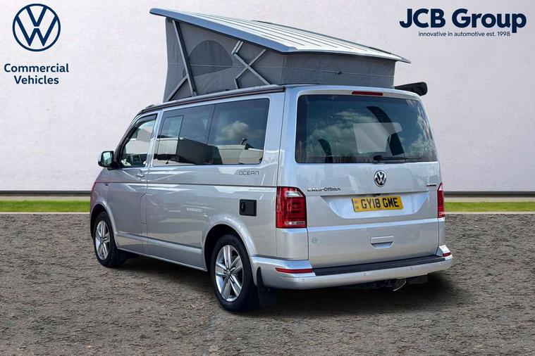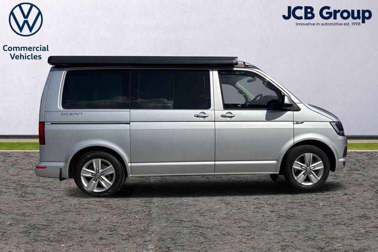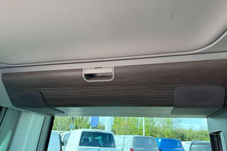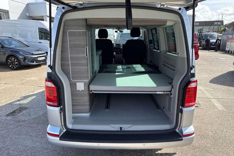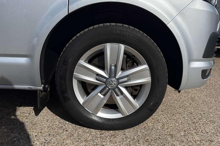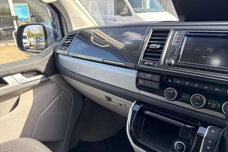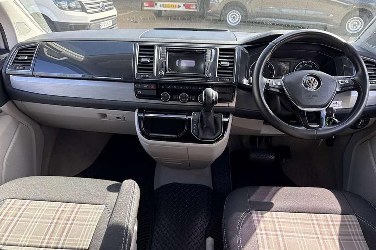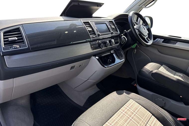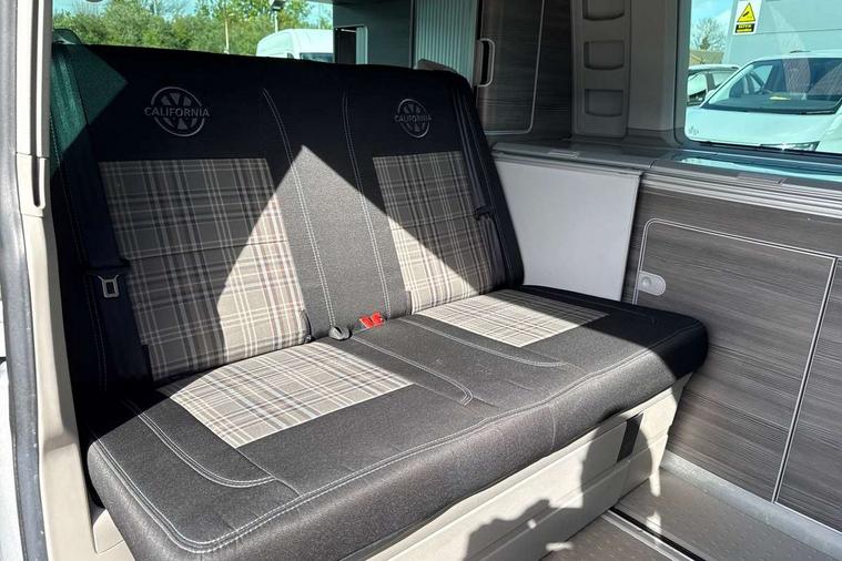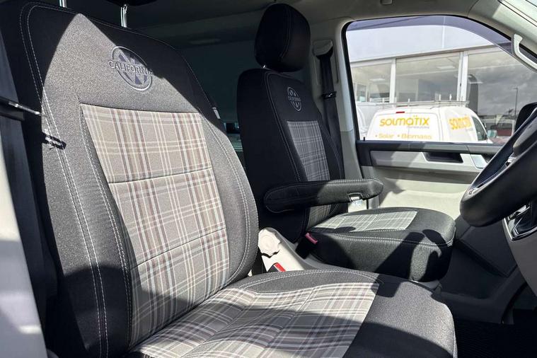 Digital clock, Driver alert system, External temperature gauge, Lockable tailgate, Low washer fluid indicator, Power Steering, Rev counter, Service interval indicator, Tailgate power closing, Trip computer, 180A alternator, 2x Auxiliary rechargable batteries, Auxiliary input socket, DAB Digital radio, Radio/CD + MP3, USB port, Auto dimming rear view mirror, Automatic coming home lighting, Automatic headlights, Body colour bumpers, Body colour door mirrors and handles, Electric adjustable/heated/folding door mirrors, Front fog lights with static cornering function, Glazed tailgate, Heated front washer nozzles and low fluid level indicator, Intermittent windscreen wipers, LED tail lights, Power latching sliding driver's door, Power windows, Rain sensor, Range adjustable headlights, Rear wash/wipe, Roof rails, Side sliding windows, 230V socket, 3 zone climate control, Adjustable dashboard illumination, Auxiliary heater, Camping table with two folding chairs, Centre console, Driver + passenger lumbar support, Driver/front passenger seat height adjustment, Dust/pollen filters, Front door storage bins with bottle holder, Front grab handles, Front seat armrests, Front seat backrest storage nets, Head restraints for all seats, Heated front seats, Independent rear heating controls, Interior illuminated entry steps, ISOFIX top tethers and lower anchor points, Jack and tool kit, Leather gear knob/gaiter, Leather steering wheel, Parking heater with programmable timer and remote control, Passenger floor covering in Moonrock grey, Preparation for separate seat in passenger compartment, Storage net on lower dash passenger side, Sunvisors with illuminated vanity mirrors, Swivelling front seats, Comfort pack - California, Lights and vision pack - California, Smoking pack - California, ABS/EBD, Brake assist function, Child proof door locks, Door open warning, Driver seatbelt warning indicator, Driver/Front Passenger airbags, Driver/front passenger seatbelt tensioners, EDL, ESP, Front side airbags with curtain airbags, Hill hold control, Manual passenger airbag deactivation function, Two tone horn, Tyre pressure warning, Warning triangle and first aid kit, Alarm with interior protection, Electronic immobiliser, Locking wheel nuts, 235/55 R17 tyres with optimised rolling resistance, Wheel covers,