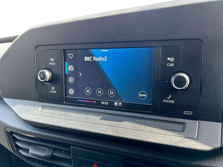 Driver alert system includes drowsiness detection, Emergency call control unit with eCall, Multi-function Display, Seatbelt warning indicator, Service indicator, Start-stop system with regenerative braking, DAB Radio, We Connect Basic Preparation, Automatic hazard light activation under emergency braking, Black front and rear bumpers, Electric front windows, Roof rail preparation, Windscreen wiper with variable intermittent delay and wash-wipe system, Dimming breakaway interior rear-view mirror, Electronically controlled heating system, Interior light in headlining, Lockable glove compartment door with light, Manual height adjustment for front seats, Reach and rake adjustable steering column, Six lashing points for securing loads, Sun visors, with ticket pocket on driver side, 3-point seat belts in front, with pretensioner and height adjustment, Driver and front passenger airbag with front passenger airbag deactivation, Electronic engine immobiliser, Remote central locking with deadlocks, interior locking, Anti locking braking system (ABS), Automatic post collision braking system, Autonomous Emergency Braking Front Assist with Pedestrian Monitoring, Electric parking brake with auto hold function, Electronic brake force distribution (EBD), Electronic differential lock (EDL), Electronic stabilisation programme (ESP), Emergency brake assist, Engine drag torque control (MSR), Hill hold assist, Traction control system (TCS), Decorative beige birch vein inserts,