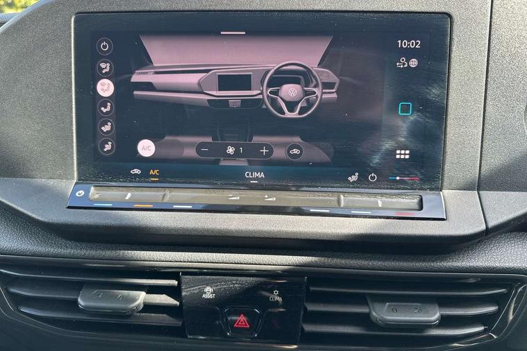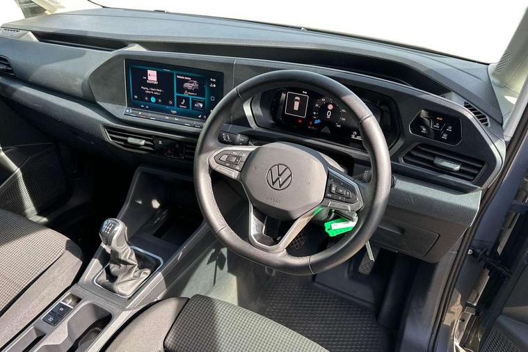 Bluetooth - Mobile phone interface, Driver alert system includes drowsiness detection, Emergency call control unit with eCall, Multi-function Display, Seatbelt warning indicator, Service indicator, Servotronic speed related power assisted steering, Start-stop system with regenerative braking, DAB Radio, We Connect Basic Preparation, Automatic hazard light activation under emergency braking, Body coloured bumpers, Electric front windows, Heat insulating windscreen, Separate daytime running light with automatic headlight control, Side sliding door driver side with additional standard passenger side sliding door, Windscreen wiper with variable intermittent delay and wash-wipe system, Dimming breakaway interior rear-view mirror, Drawers under front seats, Electronically controlled heating system, Interior light in headlining, Lockable glove compartment door with light, Manual height adjustment for front seats and seat squab inclination and depth adjustment on drivers seat, Multi function leather steering wheel, Power-adjustable lumbar support for drivers seat, Reach and rake adjustable steering column, Six lashing points for securing loads, Sun visors with mirror, airbag label on front passenger sun visor, Sun visors, with ticket pocket on driver side, Vanity mirrors, 3-point seat belts in front, with pretensioner and height adjustment, Driver and front passenger airbag with front passenger airbag deactivation, Electronic engine immobiliser, Remote central locking with deadlocks, interior locking, Anti locking braking system (ABS), Automatic post collision braking system, Autonomous Emergency Braking Front Assist with Pedestrian Monitoring, Electric parking brake with auto hold function, Electronic brake force distribution (EBD), Electronic differential lock (EDL), Electronic stabilisation programme (ESP), Emergency brake assist, Engine drag torque control (MSR), Hill hold assist, Traction control system (TCS), Decorative beige birch vein inserts,
