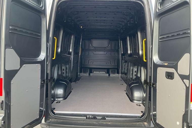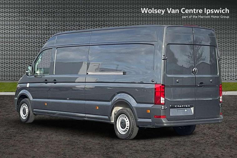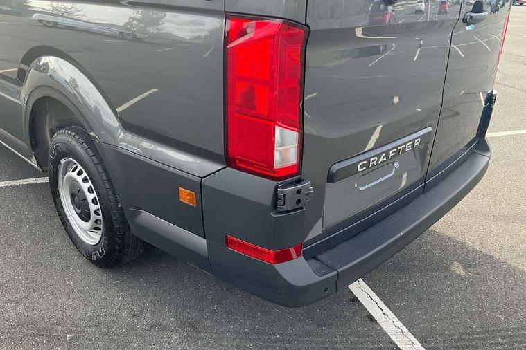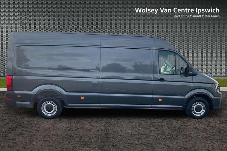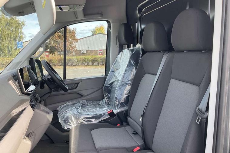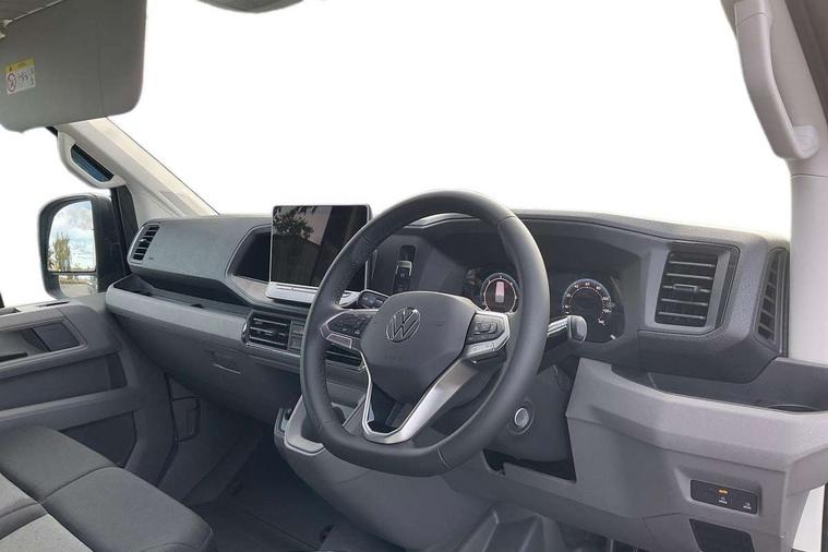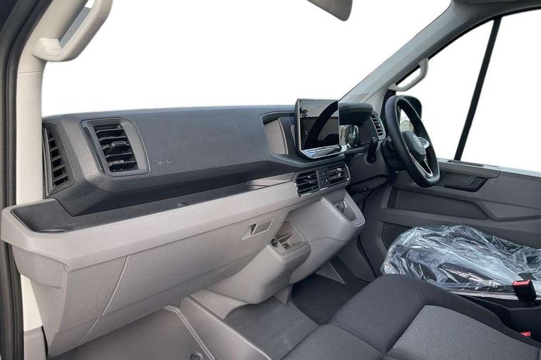 Advanced driver attention and drowsiness monitor, Blind spot monitor, Bluetooth, Digital clock, Digital cockpit with active Info display, Dynamic road sign display, E-call + We connect basic preparation, Forward collision warning with warning and braking reaction to vehicles, pedestrians and cyclists, Front assist including city emergency braking, Instrument cluster, Lights on warning buzzer, Locking fuel cap, Rev counter, Roof console for interior lighting control, Service indicator, Speedometer, USB socket at top of windscreen, Wireless charging, 2 USB C ports in dashboard, DAB Radio, Auto low beam mode, Leaving home function and manual coming home function, Cab doors, Convex and wide angle mirror, Driver seatbelt warning light, Electric windows, Half painted front bumper, Heat insulating glass, Indicators in front door mirrors, One towing eye in front, Rear badges, Rear wing doors with 270 degree hinges, Special identification plate, Touch panel control for exterior lights, Unpainted radiator grille, Windscreen wiper auto control with light and rain sensor, Air recirculation system, Ashtray, Centre console storage tray, CFCU preparation, Charcoal filter, Climatic air conditioning, Document holder on centre console, Drinks holders, Electromechanical Servotronic steering, Electronically controlled heating system, Fully adjustable suspension type driver seat, Grab handles on rear entry pillars, Height adjustable head restraints, Height and reach adjustable steering wheel, Illuminated glove compartment with lockable lid, Interior light, including 2 reading lights, Interior light, switchable by door, Jack and tool kit, Preparation for interface for external use with terminal block, Storage compartments in doors and in step, right, Storage tray on dashboard, Two 12V outlets in the cab (in the dashboard), Without rear side trim panel passenger load compartment, Non-smokers pack - Crafter, 3 point inertia reel belt on all seats, Automatic hazard light with emergency braking, Crosswind assist, Driver and front passenger airbag with front passenger airbag deactivation, Height adjustable seatbelts for outer cab seats, 1 rigid key, Anti-theft alarm with interior monitor, back up horn and tow away protect, SAFELOCK with 2 remote keys, Central locking system with Keyless Go without SAFELOCK entry - Keyless entry and start, Engine immobiliser, ABS, Automatic post collision braking system, EBA, EBD, EDL, Electronic parking brake - hill hold control, ESP, Fly-by-wire automatic gear box shifter, Front disc brakes, HBA, Hill start assist, Start and stop system with regenerative braking, TCS, Hub cap covers,