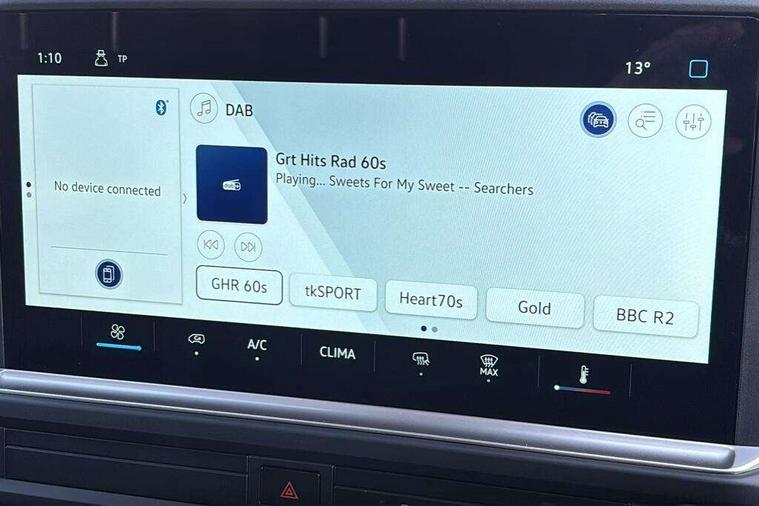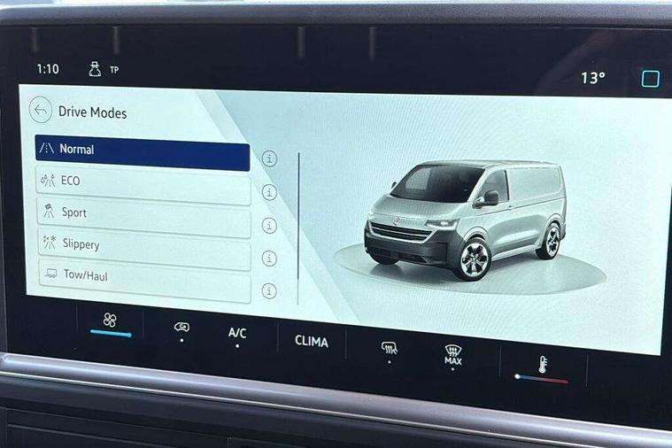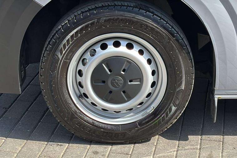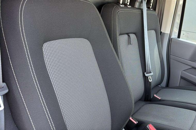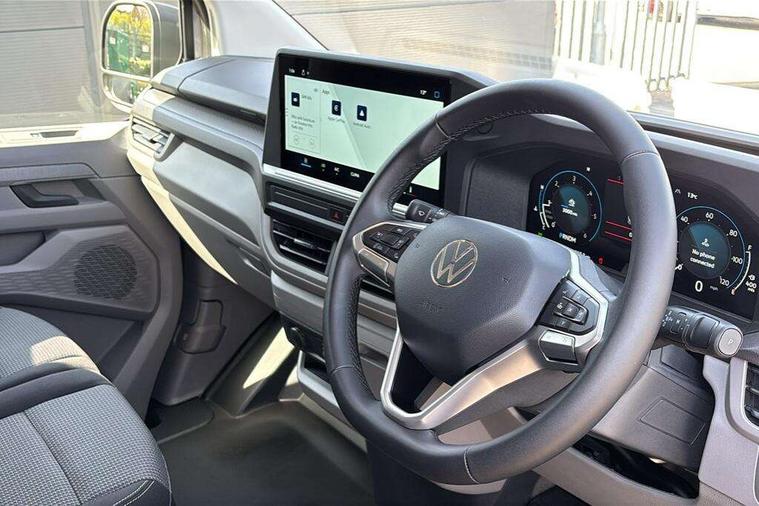 12" digital drivers display, 13" touchscreen infotainment display with wireless app connect and DAB radio, 5G Modem, Apple CarPlay and Android Auto, Cruise control, Dynamic road sign display, eCall emergency system, Electromechanical speed sensitive power steering, height and longitudinally adjustable steering column, Lane assist, Preparation of VW connect and connect plus, Wrong way driver warning, 4 speakers - 2x dashboard, 2x cab doors, Body coloured door handles, Heat reflecting side window glass, Mud flaps front and rear, Rear Transporter nameplate in black grained decorative trim, Vehicle opening configuration 1x 1st row of seats, 2x all doors, 2x 15-W USB data/charging ports in dashboard and 1x USB-C, 1x USB-A center bottom, 2x LED lights in load compartment, 3 spoke leather wrapped multi function steering wheel, 4 way height and tilt adjustable head restraints, Black plastic scuff plate for sliding door in cargo without illumination, Cabin interior lighting, Gear selector lever on steering wheel, Lashing rings for reinforced floor covering, Narrow centre console with cup holder and compartment for mobile phone, Overhead storage compartment, Roof grab handle on front passenger side, Rubber floor covering in cab, Striped fabric upholstery, Without passenger seats in load compartment, Driver and front passenger airbag with front passenger airbag deactivation, Dual tone horn, Front and curtain airbags for driver and front passenger, Seat belt pretensioner for driver seat, Anti theft alarm system with interior monitoring in cab, backup horn and towing protection, Electronic immobiliser, Preparation for alcohol ignition interlock, 5+ Promise, Alternator - 230A, Electronic stability control, ABS, ASR with deactivation button, hill start assist and brake assist system,