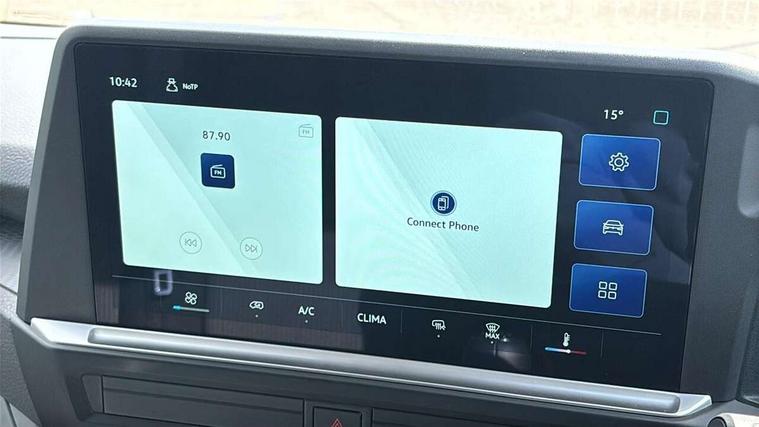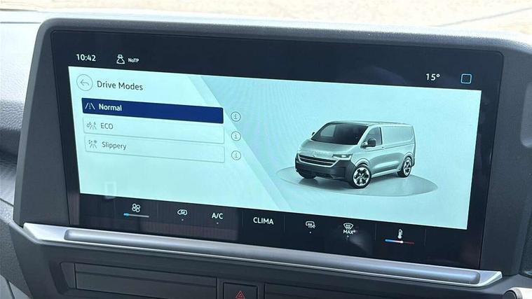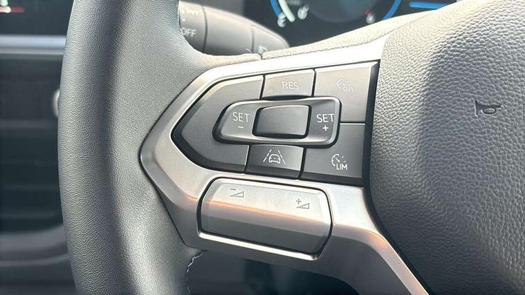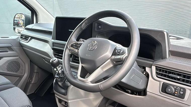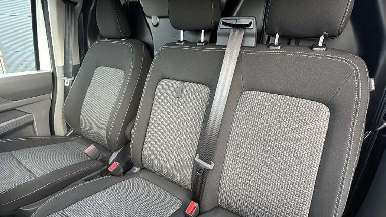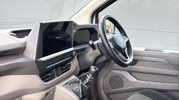 12" digital drivers display, 13" touchscreen infotainment display with wireless app connect and DAB radio, 5G Modem, Apple CarPlay and Android Auto, Cruise control, Dynamic road sign display, eCall emergency system, Electromechanical speed sensitive power steering, height and longitudinally adjustable steering column, Lane assist, Preparation of VW connect and connect plus, Wrong way driver warning, 4 speakers - 2x dashboard, 2x cab doors, Body coloured door handles, Heat reflecting side window glass, Mud flaps front and rear, Rear Transporter nameplate in black grained decorative trim, Vehicle opening configuration 1x 1st row of seats, 2x all doors, 2x 15-W USB data/charging ports in dashboard and 1x USB-C, 1x USB-A center bottom, 2x LED lights in load compartment, 3 spoke leather wrapped multi function steering wheel, 4 way height and tilt adjustable head restraints, Black plastic scuff plate for sliding door in cargo without illumination, Cabin interior lighting, Lashing rings for reinforced floor covering, Leatherette gear lever, Narrow centre console with cup holder and compartment for mobile phone, Overhead storage compartment, Roof grab handle on front passenger side, Rubber floor covering in cab, Striped fabric upholstery, Without passenger seats in load compartment, Driver and front passenger airbag with front passenger airbag deactivation, Dual tone horn, Front and curtain airbags for driver and front passenger, Seat belt pretensioner for driver seat, Anti theft alarm system with interior monitoring in cab, backup horn and towing protection, Electronic immobiliser, Preparation for alcohol ignition interlock, 5+ Promise, Alternator - 230A, Electronic stability control, ABS, ASR with deactivation button, hill start assist and brake assist system,