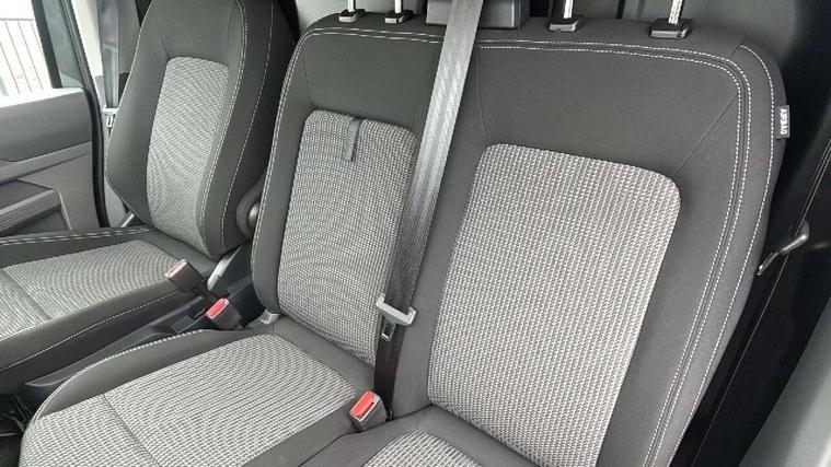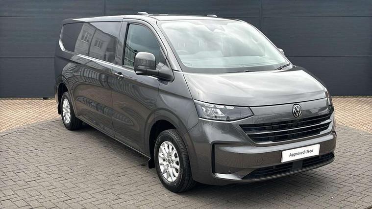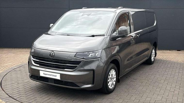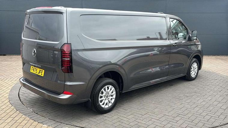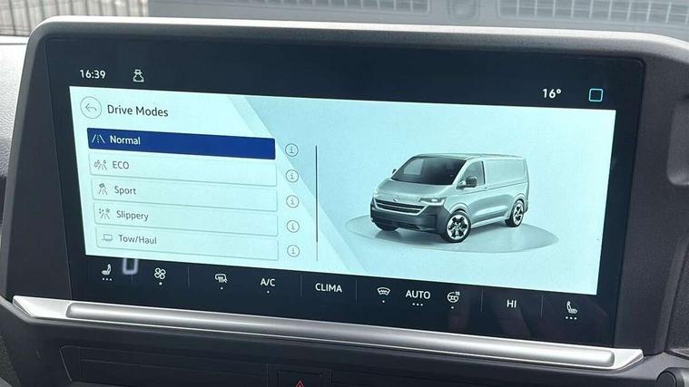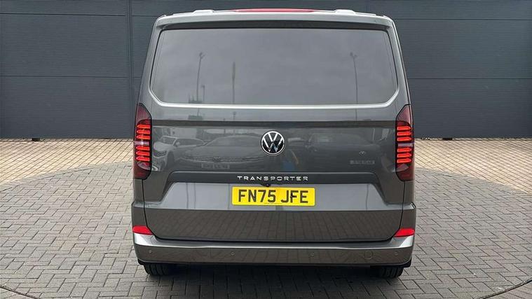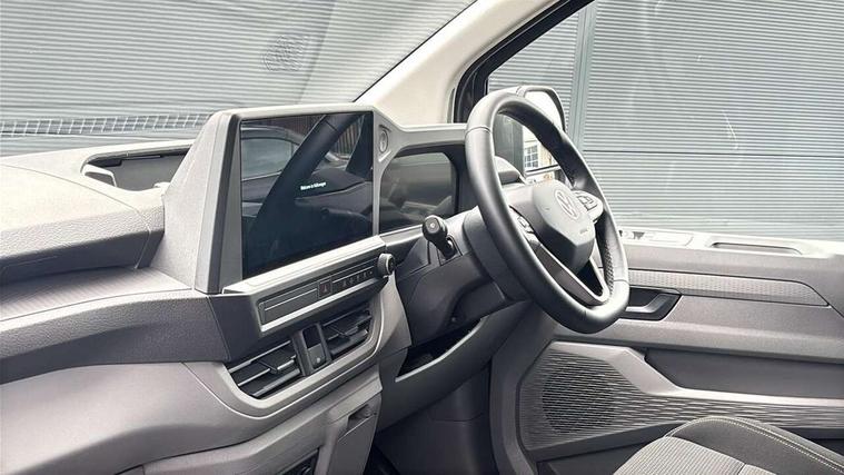 12" digital drivers display, 13" touchscreen infotainment display with wireless app connect and DAB radio, 5G Modem, Adaptive cruise control, Apple CarPlay and Android Auto, Dynamic road sign display, eCall emergency system, Electromechanical speed sensitive power steering, height and longitudinally adjustable steering column, Lane and blind spot assist with exit warning system, Preparation of VW connect and connect plus, Traffic jam assist, Wireless mobile phone charging, Wrong way driver warning, Body colour bumpers, Body coloured door handles, Body coloured door mirrors, Body coloured radiator grille, Electrically heated, adjustable and folding door mirrors, Heat reflecting side window glass, Mud flaps front and rear, Rear Transporter nameplate in black grained decorative trim, Vehicle opening configuration 1x 1st row of seats, 2x all doors, 12V outlet in centre console and 12V outlet on rear right D-pillar, 2x 15-W USB data/charging ports in dashboard and 1x USB-C, 1x USB-A center bottom, 2x LED lights in load compartment, 3x additional super bright LED lights in load compartment, 4 way height and tilt adjustable head restraints, 5 additional USB-C charging ports, Black plastic scuff plate for sliding door in cargo without illumination, Cabin interior lighting, Gear selector lever on steering wheel, Glasses compartment in driver side roof, Grab handle on A-pillar passenger side, Illuminated lockable glovebox, Lashing rings for reinforced floor covering, Narrow centre console with cup holder and compartment for mobile phone, Overhead storage compartment, Rubber floor covering in cab, Striped fabric upholstery, Without passenger seats in load compartment, Driver and front passenger airbag with front passenger airbag deactivation, Dual tone horn, Front and curtain airbags for driver and front passenger, Seat belt pretensioner for driver seat, Anti theft alarm system with interior monitoring in cab, backup horn and towing protection, Electronic immobiliser, Lockable wheel bolts, Preparation for alcohol ignition interlock, 5+ Promise, Alternator - 230A, Electromechanical brake booster, Electronic stability control, ABS, ASR with deactivation button, hill start assist and brake assist system,