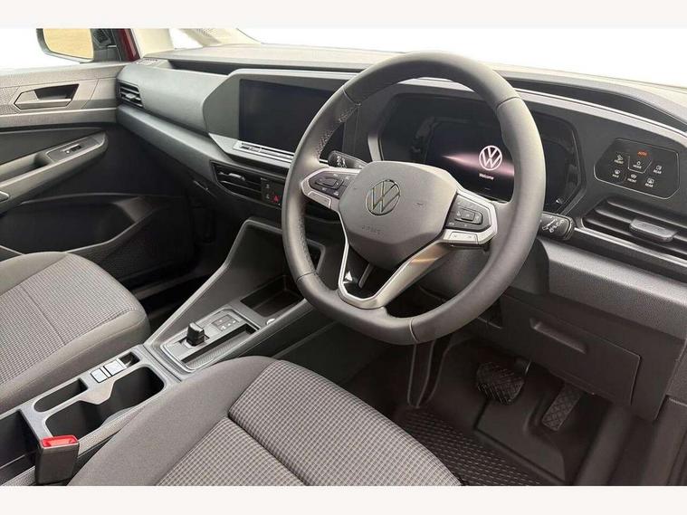 Bluetooth - Mobile phone interface, Car2X technology, Driver alert system, eCall emergency system, Intelligent Speed Assist, Lane assist, Seatbelt warning indicator, Service indicator, Start-stop system with regenerative braking, 2 USB interfaces type C in dashboard, App-Connect - Wireless for Apple CarPlay, DAB Radio, We Connect Plus Preparation, Automatic hazard light activation under emergency braking, Black painted exterior mirror housings, body-colored door handles and Silver sliding door rail, Body coloured bumpers, Electric front windows, LED rear combination lights, LED rear tail lights, Roof rail preparation, Windscreen wiper with variable intermittent delay and wash-wipe system, Dimming breakaway interior rear view mirror, Electronically controlled heating system, ergoComfort seats for driver, Interior light in headliner incorporting LED technology, Lockable glove compartment door with light, Manual heating and ventilation system, Manual height adjustment for front seats and seat cushion inclination and depth adjustment on drivers seat, Multi function leather steering wheel, Power-adjustable lumbar support for drivers seat, Reach and rake adjustable steering column, Six lashing points for securing loads, Steering wheel paddle shift, Storage compartments under driver and front passenger seats, Sun visors with mirror, airbag label on front passenger sun visor, Winter pack plus - Caddy, 3-point seat belts in front, with pretensioner and height adjustment, Driver and front passenger airbag with front passenger airbag deactivation, Tyre pressure monitoring system, Anti-theft alarm system, interior monitoring, backup horn, and towing protection, Electronic engine immobiliser, Remote central locking with deadlocks, interior locking, Anti locking braking system (ABS), Automatic post collision braking system, Brake assist, Diesel particulate filter, Electric parking brake with auto hold function, Electronic brake force distribution (EBD), Electronic differential lock (EDL), Electronic stabilisation programme (ESP), Engine drag torque control (MSR), Hill hold assist, Traction control system (TCS), Decorative beige birch vein inserts, Wheel bolts with anti-theft protection (unlockable),