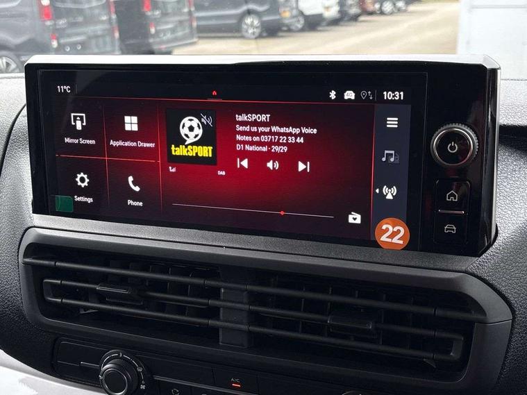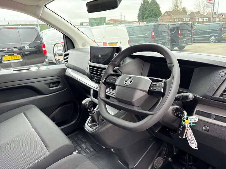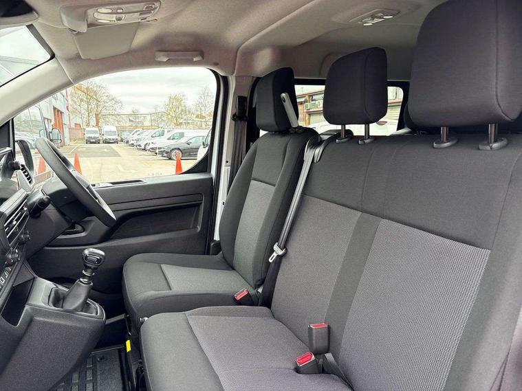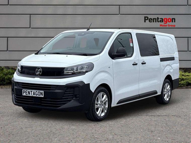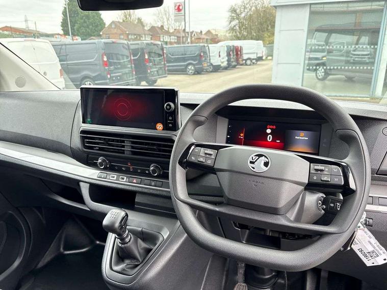 10" digital instrumental cluster, Central fascia display with digital clock, outside air temperature and audio information, Connectivity via BTA with RCA, Driver Attention Alert, level - 3, e-Call and b-Call, Electronic power steering (EPS), Energy absorbing steering column, Forward collision alert, Intelligent Speed Assist, Lane keeping assist, Mobile phone portal - Bluetooth, Vehicle microphone, Phone book access, Smartphone interface with Apple carplay/Android Auto, Multi-function trip computer, Rear parking distance sensor, TPMS (Tyre pressure monitoring system), Vauxhall connect, Audio controls mounted on steering wheel, Flexible short antenna (200mm), Multimedia pro audio system includes Radio AM/FM/DAB, 10" touchscreen with mirror screen(WI-FI), 4G connectivity, Voice control and USB connection, Two speakers and two tweeters, 2nd row glazed with dark tinted acoustic fixed left and right side windows, Automatic headlamps on/off, Black door handles, Black front and rear bumpers, Black side protection mouldings, Black sliding door rail cover, Electrically adjustable + heated door mirrors, Familial vizor, Front electric windows with one touch facility, Glazed nearside and offside sliding side access door, Halogen headlamp with integrated daytime running lights, High beam assist, Laminated acoustic windscreen, Lockable fuel filler cap, Rain sensitive windscreen wipers, Twin solid rear doors, 12V socket in lower glove box (1 only in cabin), 2x USB socket in B-pillar, Air recirculation facility, Chilled glovebox facility, Curitiba cloth upholstery, Driver's seat armrest, Ergonomic 6-way adjustable driver's seat with reach, rake, height and lumbar adjustment, Fixed floor mounted load restraint lashing eyes x6, Full height ABS plastic bulkhead with window, Heated driver's seat with controls on seat, Interior roof trim, Manual air conditioning, Overhead console with 1 ceiling lamp (dome type and 3 lamps), Reach and rake adjustable steering wheel, Removable storage compartment under left and center seats with area for long payload under right seat, Roof grab handles in Row 1, Three individual contoured rear seats with adjustable headrest and 2 armrest, TPO plastic floor in 1st row and painted sheet metal in 2nd row, USB socket in cabin (dashboard), Automatic fuel cut-off and door unlocking in event of accident, Driver and front passenger airbags, Driver and front passengers curtain and side impact airbags, Height adjustable lap and diagonal inertia reel front seatbelts, Passenger airbag deactivation manually, Dashboard mounted central locking push button and auto locking above 7mph, Immobiliser, Remote control central locking and deadlocking, Selective door locking, Two keys with integral remote, 22.5 litres AdBlue tank, 70L fuel tank, ABS, Advanced emergency braking system (AEBS), EBA, Electronic brake force distribution (EBFD), ESC, ESP, Floor mounted handbrake lever, Hill start assist, Manual parking brake, Traction control, Mistral black dashboard trim with liquid paladium decor strip in mid-section, Michelin Agilis 2 tyres - 215/65 R16C,