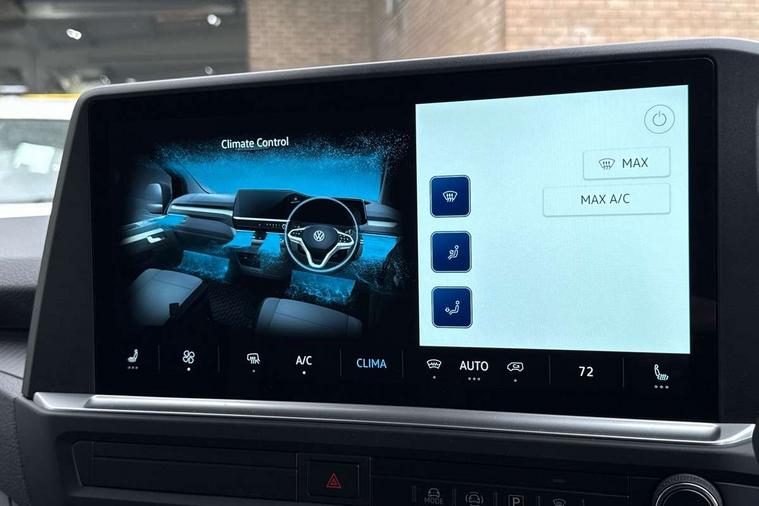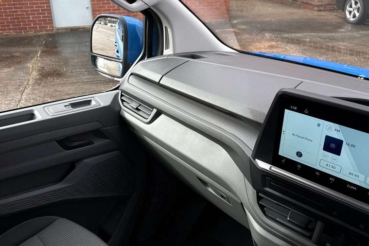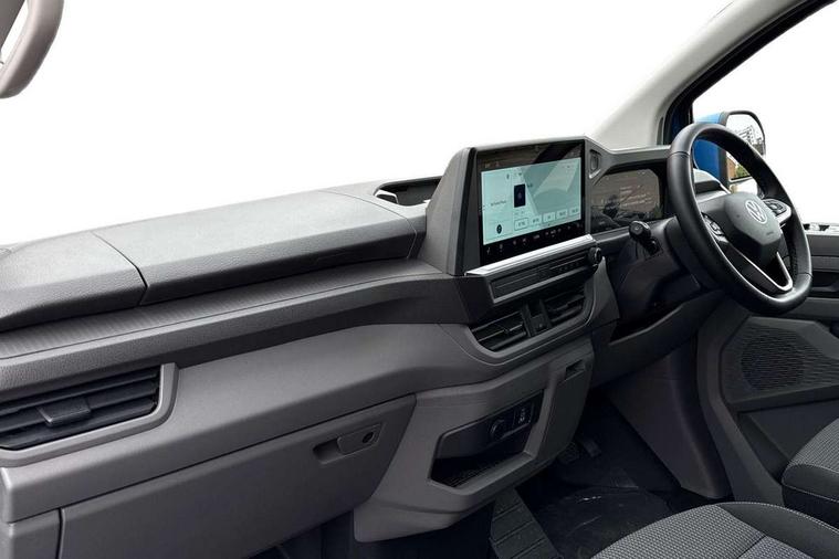 12" digital drivers display, 13" touchscreen infotainment display with wireless app connect and DAB radio, 5G Modem, Adaptive cruise control, Apple CarPlay and Android Auto, Driver alert system, Driver alert system and driver attention monitor, Dynamic road sign display, eCall emergency system, Electromechanical speed sensitive power steering, height and longitudinally adjustable steering column, Front and rear view camera and two side cameras, Lane and blind spot assist with exit warning system, Preparation of VW connect and connect plus, Traffic jam assist, Wireless mobile phone charging, Wrong way driver warning, Body colour bumpers, Body coloured door handles, Body coloured door mirrors, Body coloured radiator grille, Electrically heated, adjustable and folding door mirrors, Heat reflecting side window glass, Mud flaps front and rear, Rear Transporter nameplate in black grained decorative trim, Vehicle opening configuration 1x 1st row of seats, 2x all doors, 12V outlet in centre console and 12V outlet on rear right D-pillar, 2x 15-W USB data/charging ports in dashboard and 1x USB-C, 1x USB-A center bottom, 2x LED lights in load compartment, 3x additional super bright LED lights in load compartment, 4 way height and tilt adjustable head restraints, 5 additional USB-C charging ports, Black plastic scuff plate for sliding door in cargo without illumination, Cabin interior lighting, Gear selector lever on steering wheel, Glasses compartment in driver side roof, Grab handle on A-pillar passenger side, Illuminated lockable glovebox, Lashing rings for reinforced floor covering, Narrow centre console with cup holder and compartment for mobile phone, Overhead storage compartment, Rubber floor covering in cab, Striped fabric upholstery, Without passenger seats in load compartment, Driver and front passenger airbag with front passenger airbag deactivation, Front and curtain airbags for driver and front passenger, Seat belt pretensioner for driver seat, Single tone horn, Anti theft alarm system with interior monitoring in cab, backup horn and towing protection, Electronic immobiliser, Keyless access with safelock, Lockable wheel bolts, Preparation for alcohol ignition interlock, 5+ Promise, Alternator - 230A, Electromechanical brake booster, Electronic stability control, ABS, ASR with deactivation button, hill start assist and brake assist system,