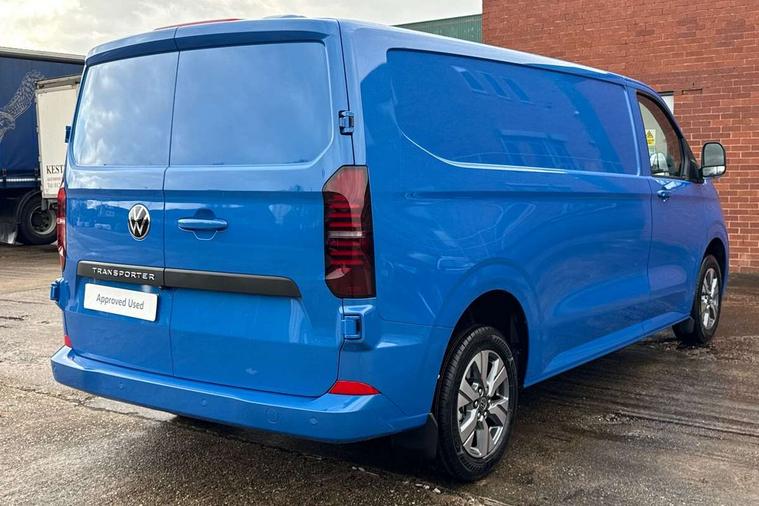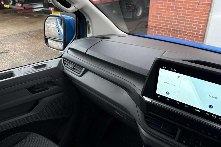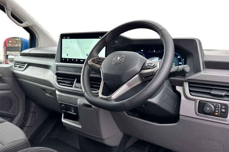 12" digital drivers display, 13" touchscreen infotainment display with wireless app connect and DAB radio, 5G Modem, Adaptive cruise control, Apple CarPlay and Android Auto, Driver alert system, Driver alert system and driver attention monitor, Dynamic road sign display, eCall emergency system, Electromechanical speed sensitive power steering, height and longitudinally adjustable steering column, Front and rear view camera and two side cameras, Lane and blind spot assist with exit warning system, Preparation of VW connect and connect plus, Traffic jam assist, Wireless mobile phone charging, Wrong way driver warning, Body colour bumpers, Body coloured door handles, Body coloured door mirrors, Body coloured radiator grille, Electrically heated, adjustable and folding door mirrors, Heat reflecting side window glass, Mud flaps front and rear, Rear Transporter nameplate in black grained decorative trim, Vehicle opening configuration 1x 1st row of seats, 2x all doors, 12V outlet in centre console and 12V outlet on rear right D-pillar, 2x 15-W USB data/charging ports in dashboard and 1x USB-C, 1x USB-A center bottom, 2x LED lights in load compartment, 3x additional super bright LED lights in load compartment, 4 way height and tilt adjustable head restraints, 5 additional USB-C charging ports, Black plastic scuff plate for sliding door in cargo without illumination, Cabin interior lighting, Gear selector lever on steering wheel, Glasses compartment in driver side roof, Grab handle on A-pillar passenger side, Illuminated lockable glovebox, Lashing rings for reinforced floor covering, Narrow centre console with cup holder and compartment for mobile phone, Overhead storage compartment, Rubber floor covering in cab, Striped fabric upholstery, Without passenger seats in load compartment, Driver and front passenger airbag with front passenger airbag deactivation, Front and curtain airbags for driver and front passenger, Seat belt pretensioner for driver seat, Single tone horn, Anti theft alarm system with interior monitoring in cab, backup horn and towing protection, Electronic immobiliser, Keyless access with safelock, Lockable wheel bolts, Preparation for alcohol ignition interlock, 5+ Promise, Alternator - 230A, Electromechanical brake booster, Electronic stability control, ABS, ASR with deactivation button, hill start assist and brake assist system,