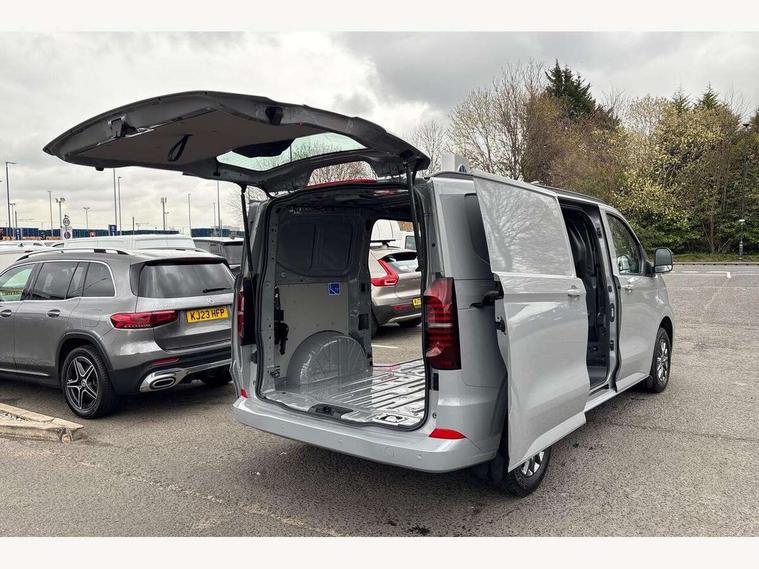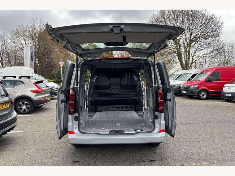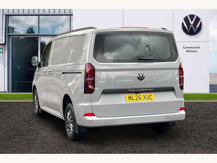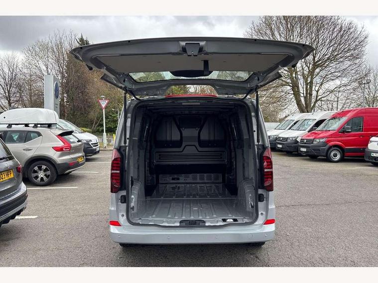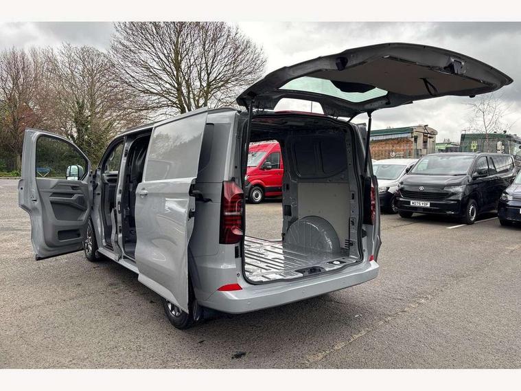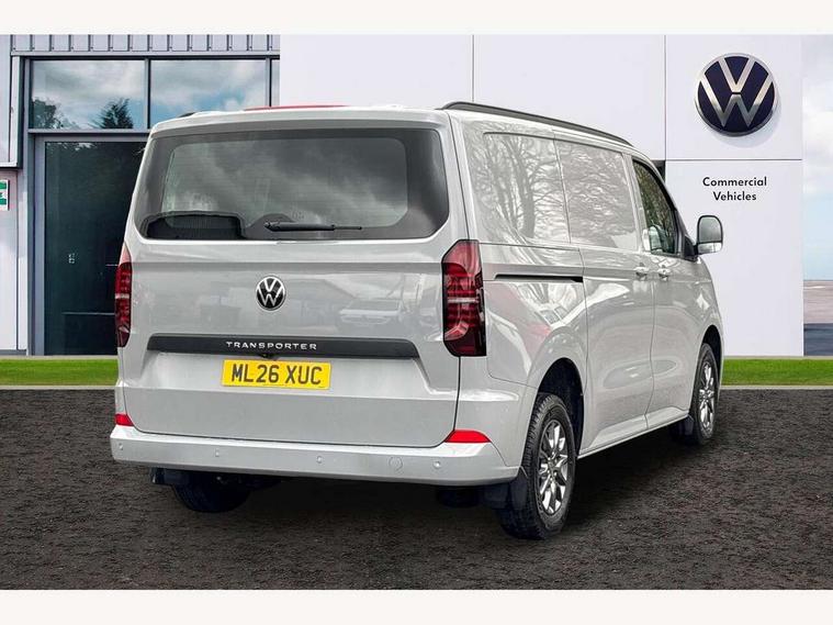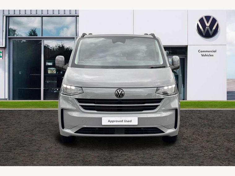 12" digital drivers display, 13" touchscreen infotainment display with wireless app connect and DAB radio, 5G Modem, Apple CarPlay and Android Auto, Cruise control, Driver alert system, Driver alert system and driver attention monitor, Dynamic road sign display, eCall emergency system, Electromechanical speed sensitive power steering, height and longitudinally adjustable steering column, Lane assist, Preparation of VW connect and connect plus, Wrong way driver warning, 4 speakers - 2x dashboard, 2x cab doors, Body coloured door handles, Heat reflecting side window glass, Mud flaps front and rear, Rear Transporter nameplate in black grained decorative trim, Vehicle opening configuration 1x 1st row of seats, 2x all doors, 2x 15-W USB data/charging ports in dashboard and 1x USB-C, 1x USB-A center bottom, 2x LED lights in load compartment, 3 spoke leather wrapped multi function steering wheel, 4 way height and tilt adjustable head restraints, Black plastic scuff plate for sliding door in cargo without illumination, Cabin interior lighting, Gear selector lever on steering wheel, Grab handle on A-pillar passenger side, Lashing rings for reinforced floor covering, Narrow centre console with cup holder and compartment for mobile phone, Overhead storage compartment, Roof grab handle on front passenger side, Rubber floor covering in cab, Striped fabric upholstery, Without passenger seats in load compartment, Parking package plus - Transporter, Driver and front passenger airbag with front passenger airbag deactivation, Front and curtain airbags for driver and front passenger, Seat belt pretensioner for driver seat, Single tone horn, Anti theft alarm system with interior monitoring in cab, backup horn and towing protection, Electronic immobiliser, Preparation for alcohol ignition interlock, 5+ Promise, Alternator - 230A, Electronic stability control, ABS, ASR with deactivation button, hill start assist and brake assist system,