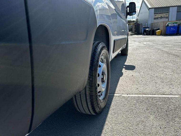 Advanced emergency braking system - Pedestrian and cyclist, Analogue cluster with central 3.5" digital black and white display, Driver Attention Alert, level - 4 (Incl driver weariness camera), Driver drowsiness detection, Electric power steering, Global telematics box module, Intelligent Speed Assist, Lane support system, Lockable fuel cap, Multi-function on-board trip computer, Reverse parking sensor, Service indicator, TPMS (Tyre pressure monitoring system), Traffic sign recognition, Aerodynamic kit - Central spoiler, air guides, active grille shutter, Black rear bumper, Black side rubbing strips, exterior door handles and door mirrors, Electric front windows, Front windows tinted to 30 percentage opacity, Halogen headlamp with integrated daytime running lights, High level third brake light, Laminated acoustic windscreen, Nearside sliding side loading door, Twin lens door mirrors with electrically adjustable and heated upper mirror, Visible VIN at base of windscreen, 12V socket in cabin, 6 way driver's seat with lumbar adjustment and armrest, Cargo lashing hooks in rear, Closed upper and open lower glove boxes, Dashboard storage areas, Front door pockets with 1.5L bottle holder, Front seats with height adjustable head restraints, Full steel bulkhead with clothes hook, Hard plastic floor protection in cabin, Manual air conditioning, Mistral black dashboard, Overhead console with ceiling lamps, Rake and reach adjustable driver's seat, Reach adjustable steering wheel, Roof trim in cabin, Two cup holders and mobile phone storage in centre of lower dashboard, Automatic activation of hazard warning lights on major deceleration, Driver's airbag, Height adjustable 3 point pre-tensioner seat belts with force limiter (centre belt on dual passenger seat non-height adjust, no pre-tensioner), Automatic door unlocking in event of AEBS activation, Dashboard mounted central locking push button and auto locking above 12 mph, Perimetric and volumetric, Thatcham category 1 approved alarm, Remote central locking with deadlocking, Remote control key x2, Thatcham approved rolling code transponder immobiliser, 4 sensor ABS + EBD, Electronic Stability Control (ESC), Hill start assist, Fix and go kit,