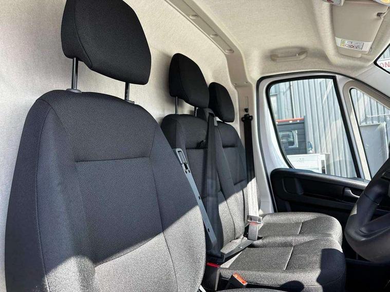 Advanced emergency braking system - Pedestrian and cyclist, Analogue cluster with central 3.5" digital black and white display, Driver Attention Alert, level - 4 (Incl driver weariness camera), Driver drowsiness detection, Electric power steering, Global telematics box module, Intelligent Speed Assist, Lane support system, Lockable fuel cap, Multi-function on-board trip computer, Reverse parking sensor, Service indicator, TPMS (Tyre pressure monitoring system), Traffic sign recognition, Aerodynamic kit - Central spoiler, air guides, active grille shutter, Black rear bumper, Black side rubbing strips, exterior door handles and door mirrors, Electric front windows, Front windows tinted to 30 percentage opacity, Halogen headlamp with integrated daytime running lights, High level third brake light, Laminated acoustic windscreen, Nearside sliding side loading door, Twin lens door mirrors with electrically adjustable and heated upper mirror, Visible VIN at base of windscreen, 12V socket in cabin, 6 way driver's seat with lumbar adjustment and armrest, Cargo lashing hooks in rear, Closed upper and open lower glove boxes, Dashboard storage areas, Front door pockets with 1.5L bottle holder, Front seats with height adjustable head restraints, Full steel bulkhead with clothes hook, Hard plastic floor protection in cabin, Manual air conditioning, Mistral black dashboard, Overhead console with ceiling lamps, Rake and reach adjustable driver's seat, Reach adjustable steering wheel, Roof trim in cabin, Two cup holders and mobile phone storage in centre of lower dashboard, Automatic activation of hazard warning lights on major deceleration, Driver's airbag, Height adjustable 3 point pre-tensioner seat belts with force limiter (centre belt on dual passenger seat non-height adjust, no pre-tensioner), Automatic door unlocking in event of AEBS activation, Dashboard mounted central locking push button and auto locking above 12 mph, Perimetric and volumetric, Thatcham category 1 approved alarm, Remote central locking with deadlocking, Remote control key x2, Thatcham approved rolling code transponder immobiliser, 4 sensor ABS + EBD, Electronic Stability Control (ESC), Hill start assist, Fix and go kit,