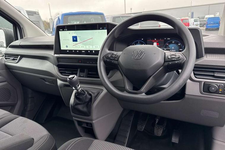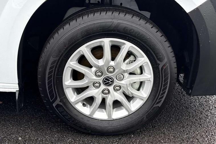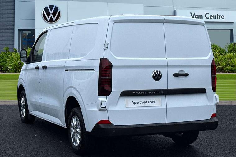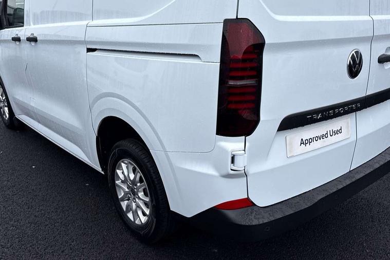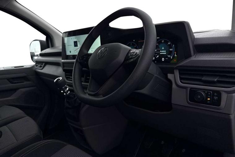 12" digital drivers display, 13" touchscreen infotainment display with wireless app connect and DAB radio, 5G Modem, Apple CarPlay and Android Auto, Cruise control, Driver alert system, Driver alert system and driver attention monitor, Dynamic road sign display, eCall emergency system, Electromechanical speed sensitive power steering, height and longitudinally adjustable steering column, Lane assist, Preparation of VW connect and connect plus, Wrong way driver warning, 4 speakers - 2x dashboard, 2x cab doors, Grained black door handles, Heat reflecting side window glass, High beam control, Laminated windshield made of heat-reflecting glass, LED rear combination lamps, Rear Transporter nameplate in black grained decorative trim, Vehicle opening configuration 1x 1st row of seats, 2x all doors, 2x 15-W USB data/charging ports in dashboard and 1x USB-C, 1x USB-A center bottom, 2x LED lights in load compartment, 4 way height and tilt adjustable head restraints, Black plastic scuff plate for sliding door in cargo without illumination, Cabin interior lighting, Grab handle on A-pillar passenger side, Lashing rings for reinforced floor covering, Narrow centre console with cup holder and compartment for mobile phone, Overhead storage compartment, Plastic gear lever, Roof grab handle on front passenger side, Rubber floor covering in cab, Standard glove compartment, Striped fabric upholstery, Without passenger seats in load compartment, Exterior pack 1 - Transporter, Interior trim pack - Transporter, Driver and front passenger airbag with front passenger airbag deactivation, Front and curtain airbags for driver and front passenger, Seat belt pretensioner for driver seat, Single tone horn, Anti theft alarm system with interior monitoring in cab, backup horn and towing protection, Electronic immobiliser, Preparation for alcohol ignition interlock, 5+ Promise, Alternator - 230A, Electronic stability control, ABS, ASR with deactivation button, hill start assist and brake assist system,