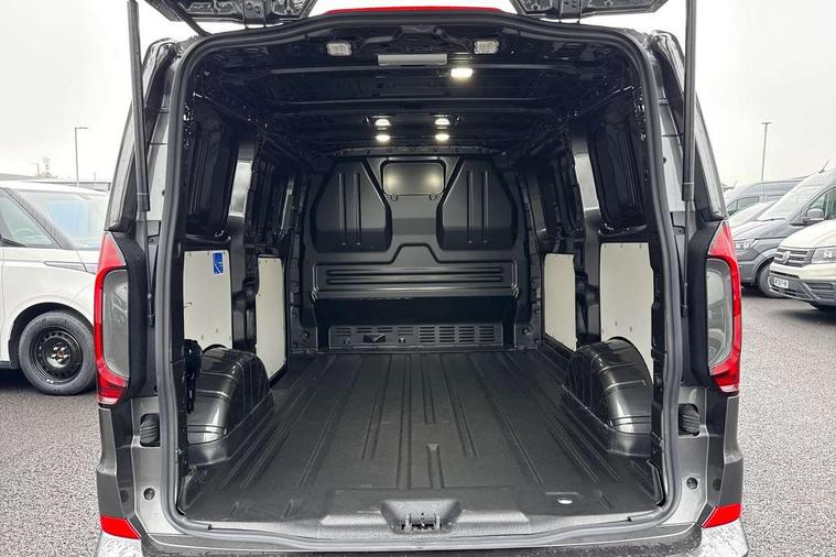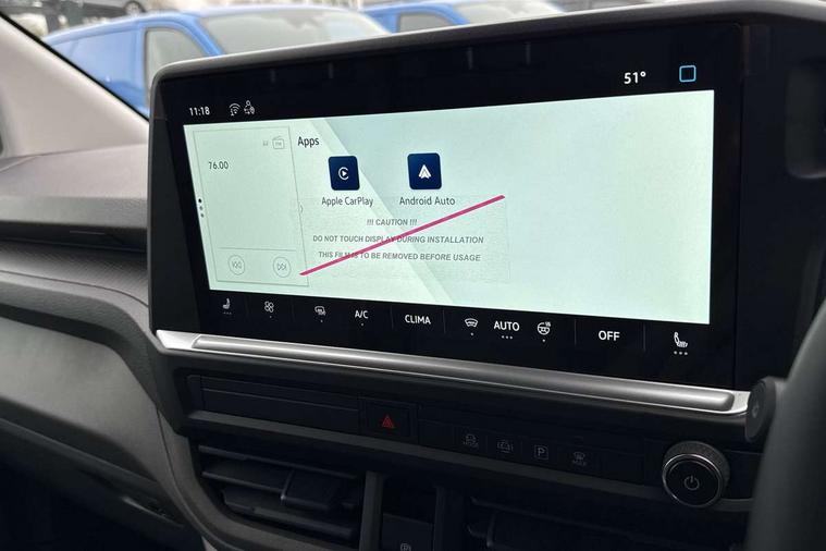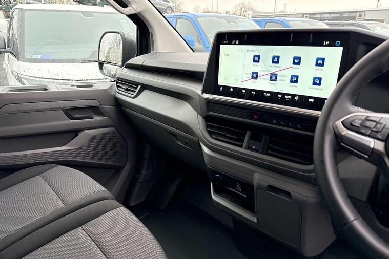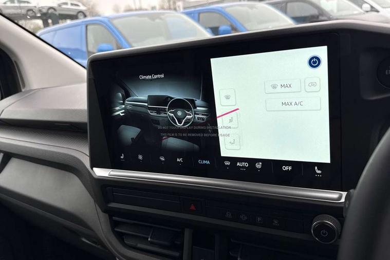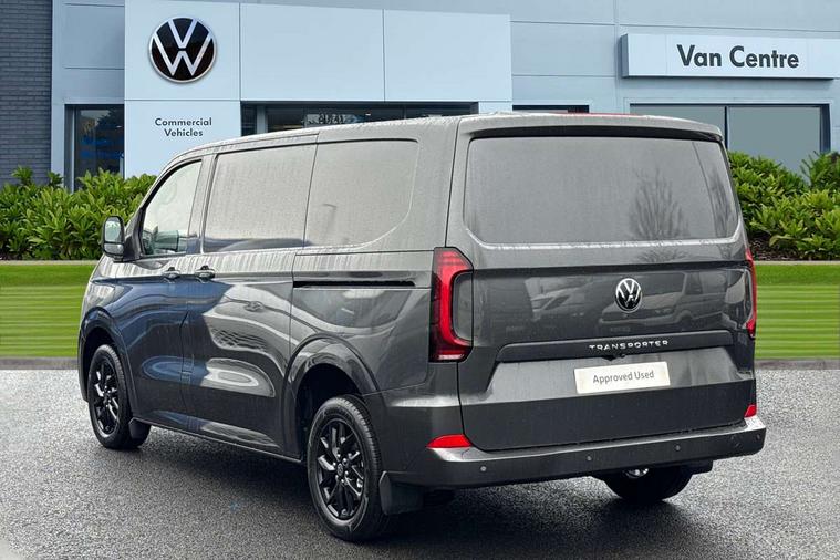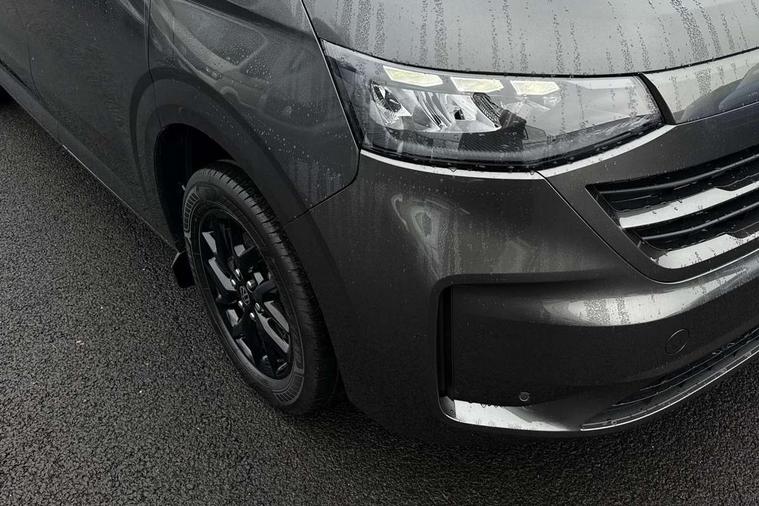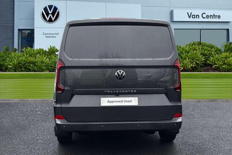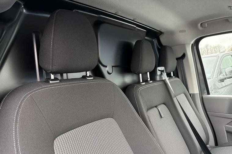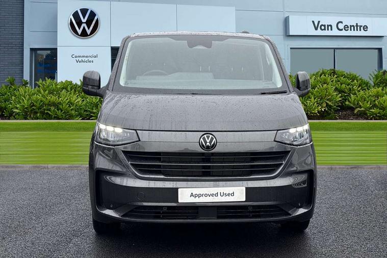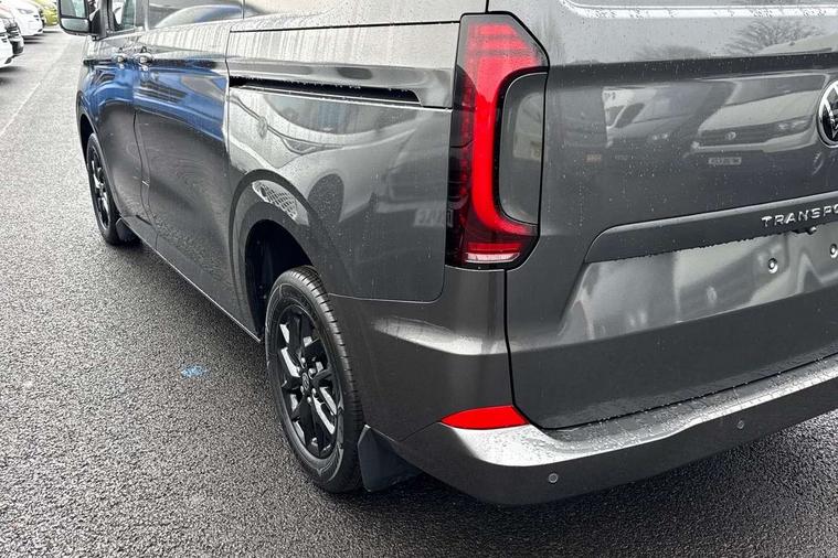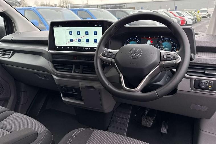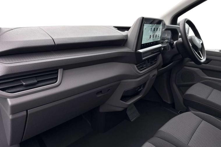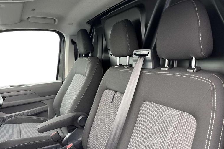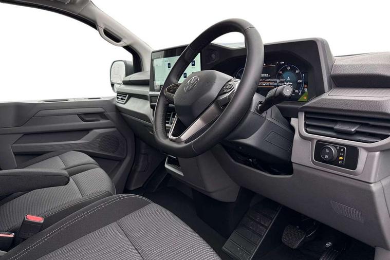 12" digital drivers display, 13" touchscreen infotainment display with wireless app connect and DAB radio, 5G Modem, Adaptive cruise control, Apple CarPlay and Android Auto, Driver alert system, Driver alert system and driver attention monitor, Dynamic road sign display, eCall emergency system, Electromechanical speed sensitive power steering, height and longitudinally adjustable steering column, Front and rear view camera and two side cameras, Lane and blind spot assist with exit warning system, Preparation of VW connect and connect plus, Traffic jam assist, Wireless mobile phone charging, Wrong way driver warning, Body colour bumpers, Body coloured door handles, Body coloured door mirrors, Body coloured radiator grille, Electrically heated, adjustable and folding door mirrors, Heat reflecting side window glass, Mud flaps front and rear, Rear Transporter nameplate in black grained decorative trim, Vehicle opening configuration 1x 1st row of seats, 2x all doors, 12V outlet in centre console and 12V outlet on rear right D-pillar, 2x 15-W USB data/charging ports in dashboard and 1x USB-C, 1x USB-A center bottom, 2x LED lights in load compartment, 3x additional super bright LED lights in load compartment, 4 way height and tilt adjustable head restraints, 5 additional USB-C charging ports, Black plastic scuff plate for sliding door in cargo without illumination, Cabin interior lighting, Gear selector lever on steering wheel, Glasses compartment in driver side roof, Grab handle on A-pillar passenger side, Illuminated lockable glovebox, Lashing rings for reinforced floor covering, Narrow centre console with cup holder and compartment for mobile phone, Overhead storage compartment, Rubber floor covering in cab, Striped fabric upholstery, Without passenger seats in load compartment, Driver and front passenger airbag with front passenger airbag deactivation, Front and curtain airbags for driver and front passenger, Seat belt pretensioner for driver seat, Single tone horn, Anti theft alarm system with interior monitoring in cab, backup horn and towing protection, Electronic immobiliser, Keyless access with safelock, Lockable wheel bolts, Preparation for alcohol ignition interlock, 5+ Promise, Alternator - 230A, Electromechanical brake booster, Electronic stability control, ABS, ASR with deactivation button, hill start assist and brake assist system,
