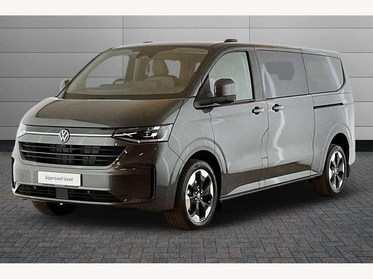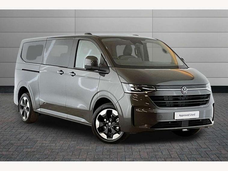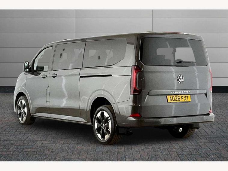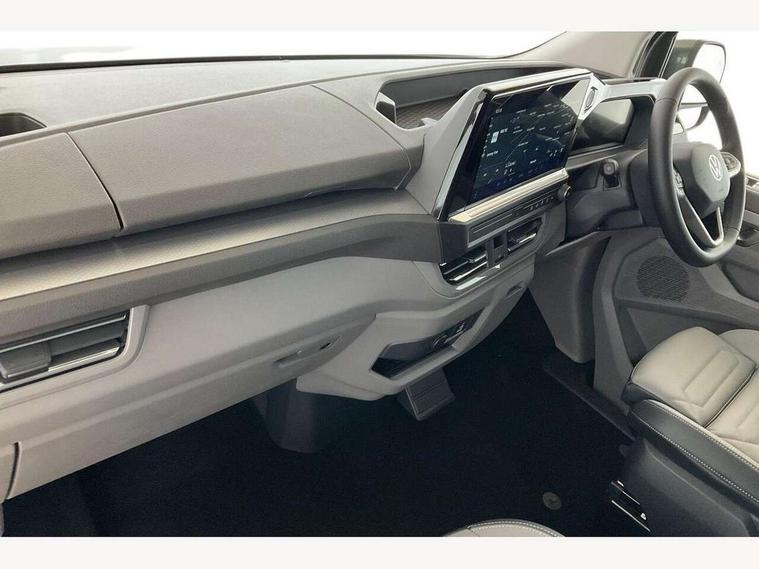 12" digital drivers display, 13" touchscreen infotainment display with wireless app connect and DAB radio, 5G Modem, Cruise control with predictive speed limiter, Driver alert system and driver attention monitor, Dynamic road sign display, eCall emergency system, Front collision warning with braking, Lane assist, Power assisted steering, Wireless mobile phone charging, Wrong way driver warning, 7x USB sockets in cab and 6x USB sockets in passenger compartment, VW Connect and VW Connect plus preparation, Advanced high beam control with dynamic light assist, Body coloured exterior mirror housings and door handles, Body coloured front and rear bumper, Exterior mirrors, power adjustable, heated and power folding with puddle lighting, Heated and laminated safety glass windshield with heat reflecting glass, Heated rear window, IQ light LED matrix headlight with coming home and leaving function, LED rear lights with exclusive light signature, Metal scuff plate on sliding door, illuminated, Mud flaps front and rear, Pop out side window in load/passenger compartment, left, Pop out side window in load/passenger compartment, right, Privacy glass in rear side windows and rear window, Rear tailgate, Rear window wiper with washer system, Sliding doors on drivers side and front passenger side with electric closing aid, Transporter nameplate on the rear fender, Vehicle opening configuration 1x 1st row of seats, 2x all doors, 12 pin terminal block, 12V outlet on D pillar at the bottom, rear right, 2 LED lights in roof of load compartment, 3 seater bench in 3rd row of seats, folding backrest, 3 single seats in 2nd row (fold & tumble ) 6x ISOFIX and 4x TopTether, 3 zone automatic air conditioning system with digital control panel in passenger compartment, 4 way height and tilt adjustable head restraints, Electric auxiliary heater, Footwell lighting in cab, Grab handle on A pillar driver and passenger side, and on B-pillar in passenger compartment, Grab handle on passenger side, A-pillar, Illuminated metal scuff plate in cab, Interior trim level Style for Shuttle, Lashing rings for load restraint system, LED light units for cab and passenger compartment, Molded headliner, woven, in passenger compartment, Overhead storage compartment, Selector lever on steering wheel, Sunshades on side windows of sliding doors in 2nd row passenger compartment, Without floor covering in load compartment, Without side trim panel load/passenger compartment, Driver and front passenger airbag with front passenger airbag deactivation, Side and curtain airbags in cab and curtain airbags in passenger compartment, Single tone horn, Anti-theft alarm system with interior monitoring, backup horn and towing protection, Anti-theft wheel bolts, Keyless access with safelock, Preparation for alcohol ignition interlock, 5+ Promise, Electronic Stability Control (ESC), Tyres 215/60 R17 C 109/107T, low rolling resistance,
