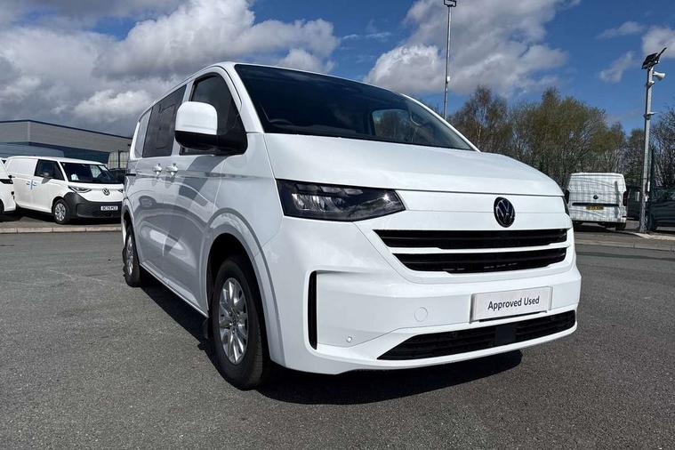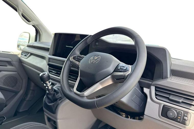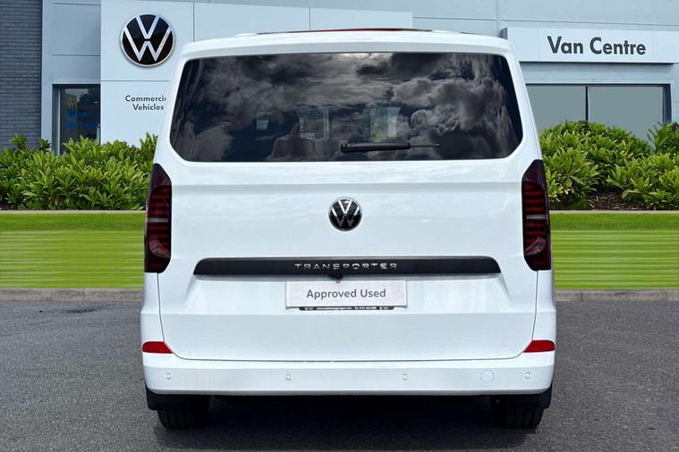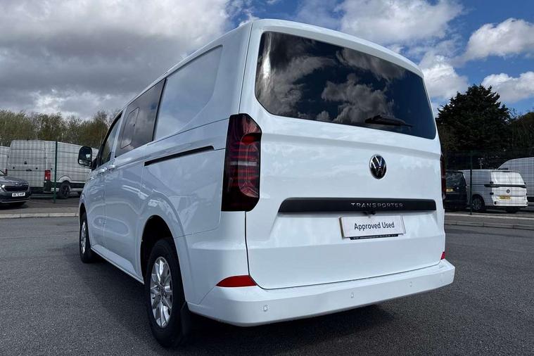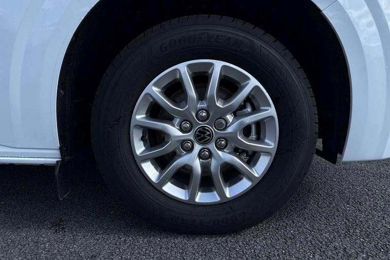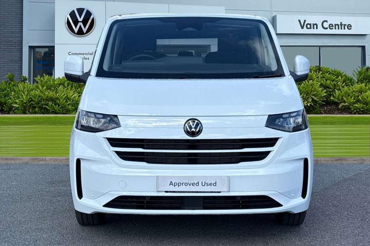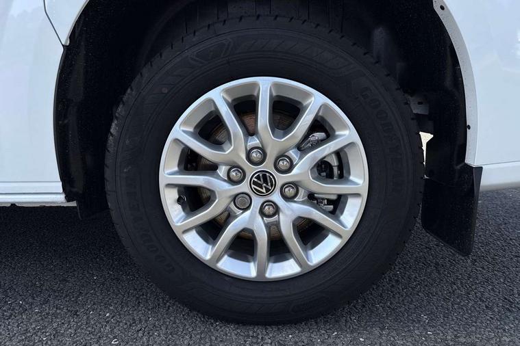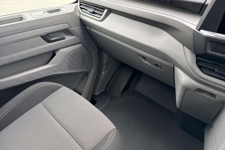 12" digital drivers display, 13" touchscreen infotainment display with wireless app connect and DAB radio, 5G Modem, Adaptive cruise control with predictive speed limiter, Cross traffic assist, oncoming vehicle braking and swerve support, Driver alert system and driver attention monitor, Dynamic road sign display, eCall emergency system, Front and rear parking sensor with manouver braking, Front and rear view camera and two side cameras, Front collision warning with braking, Identification label for N1 commercial vehicle registration, Lane assist with blind spot assist and exit warning system, PAS, Preparation of VW connect and connect plus, Wireless mobile phone charging, Wrong way driver warning, 6 speakers, Body colour bumpers front and rear, Body coloured add on parts, Body coloured door handles, Body coloured door mirrors, Body coloured radiator grille, Dual sliding doors with pop-out window vents (left and right) for 2nd row, Electrically heated, adjustable and folding door mirrors, Heat reflecting glass in front side windows, privacy glass in rear side windows and rear window, Heated and laminated safety glass windshield with heat reflecting glass, High beam control, Mud flaps front and rear, Rear tailgate, Rear Transporter nameplate in black grained decorative trim, Sliding doors on driver and front passenger side, Vehicle opening configuration 1x 1st row of seats, 2x all doors, Window vent for 2nd row, left and right, 12 pin terminal block, 12V outlet in centre console and 12V outlet on rear right D-pillar, 2 LED lights in roof of load compartment, 3 single seats in 2nd row, folding and tumbling, 2x isofix and top tether, 3x additional super bright LED lights in load compartment, 4 tie downs for securing goods in the passenger/load compartment, 4 way height and tilt adjustable head restraints, 7x USB in cab and 2x USB in passenger compartment, Black plastic scuff plate for sliding door in cargo, illuminated, Covers in the bottom area of all side panels and doors in the load compartment, Grab handle on passenger side, A-pillar, Illuminated glove compartment with lockable lid, Leatherette gear lever, LED light units for cab and passenger compartment, Overhead storage compartment, Without bulkhead, Without floor covering in load compartment, Driver and front passenger airbag with front passenger airbag deactivation, Seat belt pretensioner for front seats, Side and curtain airbags in cab curtain airbags in passenger compartment, Single tone horn, Anti theft alarm system with interior monitoring in cab, backup horn and towing protection, Anti-theft wheel bolts, Central locking, Keyless access with safelock, Preparation for alcohol ignition interlock, 5+ Promise, Alternator - 230A, Electromechanical brake booster, Electronic Stability Control (ESC),
