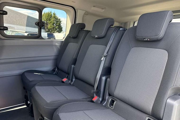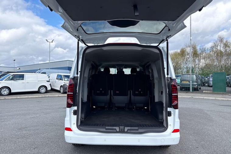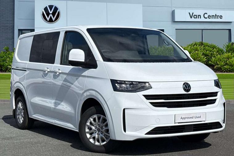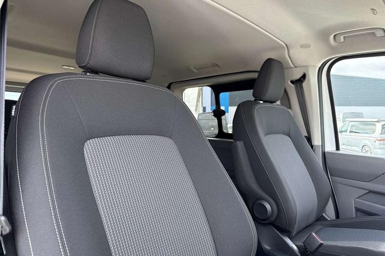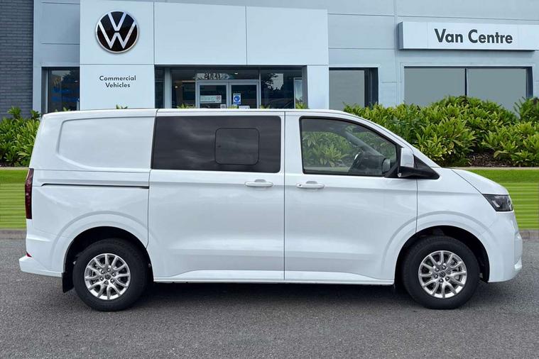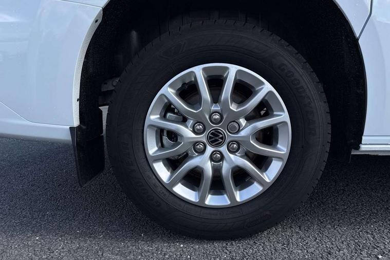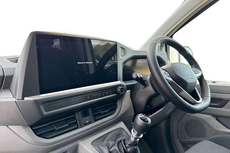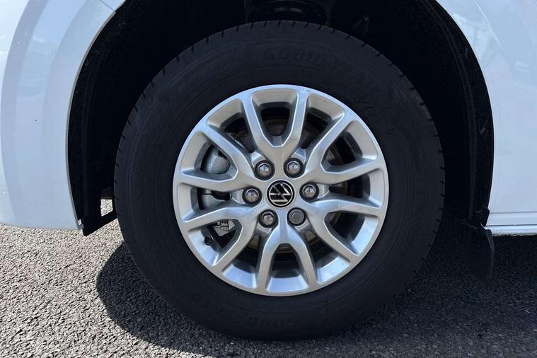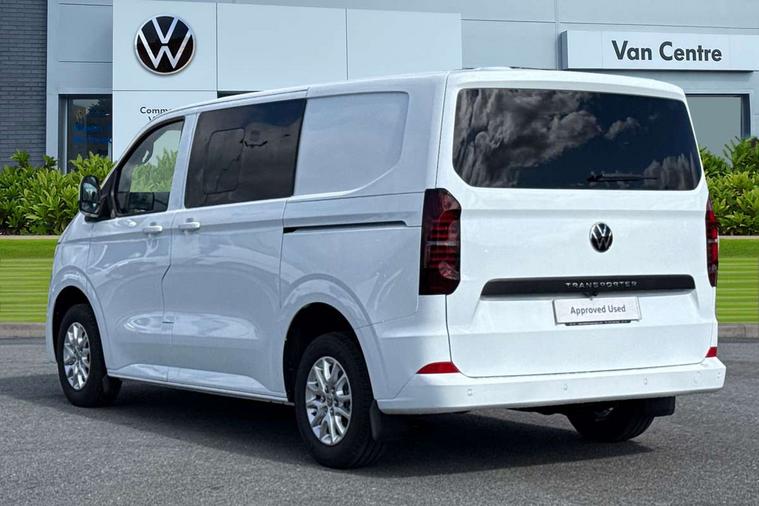 12" digital drivers display, 13" touchscreen infotainment display with wireless app connect and DAB radio, 5G Modem, Adaptive cruise control with predictive speed limiter, Cross traffic assist, oncoming vehicle braking and swerve support, Driver alert system and driver attention monitor, Dynamic road sign display, eCall emergency system, Front and rear parking sensor with manouver braking, Front and rear view camera and two side cameras, Front collision warning with braking, Identification label for N1 commercial vehicle registration, Lane assist with blind spot assist and exit warning system, PAS, Preparation of VW connect and connect plus, Wireless mobile phone charging, Wrong way driver warning, 6 speakers, Body colour bumpers front and rear, Body coloured add on parts, Body coloured door handles, Body coloured door mirrors, Body coloured radiator grille, Dual sliding doors with pop-out window vents (left and right) for 2nd row, Electrically heated, adjustable and folding door mirrors, Heat reflecting glass in front side windows, privacy glass in rear side windows and rear window, Heated and laminated safety glass windshield with heat reflecting glass, High beam control, Mud flaps front and rear, Rear tailgate, Rear Transporter nameplate in black grained decorative trim, Sliding doors on driver and front passenger side, Vehicle opening configuration 1x 1st row of seats, 2x all doors, Window vent for 2nd row, left and right, 12 pin terminal block, 12V outlet in centre console and 12V outlet on rear right D-pillar, 2 LED lights in roof of load compartment, 3 single seats in 2nd row, folding and tumbling, 2x isofix and top tether, 3x additional super bright LED lights in load compartment, 4 tie downs for securing goods in the passenger/load compartment, 4 way height and tilt adjustable head restraints, 7x USB in cab and 2x USB in passenger compartment, Black plastic scuff plate for sliding door in cargo, illuminated, Covers in the bottom area of all side panels and doors in the load compartment, Grab handle on passenger side, A-pillar, Illuminated glove compartment with lockable lid, Leatherette gear lever, LED light units for cab and passenger compartment, Overhead storage compartment, Without bulkhead, Without floor covering in load compartment, Driver and front passenger airbag with front passenger airbag deactivation, Seat belt pretensioner for front seats, Side and curtain airbags in cab curtain airbags in passenger compartment, Single tone horn, Anti theft alarm system with interior monitoring in cab, backup horn and towing protection, Anti-theft wheel bolts, Central locking, Keyless access with safelock, Preparation for alcohol ignition interlock, 5+ Promise, Alternator - 230A, Electromechanical brake booster, Electronic Stability Control (ESC),