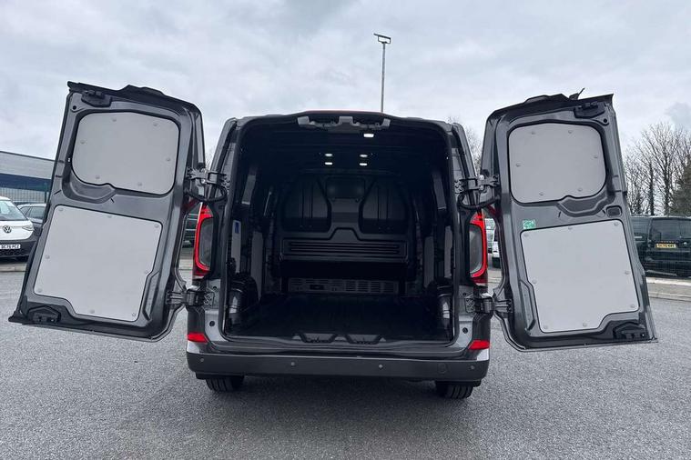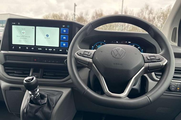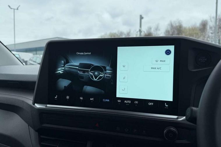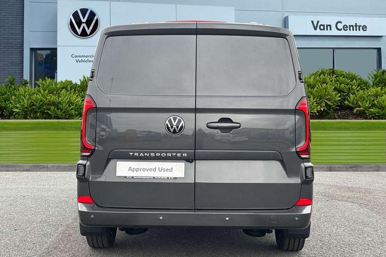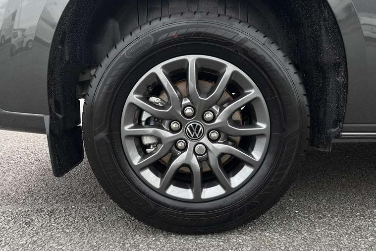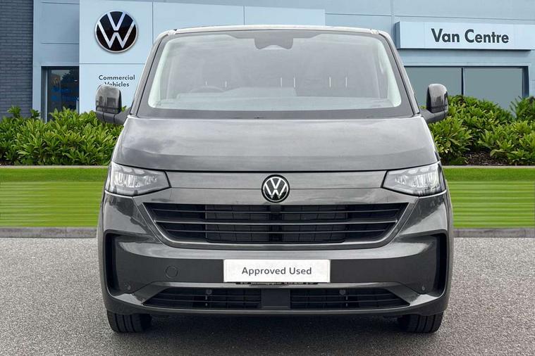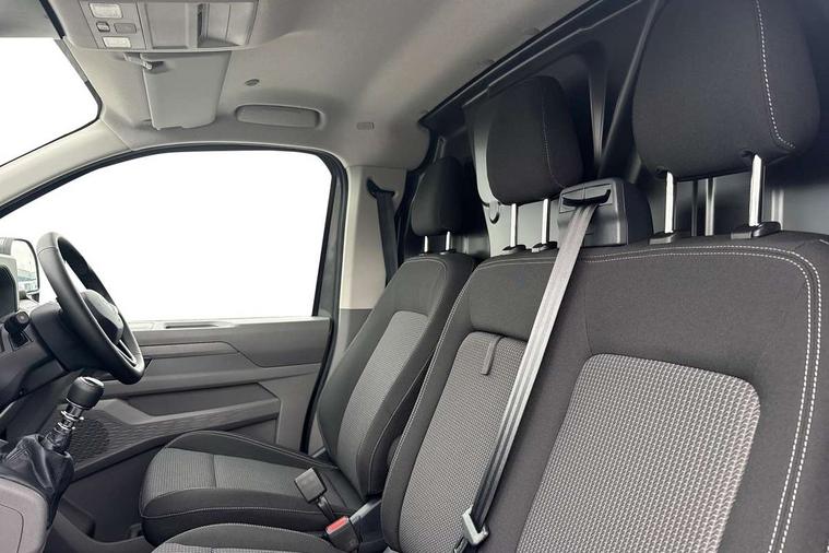 12" digital drivers display, 13" touchscreen infotainment display with wireless app connect and DAB radio, 5G Modem, Adaptive cruise control, Apple CarPlay and Android Auto, Driver alert system, Driver alert system and driver attention monitor, Dynamic road sign display, eCall emergency system, Electromechanical speed sensitive power steering, height and longitudinally adjustable steering column, Front and rear view camera and two side cameras, Lane and blind spot assist with exit warning system, Preparation of VW connect and connect plus, Wireless mobile phone charging, Wrong way driver warning, Body colour bumpers, Body coloured door handles, Body coloured door mirrors, Body coloured radiator grille, Electrically heated, adjustable and folding door mirrors, Heat reflecting side window glass, Mud flaps front and rear, Rear Transporter nameplate in black grained decorative trim, Vehicle opening configuration 1x 1st row of seats, 2x all doors, 12V outlet in centre console and 12V outlet on rear right D-pillar, 2x 15-W USB data/charging ports in dashboard and 1x USB-C, 1x USB-A center bottom, 2x LED lights in load compartment, 3x additional super bright LED lights in load compartment, 4 way height and tilt adjustable head restraints, 5 additional USB-C charging ports, Black plastic scuff plate for sliding door in cargo without illumination, Cabin interior lighting, Glasses compartment in driver side roof, Grab handle on A-pillar passenger side, Illuminated lockable glovebox, Lashing rings for reinforced floor covering, Leatherette gear lever, Narrow centre console with cup holder and compartment for mobile phone, Overhead storage compartment, Rubber floor covering in cab, Striped fabric upholstery, Without passenger seats in load compartment, Driver and front passenger airbag with front passenger airbag deactivation, Front and curtain airbags for driver and front passenger, Seat belt pretensioner for driver seat, Single tone horn, Anti theft alarm system with interior monitoring in cab, backup horn and towing protection, Electronic immobiliser, Keyless access with safelock, Lockable wheel bolts, Preparation for alcohol ignition interlock, 5+ Promise, Alternator - 230A, Electromechanical brake booster, Electronic stability control, ABS, ASR with deactivation button, hill start assist and brake assist system,