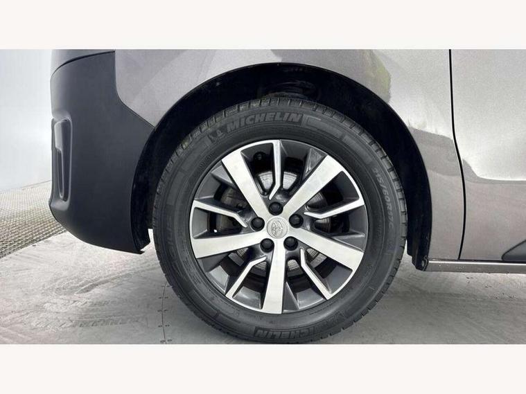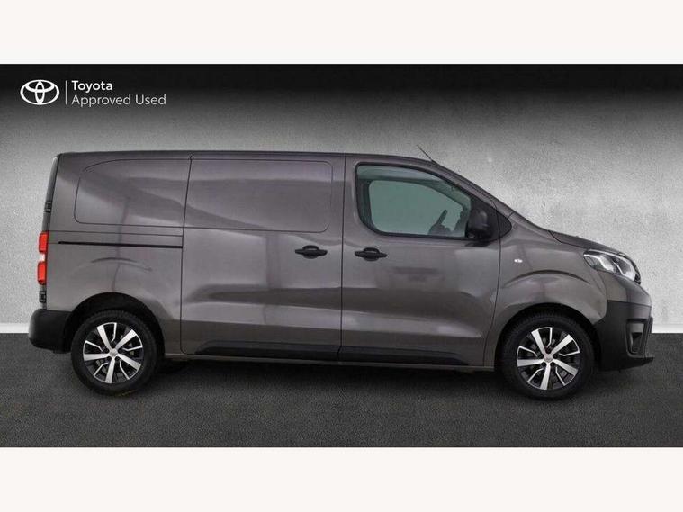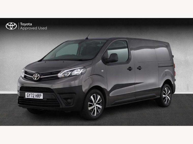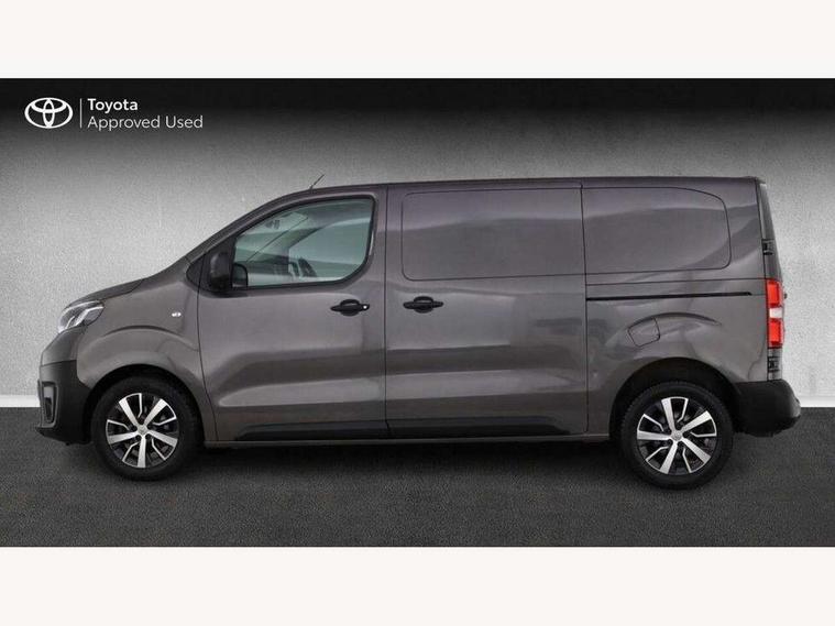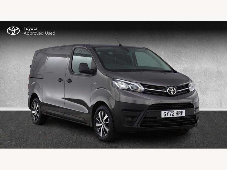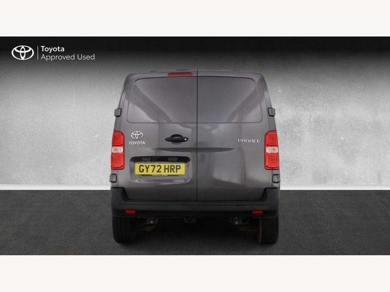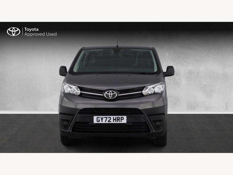 Bluetooth handsfree connectivity, Cruise control, PAS, Tyre pressure warning system (TPWS), 4 speakers, Digital radio (DAB), Radio/CD player, USB connector, 180 degree opening rear doors, Acoustic windscreen, Auto Headlights, Auto wipers, Black bumpers, Black door handles, Black protection moulding on side door, Body Coloured roof, Daytime running lights, Front power windows, Headlight cut-off reminder, Heated door mirrors, LED High mounted stop light, Manually adjustable day/night rear view mirror, Multi reflector halogen headlights, Panel rear wing doors, Power adjustable door mirrors, Rear combination lights, Short Antenna, Smoke tinted (30%) privacy glass on rear passenger window, Two manual sliding side doors, 2 seat front passenger bench, Driver seat armrest, Fabric seats, Front cup holders, Front room lights, Glovebox light, LED Driver and front passenger personal lights, Lighted and chilled upper glove box, Manually reclining and sliding driver and front passenger seats, Open upper dashboard storage compartment, Panel bulkhead with window and protective grille, Storage under passenger bench, Air conditioning and Smart cargo pack - Proace, Parking pack - Proace, Double front passenger airbag, Front passenger airbag on/off switch, Supplement restraint system (SRS) 2 airbags, Alarm, Deadlocks + 2 remote keys, Power door locks, 12V power front outlet, 12v socket in dashboard and rear, Adjustable speed limiter (ASL), Anti lock braking system (ABS), Brake Assist (BA), Stop/start function, Toyota traction select, Vehicle stability control (VSC) and hill start assist control (HAC), Full size spare wheel, Full wheel covers,