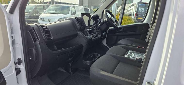 Driver attention alert level-4 with driver monitoring camera, Electric power steering, Global telematics box module, Intelligent Speed Assist, Lane keep assist, Lockable fuel cap, Multi-function on-board trip computer, Peugeot connect with RCE, Rear parking sensors, Traffic sign recognition, Aerodynamic kit - Central spoiler, air guides, active grille shutter, Black door handles, Black door mirrors, Black rear bumper, Black side rubbing strips, Electric front windows, Front windows tinted to 30 percentage opacity, Halogen headlamps with integrated daytime running lights, High level third brake light, Laminated acoustic windscreen, Twin lens door mirrors with electrically adjustable and heated upper mirror, Visible VIN at base of windscreen, 12V socket in cabin, 6 way driver seat with height, rake, reach, lumbar adjustment and armrest, Cabin roof trim, Cargo lashing hooks, Closed upper and open lower glove boxes, Dashboard storage areas, Fabric headrest, Front door pockets with 1.5L bottle holder, Front seats with height adjustable head restraints, Hard plastic floor protection in cabin, Luggage tie down hooks in cargo area x8, Mistral black dashboard, Overhead console with ceiling lamps, Reach adjustable steering wheel, Two cup holders and mobile phone storage in centre or lower dashboard, Automatic activation of hazard warning lights on major deceleration, Driver and front passenger airbag, Height adjustable 3 point pre-tensioner seat belts with force limiter (centre belt on dual passenger seat non-height adjust, no pre-tensioner), Tyre pressure monitoring system, Automatic door unlocking in event of AEBS activation, Dashboard mounted central locking push button and auto locking above 12 mph, Mechanical key x1, Perimetric and volumetric, Thatcham category 1 approved alarm, Remote control central locking and deadlocking, Remote control ultrasonic security alarm system, Remote plip key x1, Thatcham approved rolling code transponder immobiliser, ABS and EBA, Advanced emergency braking system (AEBS), Electronic brake force distribution, Electronic Stability Control (ESC), Hill start assist,