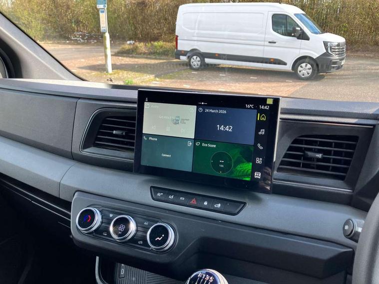 3.5" B&W TFT screen in dials dash, Bluetooth, Distance Warning in TFT cluster, Driver drowsiness and attention warning, eCall emergency system, Intelligent Speed Assist (cruise control with speed limiter and traffic sign recognition), Lane departure warning system, Lane keeping assist, Low fuel level warning light, PAS, Rear parking sensor, Service indicator, Trip computer, 10.1" Touchscreen multimedia display, Apple Carplay/Android Auto, Audio switch on steering wheel, Aux port, Digital radio (DAB), USB socket, Automatic headlights, Automatic high/low beam, Automatic windscreen wipers, Electric door mirrors, Electric front windows with one touch drivers window, Heated door mirrors, LED Daytime running lights, LED front fog lights, LED low beam and halogen high beam Headlights, Left side sliding door, Rear step, Unglazed 180 degree rear french doors, 2 in-dash cupholders, 8 x cargo floor load mounting hooks, Cloth upholstery, Driver's armrest, Driver's seat with longitudinal, height and backrest inclination adjustments, Foldable Passenger bench with fixed table, Front headrests, Front manual air conditioning, Full steel bulkhead, LED cabin lights, LED lighting in load area, Overhead parcel shelves, Passenger underseat storage box, Steering wheel rake adjustment, Steering wheel reach adjustment, Driver's airbag, Passenger airbag, Tyre pressure monitoring system, Alcohol interlock predisposition, Deadlocks, Insurance approved immobiliser, Radio frequency remote central locking, Thatcham alarm system, Roadside assistance - 5 Years / Unlimited Miles, ABS + EBD, Automatic forward emergency braking system (AEBS), ESP, Hill start assist, Trailer sway assist, 16" steel wheels, Full size spare wheel,