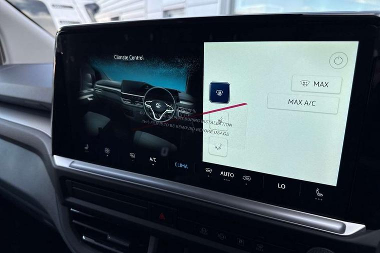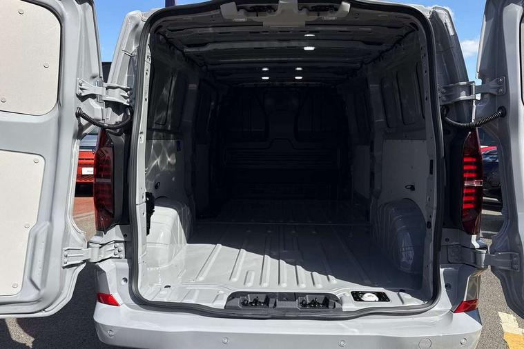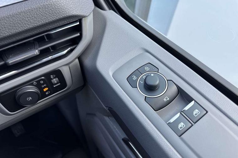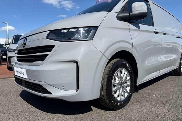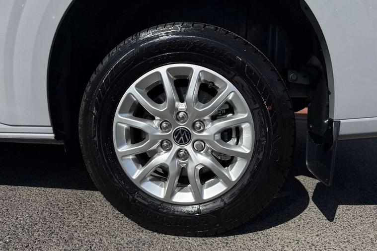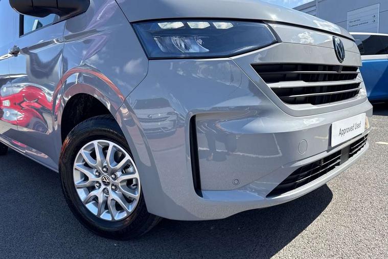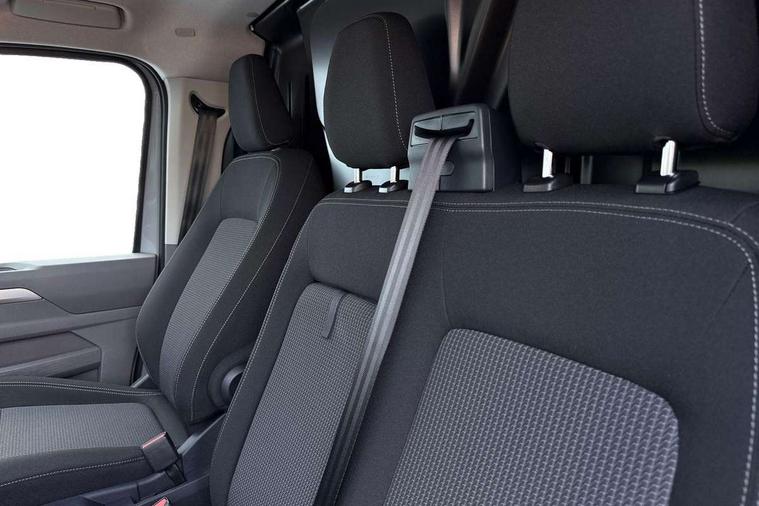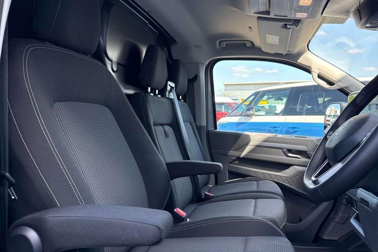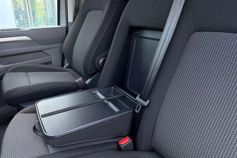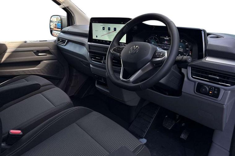 12" digital drivers display, 13" touchscreen infotainment display with wireless app connect and DAB radio, 5G Modem, Adaptive cruise control, Apple CarPlay and Android Auto, Driver alert system, Driver alert system and driver attention monitor, Dynamic road sign display, eCall emergency system, Electromechanical speed sensitive power steering, height and longitudinally adjustable steering column, Front and rear view camera and two side cameras, Lane and blind spot assist with exit warning system, Preparation of VW connect and connect plus, Traffic jam assist, Wireless mobile phone charging, Wrong way driver warning, Body colour bumpers, Body coloured door handles, Body coloured door mirrors, Body coloured radiator grille, Electrically heated, adjustable and folding door mirrors, Heat reflecting side window glass, Mud flaps front and rear, Rear Transporter nameplate in black grained decorative trim, Vehicle opening configuration 1x 1st row of seats, 2x all doors, 12V outlet in centre console and 12V outlet on rear right D-pillar, 2x 15-W USB data/charging ports in dashboard and 1x USB-C, 1x USB-A center bottom, 2x LED lights in load compartment, 3x additional super bright LED lights in load compartment, 4 way height and tilt adjustable head restraints, 5 additional USB-C charging ports, Black plastic scuff plate for sliding door in cargo without illumination, Cabin interior lighting, Gear selector lever on steering wheel, Glasses compartment in driver side roof, Grab handle on A-pillar passenger side, Illuminated lockable glovebox, Lashing rings for reinforced floor covering, Narrow centre console with cup holder and compartment for mobile phone, Overhead storage compartment, Rubber floor covering in cab, Striped fabric upholstery, Without passenger seats in load compartment, Driver and front passenger airbag with front passenger airbag deactivation, Front and curtain airbags for driver and front passenger, Seat belt pretensioner for driver seat, Single tone horn, Anti theft alarm system with interior monitoring in cab, backup horn and towing protection, Electronic immobiliser, Keyless access with safelock, Lockable wheel bolts, Preparation for alcohol ignition interlock, 5+ Promise, Alternator - 230A, Electromechanical brake booster, Electronic stability control, ABS, ASR with deactivation button, hill start assist and brake assist system,