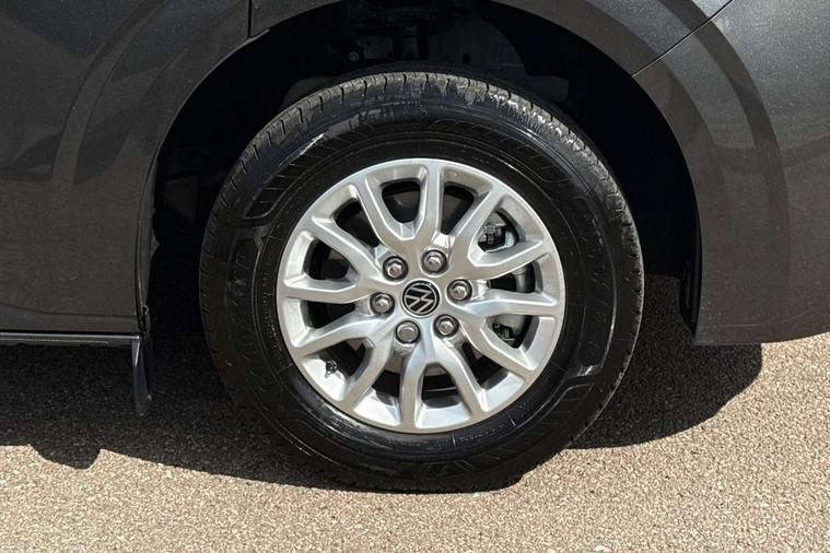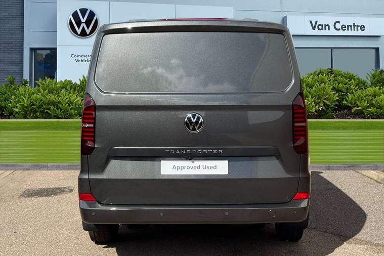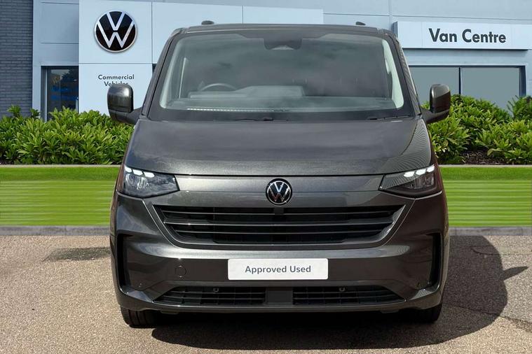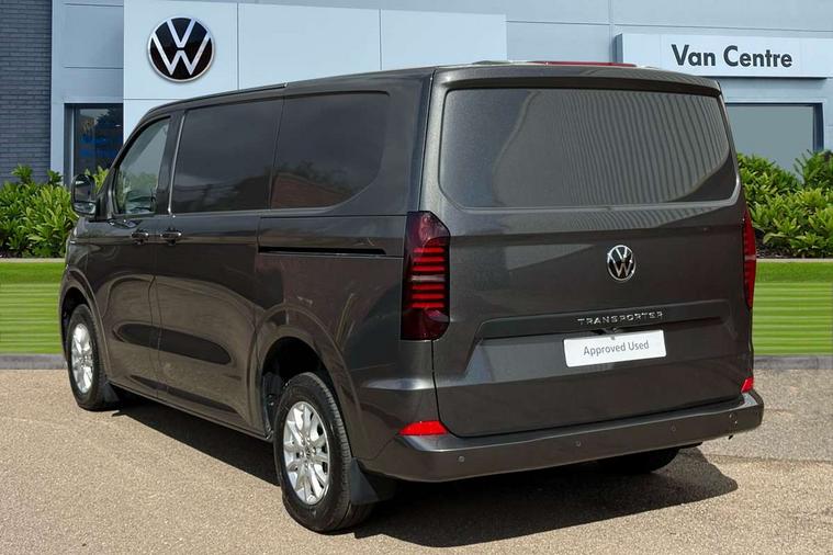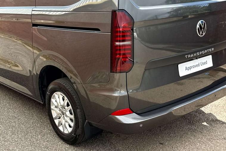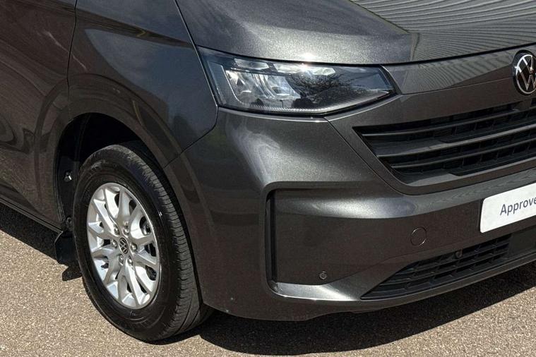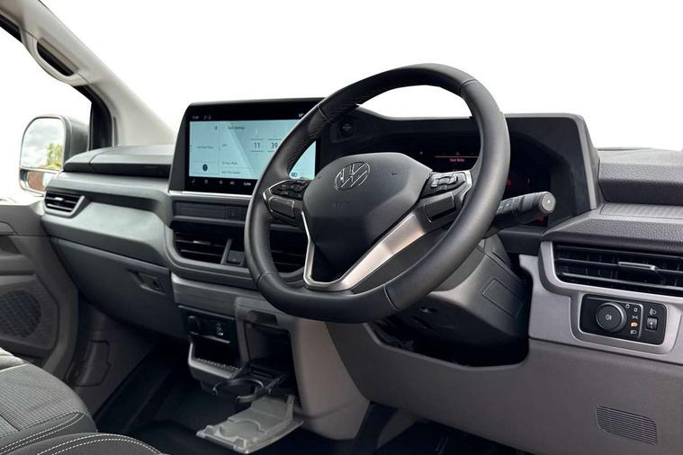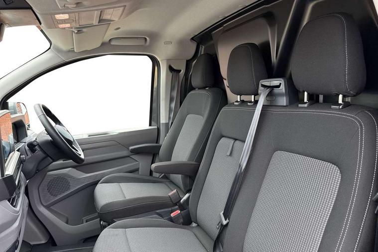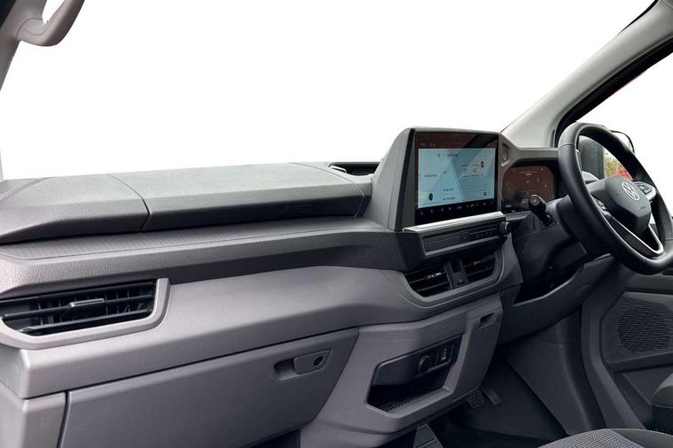 12" digital drivers display, 13" touchscreen infotainment display with wireless app connect and DAB radio, 5G Modem, Adaptive cruise control, Apple CarPlay and Android Auto, Driver alert system, Driver alert system and driver attention monitor, Dynamic road sign display, eCall emergency system, Electromechanical speed sensitive power steering, height and longitudinally adjustable steering column, Front and rear view camera and two side cameras, Lane and blind spot assist with exit warning system, Preparation of VW connect and connect plus, Traffic jam assist, Wireless mobile phone charging, Wrong way driver warning, Body colour bumpers, Body coloured door handles, Body coloured door mirrors, Body coloured radiator grille, Electrically heated, adjustable and folding door mirrors, Heat reflecting side window glass, Mud flaps front and rear, Rear Transporter nameplate in black grained decorative trim, Vehicle opening configuration 1x 1st row of seats, 2x all doors, 12V outlet in centre console and 12V outlet on rear right D-pillar, 2x 15-W USB data/charging ports in dashboard and 1x USB-C, 1x USB-A center bottom, 2x LED lights in load compartment, 3x additional super bright LED lights in load compartment, 4 way height and tilt adjustable head restraints, 5 additional USB-C charging ports, Black plastic scuff plate for sliding door in cargo without illumination, Cabin interior lighting, Gear selector lever on steering wheel, Glasses compartment in driver side roof, Grab handle on A-pillar passenger side, Illuminated lockable glovebox, Lashing rings for reinforced floor covering, Narrow centre console with cup holder and compartment for mobile phone, Overhead storage compartment, Rubber floor covering in cab, Striped fabric upholstery, Without passenger seats in load compartment, Driver and front passenger airbag with front passenger airbag deactivation, Front and curtain airbags for driver and front passenger, Seat belt pretensioner for driver seat, Single tone horn, Anti theft alarm system with interior monitoring in cab, backup horn and towing protection, Electronic immobiliser, Keyless access with safelock, Lockable wheel bolts, Preparation for alcohol ignition interlock, 5+ Promise, Alternator - 230A, Electromechanical brake booster, Electronic stability control, ABS, ASR with deactivation button, hill start assist and brake assist system,