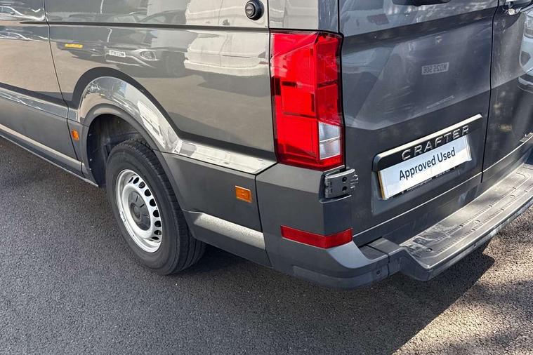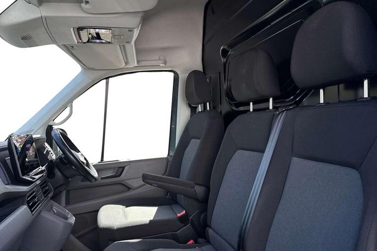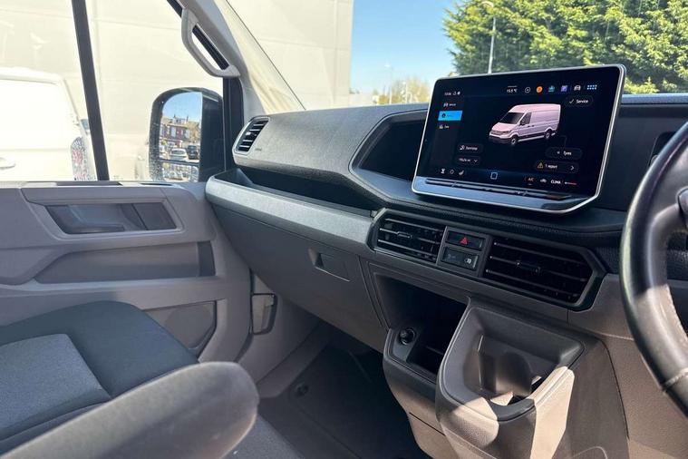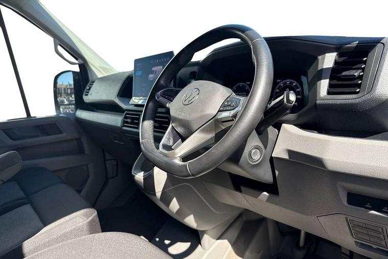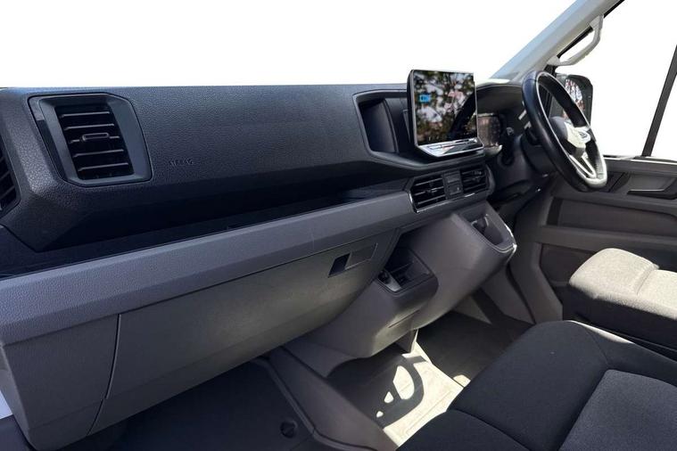 Bluetooth, Digital clock, Driver alert system, E-call + We connect basic preparation, Instrument cluster, Lights on warning buzzer, Locking fuel cap, Multi-function Display Plus, Rev counter, Service indicator, Speedometer, Voice control system, Composition media with 6.5" with we connect plus prep, 4 speaker, multifun display plus, USB, mob interface, app con, "We connect function", DAB Radio, Auto low beam mode, Leaving home function and manual coming home function, Cab doors, Convex and wide angle mirror, Driver seatbelt warning light, Electric windows, Electrically heated and adjustable door mirrors, Half painted front bumper, Heat insulating glass, Indicators in front door mirrors, One towing eye in front, Rear wing doors with 270 degree hinges, Special identification plate, Unpainted radiator grille, Air recirculation system, Ashtray, Centre console storage tray, CFCU preparation, Charcoal filter, Climatic air conditioning, Document holder on centre console, Drinks holders, Electromechanical Servotronic steering, Electronically controlled heating system, Fully adjustable suspension type driver seat, Grab handles on rear entry pillars, Height adjustable head restraints, Height and reach adjustable steering wheel, Illuminated glove compartment with lockable lid, Interior light, including 2 reading lights, Interior light, switchable by door, Jack and tool kit, Preparation for interface for external use with terminal block, Storage compartments in doors and in step, right, Storage tray on dashboard, Two 12V outlets in the cab (in the dashboard), Without rear side trim panel passenger load compartment, Non-smokers pack - Crafter, 3 point inertia reel belt on all seats, Automatic hazard light with emergency braking, Crosswind assist, Driver and front passenger airbag with front passenger airbag deactivation, Height adjustable seatbelts for outer cab seats, 1 rigid key, Anti-theft alarm with interior monitor, back up horn and tow away protect, overhead storage with two 1-DIN, reading light, SAFELOCK with 2 remote keys, Engine immobiliser, ABS, Automatic post collision braking system, EBA, EBD, EDL, ESP, Front disc brakes, HBA, Hill start assist, Parking brake - hill hold control, Start and stop system with regenerative braking, TCS, Hub cap covers,