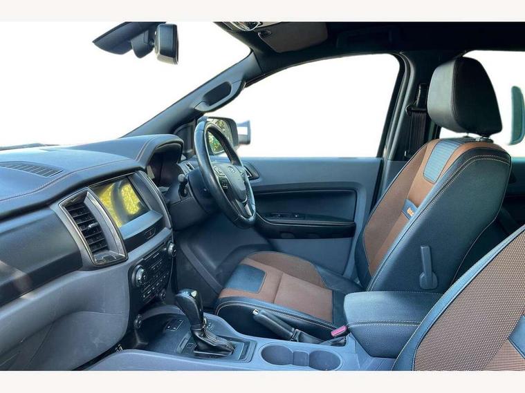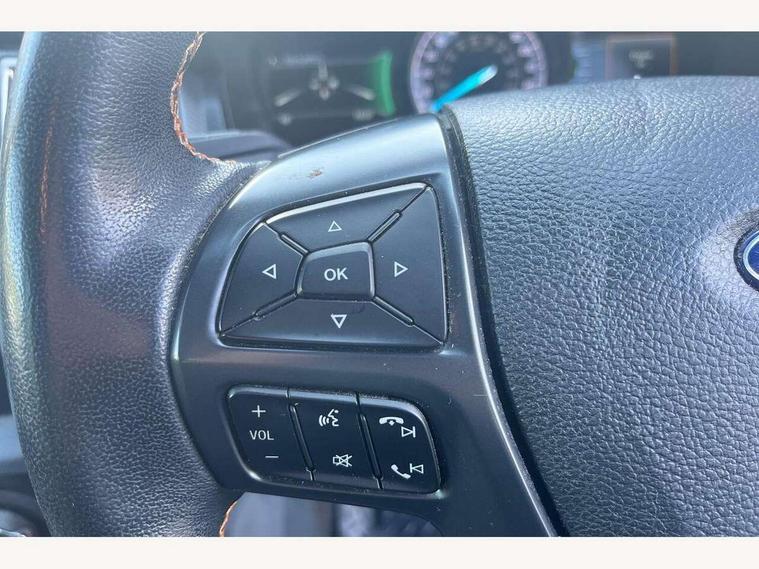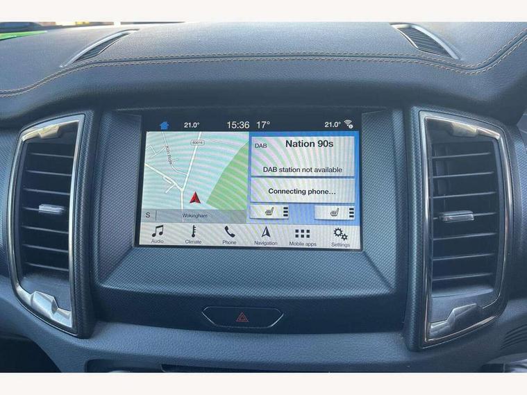 Bluetooth hands free kit with voice control, Digital tachograph, Easy fuel capless refuelling system, Multifunction colour display, Outside air temperature display with ice warning, PAS, Rear view camera, Reverse parking sensor, Satellite navigation system, SD card slot, Seatbelt warning indicator, SYNC 3.0 with 8" Colour touch screen, Trip computer, Tyre pressure monitor, 6 speakers, Aux input socket, DAB with CD and MP3 player, Steering wheel mounted audio controls, USB connection, Aerodynamic sports bar, Aluminium finish roof rails, Auto dimming rear view mirror, Black tailgate handle, Body colour bumpers, Body colour wheel arch mouldings, C-channel loadbox tie downs, Chrome effect scuff plates, Daytime running lights, Door mirror mounted LED turn signals, Electric folding door mirrors, Electric rear windows, Electric windows, one touch lowering + anti trap device (Driver only), Front fog lights, Front mud flaps, Headlamp levelling, Heated front window, Heated rear cab window, Pick up box sports rail extension, Plastic side steps, Privacy glass, Puddle lights in door mirrors, Rain sensitive wipers and auto headlights, Rear step in bumper, Steel double skinned pick up box with 2 position tailgate and inner fenders, Titanium coloured electrically adjustable and heated door mirrors with memory, Titanium grille, Under hood engine cover, 4 speed air recirculation fan + heater, 8 way adjustable and heated driver/single passenger seat with lumbar support, Ambient interior lighting, Caliber cloth/Journey grain leather upholstery, Centre console coolbox, Door operated dome light with courtesy switches on all doors, Driver and passenger sunvisors with illuminated vanity mirrors, Electronic air temperature control (EATC), Fixed bench with 2 height adjustable head restraints, Front centre armrest with storage bin, Front centre console with dual cup holders and armrest with double lidded storage box, Front door storage pockets, Front passenger grab handle, Front seat back map pockets, Graphite finish instrument panel, High performance bedliner with protective side wall, Illuminated glovebox, Interior tie down hooks and load rest, Leather gearknob, Leather wrapped steering wheel with contrast stitching, Load area light, Map reading lights, Overhead stowage with mood lighting, Overhead sunglasses holder, Premium carpet mats, Reach and rake adjustable steering column, Rear cup holders, Tie down rails and rope hooks, 3x3 point rear seatbelts, Child proof rear door locks, Driver and passenger airbag, Front passenger airbag deactivation, Front seatbelt pre-tensioners with load limiters, ISOFIX child seat mountings, Knee airbag, Side curtain airbags, Side Thorax Airbags, Speed sensing door locks, Additional flip key, Immobiliser, Lockable tailgate, Locking wheel nuts, Remote central locking, Spare wheel lock, Thatcham category 1 alarm, 2 x 12V power outlets, ABS + EBD, Emergency brake assist, ESP including traction control, Rear 12v plug, Centre console bezel with graphite finish, 18" Machined alloy wheels,