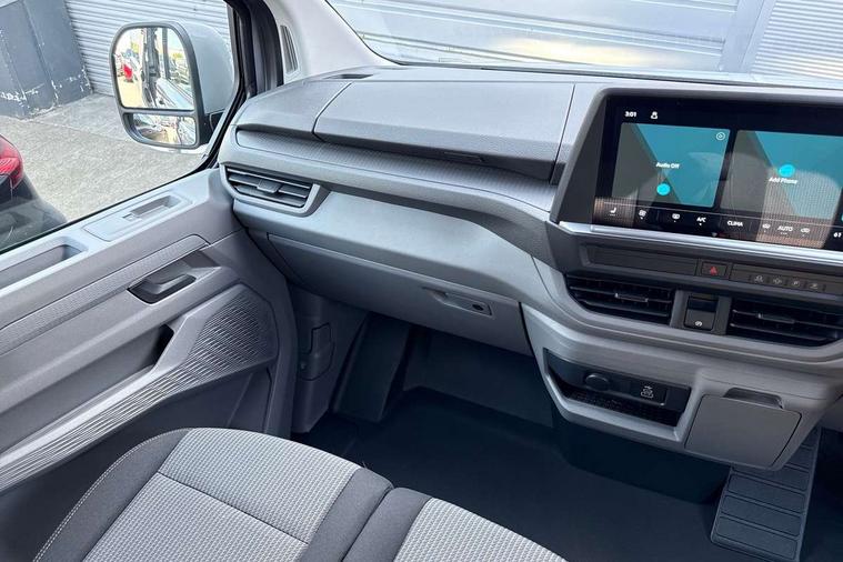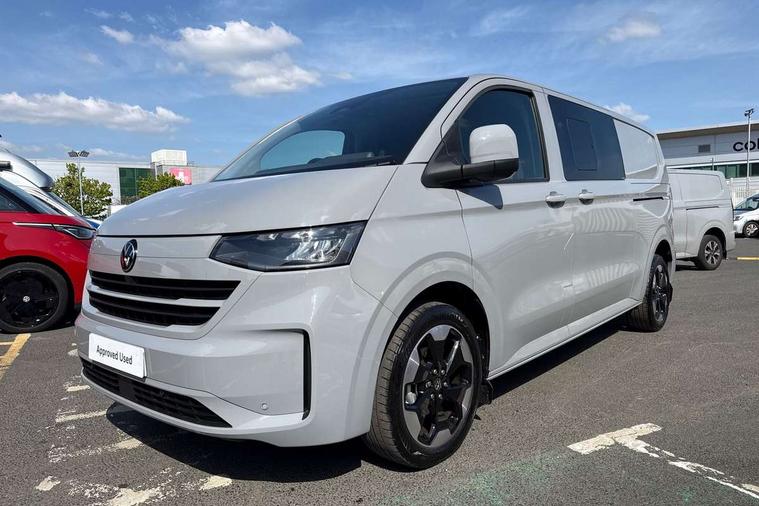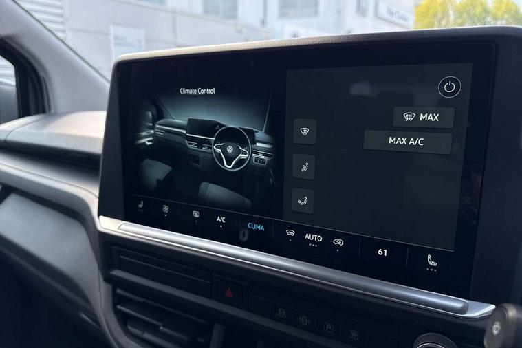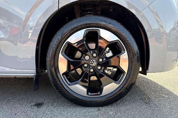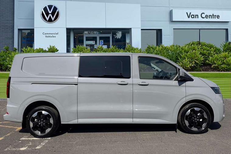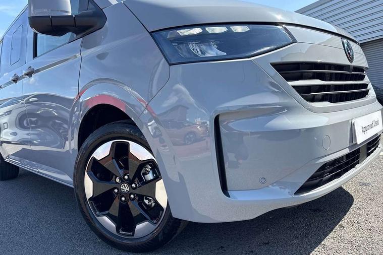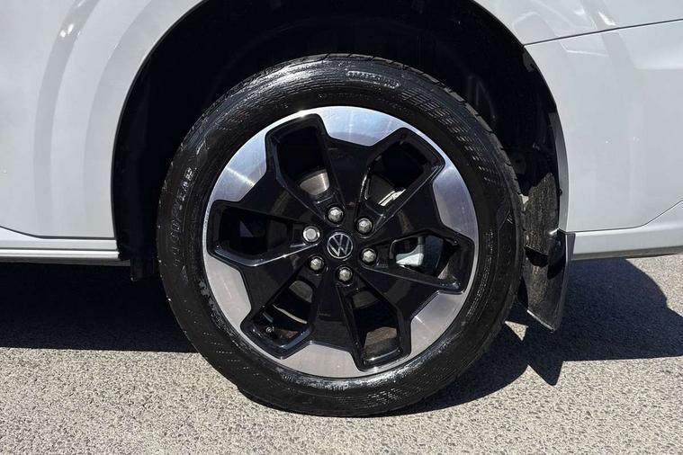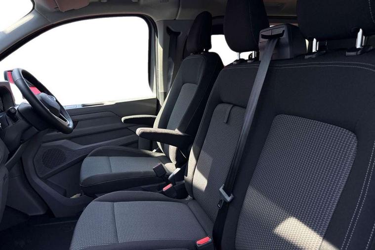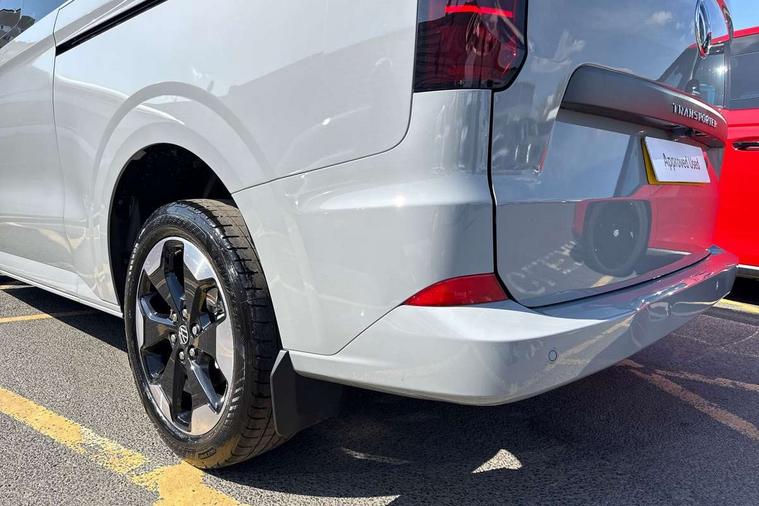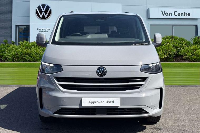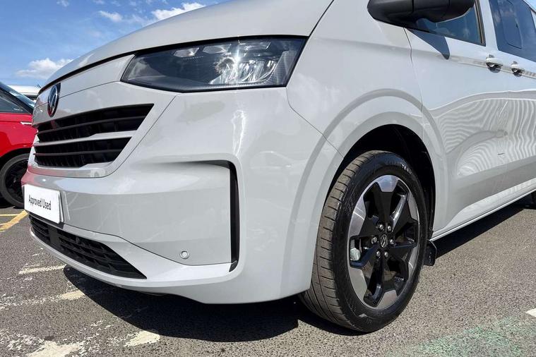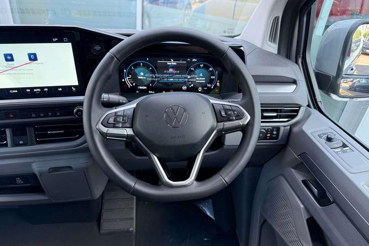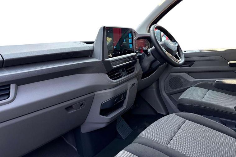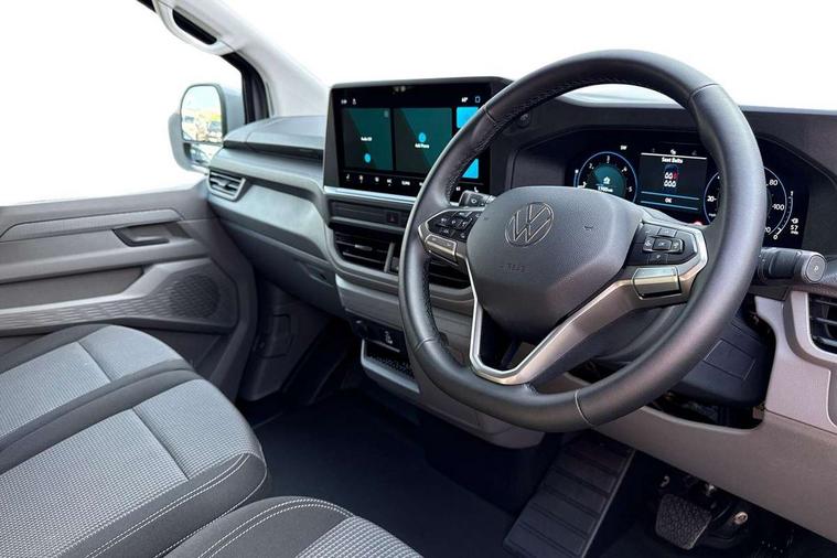12" digital drivers display, 13" touchscreen infotainment display with wireless app connect and DAB radio, 5G Modem, Adaptive cruise control with predictive speed limiter and traffic jam assist, Dynamic road sign display, eCall emergency system, Front collision warning with braking, Identification label for N1 commercial vehicle registration, Lane assist with blind spot assist and exit warning system, PAS, Preparation of VW connect and connect plus, Wireless mobile phone charging, Wrong way driver warning, 6 speakers, Body colour bumpers front and rear, Body coloured add on parts, Body coloured door handles, Body coloured door mirrors, Body coloured radiator grille, Dual sliding doors with pop-out window vents (left and right) for 2nd row, Electrically heated, adjustable and folding door mirrors, Heat reflecting glass in front side windows, privacy glass in rear side windows and rear window, Heated rear window, Laminated windshield made of heat-reflecting glass, Mud flaps front and rear, Rear tailgate, Rear Transporter nameplate in black grained decorative trim, Rear window wiper with washer system, Sliding doors on driver and front passenger side, Vehicle opening configuration 1x 1st row of seats, 2x all doors, 12 pin terminal block, 12V outlet in centre console and 12V outlet on rear right D-pillar, 2 LED lights in roof of load compartment, 3 single seats in 2nd row, folding and tumbling, 2x isofix and top tether, 3x additional super bright LED lights in load compartment, 4 way height and tilt adjustable head restraints, 6 tie downs for securing goods in the passenger/load compartment, 7x USB in cab and 2x USB in passenger compartment, Black plastic scuff plate for sliding door in cargo, illuminated, Black plastic scuff plate in front without illumination, Covers in the bottom area of all side panels and doors in the load compartment, Dimming breakaway interior rear view mirror, Gear selector lever on steering wheel, Grab handle on A-pillar passenger side, Illuminated glove compartment with lockable lid, LED light units for cab and passenger compartment, Overhead storage compartment, Single driver and single passenger seat in cab, Striped fabric upholstery, Without bulkhead, Without floor covering in load compartment, Driver and front passenger airbag with front passenger airbag deactivation, Dual tone horn, Seat belt pretensioner for front seats, Side and curtain airbags in cab curtain airbags in passenger compartment, Anti theft alarm system with interior monitoring in cab, backup horn and towing protection, Anti-theft wheel bolts, Central locking, Preparation for alcohol ignition interlock, 5+ Promise, Alternator - 230A, Electromechanical brake booster, Electronic Stability Control (ESC),