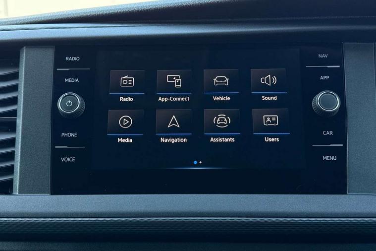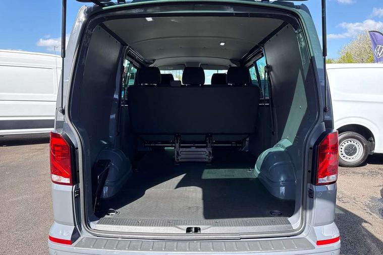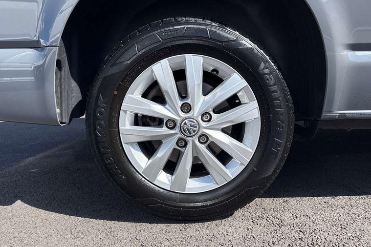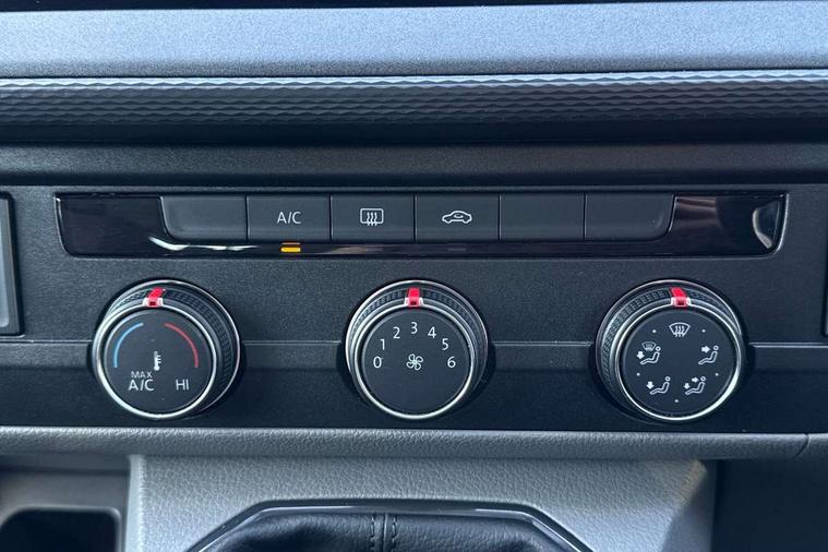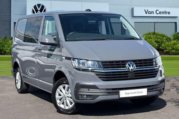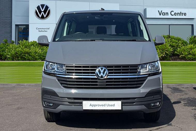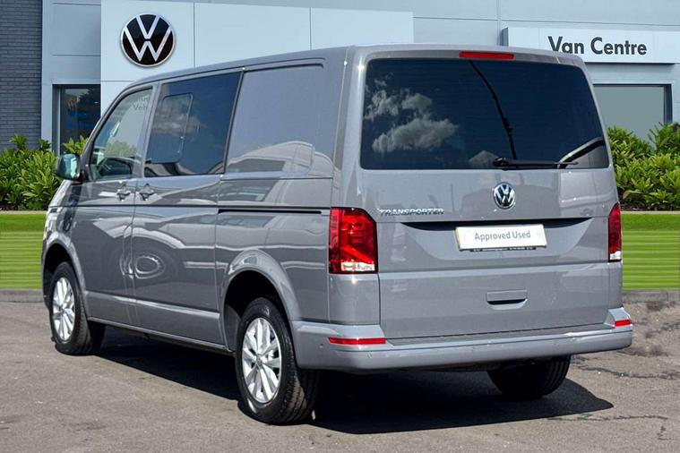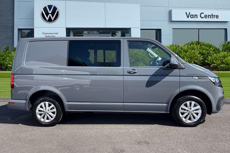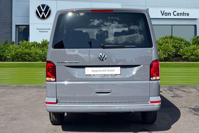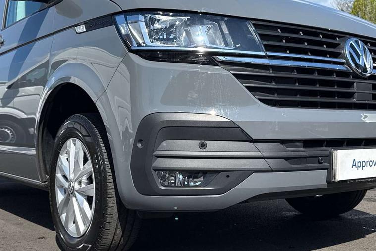 Adaptive cruise control, Child seat anchors ISOFIX and top tether in 2nd row of seats, Cross wind assist, Dimmable illuminated instruments, Driver alert with black and white multi function display plus, eCall emergency system, Forward collision warning front assist with autonomous emergency braking, Headlight range control, Mobile phone interface, Without voice control, 2 USB interfaces type C in dashboard, 4 speakers with 2 tweeters and 2 woofers, Composition colour radio with 6.5" touchscreen, Digital radio reception (DAB+), Volkswagen app connect, Automatic headlight control, leaving home and manual coming home feature, Front fog lamps with cornering light, Green heat insulating glass, Heated front windscreen, Illuminated steps in passenger/load compartment, Left convex exterior mirror, Power folding adjustable door mirrors with separately heated, Privacy glass from the B-pillar and heat-insulating glass in front, Radiator grille with 2 chrome trims, Rear window with heated insulating glass, heated rear window wiper and washer system, Right convex exterior mirror, Tailgate closing with unlatching from the inside, Transporter nameplate on the rear fender, Windshield wiper intermittent control with rain sensor for windshield wipers, Without adhesive film, 3 spoke leather wrapped multi function steering wheel, Additional sound deadening measures in cab and passenger compartment, Auto dimming breakaway interior rear view mirror, Comfort headliner in cab, hardboard roof trim in passenger and load compartment, Dust/pollen filter, Folding grab handles and storage compartments on cab seats, reading light, Front seats on the right in 1st row of seat, Glove compartment with illumination, Heavy duty tool kit and jack, Interior plastic loading edge protection, Lashing rings for load restraint system, LED Interior lighting in load and passenger compartment, Manual height adjustable and lumbar support for driver and single passenger seats, Medium height for vehicles with window aperture hardboard side trim panels in passenger/load compartment, Refrigerant R134a, Standard lower part dashboard in palladium, Without partition, Without seats in 3rd row of seats, Comfort pack - Transporter, Exterior pack without fog light- Transporter, Light and vision pack - Transporter, Non smoker pack - Transporter, 3 point height adjustable seat belts on outer seats cab with electric pretensioners, Driver and front passenger airbag with front passenger airbag deactivation, Power operated child safety lock, Warning buzzer and light for driver seat belt not fastened, Anti theft alarm system with interior monitoring in cab, backup horn and towing protection, Lockable wheel bolts, 16" chassis with 16" brake system, Additional 12V socket, Diesel particulate filter, Electronic stability control, ABS, ASR with deactivation button, hill start assist and brake assist system, Speed limiter, Start/stop system with regenerative breaking, 16" Clayton alloy wheels, Wheel trims,