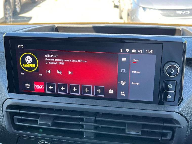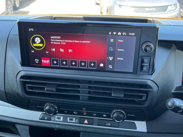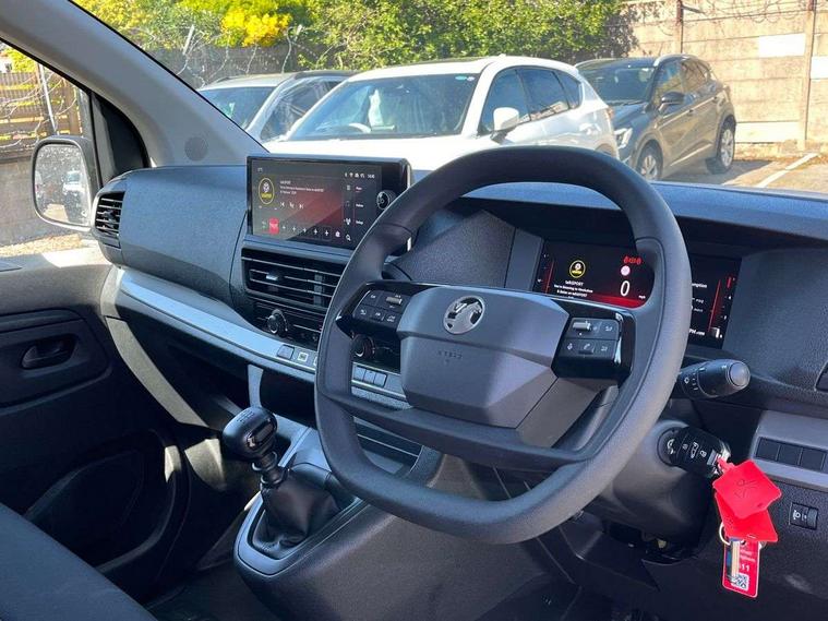 10" digital instrumental cluster, Central fascia display with digital clock, outside air temperature and audio information, Connectivity via BTA with RCE, Cruise control and speed limiter, Driver Attention Alert, level - 3, e-Call and b-Call, Electronic power steering (EPS), Energy absorbing steering column, Forward collision alert, Intelligent Speed Assist, Lane keeping assist, Mobile phone portal - Bluetooth, Vehicle microphone, Phone book access, Smartphone interface with Apple carplay/Android Auto, Multi-function trip computer, Rear parking distance sensor, TPMS (Tyre pressure monitoring system), Vauxhall connect, Audio controls mounted on steering wheel, Flexible short antenna (200mm), Multimedia pro audio system includes Radio AM/FM/DAB, 10" touchscreen with mirror screen(WI-FI), 4G connectivity, Voice control and USB connection, Two speakers and two tweeters, Automatic headlamps on/off, Black door handles, Black front and rear bumpers, Black side protection mouldings, Black sliding door rail cover, Electrically adjustable + heated door mirrors, Familial vizor, Front electric windows with one touch facility, Halogen headlamp with integrated daytime running lights, High beam assist, Laminated acoustic windscreen, Lockable fuel filler cap, Offside and nearside sliding side access doors, Rain sensitive windscreen wipers, Twin solid rear doors, 12V socket in lower glove box (1 only in cabin), Air recirculation facility, Chilled glovebox facility, Curitiba cloth upholstery, Driver's seat armrest, Ergonomic 6-way adjustable driver's seat with reach, rake, height and lumbar adjustment, Fixed floor mounted load restraint lashing eyes x6, Interior roof trim, Manual air conditioning, Overhead console with 1 ceiling lamp (dome type and 3 lamps), Reach and rake adjustable steering wheel, TPO plastic flooring, USB socket in cabin (dashboard), Automatic fuel cut-off and door unlocking in event of accident, Driver and front passenger airbags, Height adjustable lap and diagonal inertia reel front seatbelts, Passenger airbag deactivation manually, Dashboard mounted central locking push button and auto locking above 7mph, Engine deadlock immobiliser, Remote control central locking and deadlocking, Selective door locking, Two keys with integral remote, 22.5 litres AdBlue tank, 70L fuel tank, ABS, Advanced emergency braking system (AEBS), EBA, Electronic brake force distribution (EBFD), ESC, ESP, Floor mounted handbrake lever, Hill start assist, Manual parking brake, Traction control, Mistral black dashboard trim with liquid paladium decor strip in mid-section, Michelin Agilis 2 tyres - 215/65 R16C,