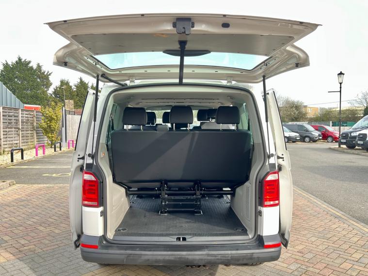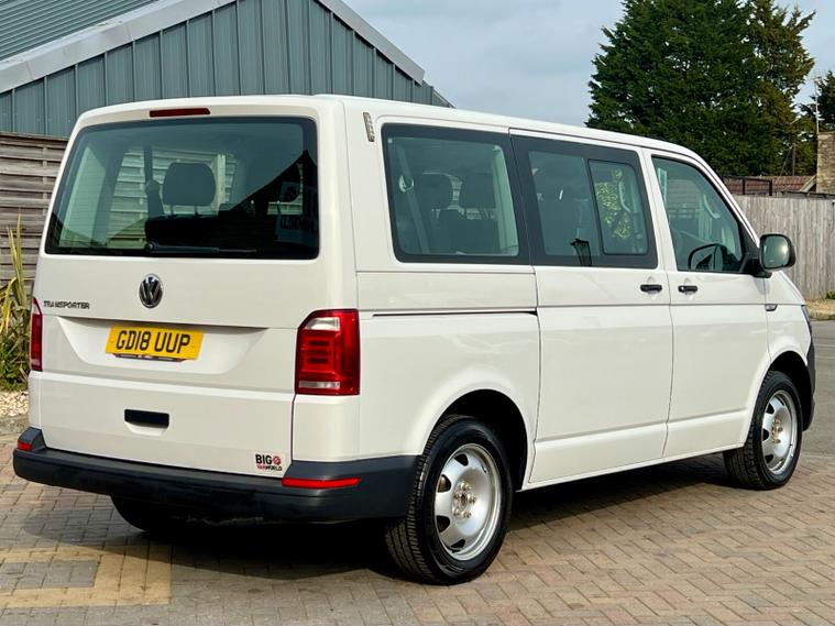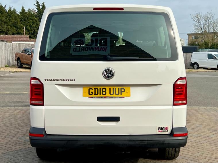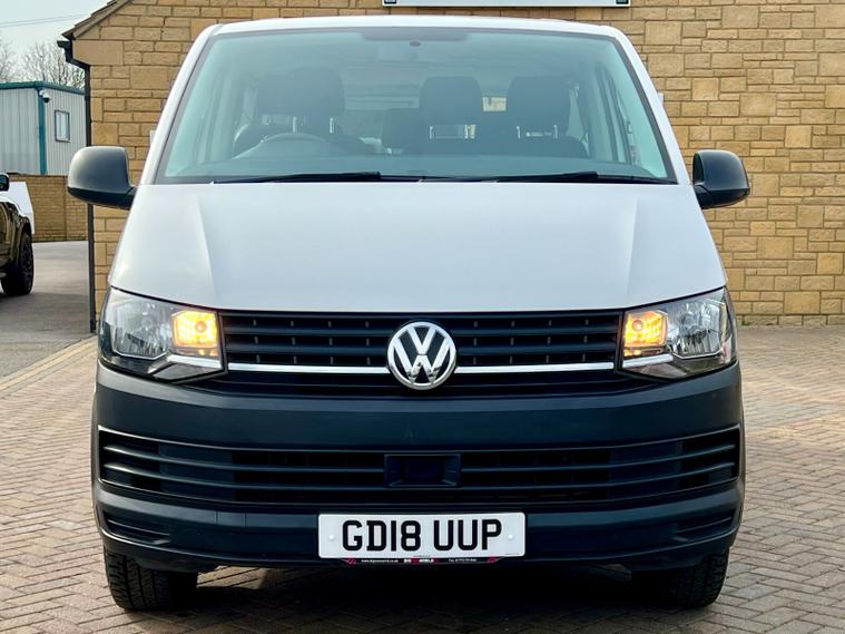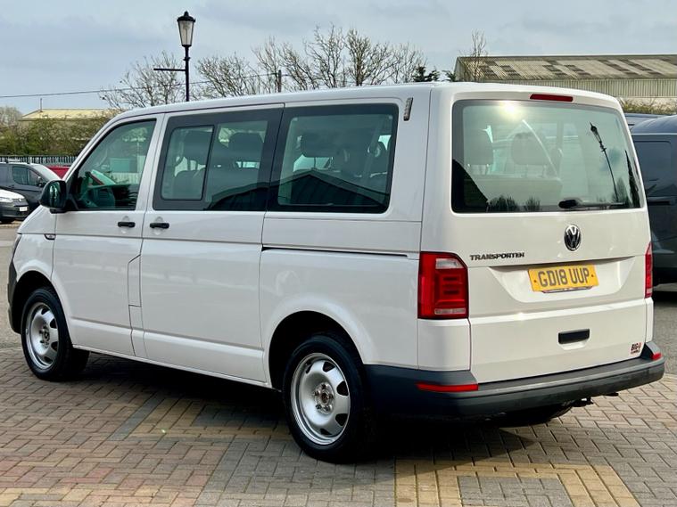 This is a Volkswagen Transporter Shuttle S, a diesel van with a 2.0 litre engine, first registered in 2018. The vehicle is the 2.0 TDI BlueMotion Tech S DSG FWD SWB Euro 6 (s/s) 5dr derivative, with an S trim.