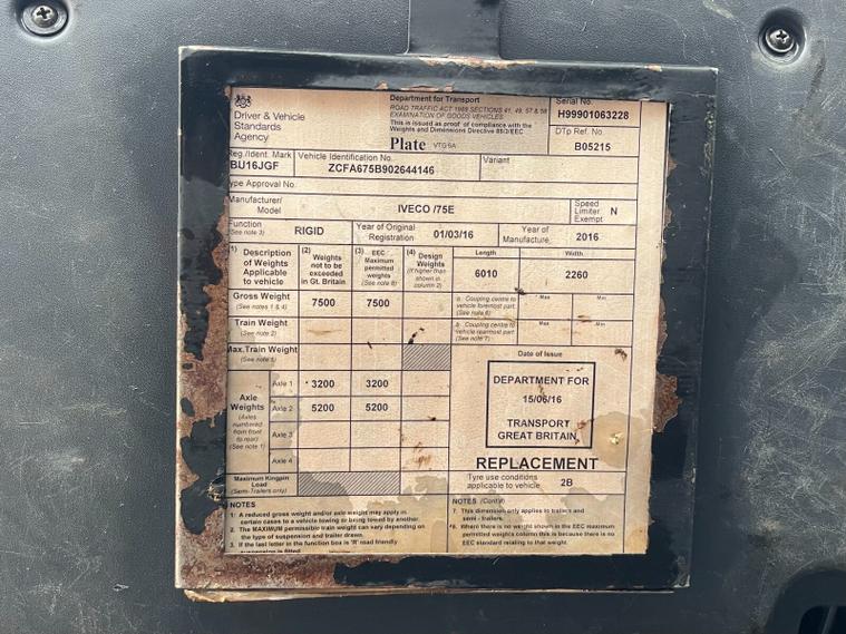 2016 16 Reg IVECO EUROCARGO 75E16S 4X2 DAY CAB 7.5 TONNE HGV 12FT5 TIPPER TRUCK LORRY