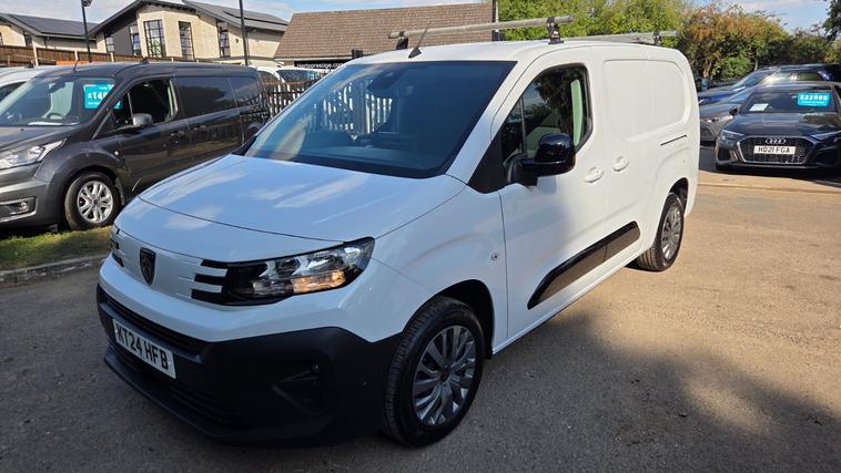 Peugeot Partner 1.5 BlueHDi 100 Asphalt Van 2024, EXCELLENT VALUE !! LONG WHEEL BASEGREAT SPEC LOW MILEAGE LONG WHEEL BASE VAN IN WHITE, 3 SEATS, FULL SCREEN NAVIGATION, REAR CAMEAR, ROOF RAILS, LINED, JUST SERVICED. BALANCE OF WARRANTY TILL 2027. This 2024 Peugeot Partner van boasts an exceptionally low mileage of just 9000 miles, having had only one owner since new. The 1.5 BlueHDi 950 Asphalt Long Panel Van LWB Euro 6 (s/s) 6dr is powered by an efficient 1.5L Diesel Engine, meeting Euro 6 emissions standards. It comes equipped with a range of practical features including rear parking sensors for easier manoeuvring, automatic on-off headlight control for convenience, and manual air conditioning with air recirculation. The Comfort Connect Pack enhances the driving experience with Blind Spot Assistance, front and rear parking sensors, a rear parking camera, and a heated steering wheel. Illumination is provided by Eco-LED headlamps with integrated daytime running lamps., , With a generous cargo volume of 3900 litres, this Partner is ready for your business needs. Its impressive fuel economy of 54 mpg and low CO2 emissions indicate it is more economical to run than many similar vehicles. These highlights, combined with its minimal mileage and single ownership, make this Peugeot Partner a compelling choice for those seeking a reliable and efficient commercial vehicle., Long wheel-base, 3 seats, White, 1 owner, 10in Digital Cluster, 12V Socket - Dashboard, 16in Steel Wheels - Black with Full Size Hubcap, 6-way Drivers Seat - Reach-Rake-Height and Lumbar, Advanced Emergency Braking System, Airbag - Row 1 Curtain, Airbag - Row 1 Side Thorax, Automatic Activation of Hazard Warning Lights on Major Deceleration, Automatic On-Off Headlight Control, Bumpers - Body Coloured Front and Rear, City Pack with Dynamic Surround View, Comfort Connect Pack, Cruise Control with Speed Limiter, Dashboard Mounted Central Locking Push Button and Auto Locking Above 7mph, Door Handles - Body Coloured, Door Mirrors - Electrically Adjustable-Heated and Folding, Driver Attention Alert, Drivers Airbag, Eco-LED Headlamps with Integrated Daytime Running Lamp, Electric Front Windows with One-Touch Operation, Electric Power Steering with Reach and Rake Adjustable Steering Column, Electronic Parking Brake, Electronic Stability Control and ABS with Hill Start Assist - EBA and EBFD, Front Fog Lights, Front Passenger Airbag, Hard Plastic Floor Protection in Cabin, High Beam Assist, Intelligent Speed Assistance, Lane Keeping Assist, Loading Floor Trim, Manual Air Conditioning with Air Recirculation Facility, Modular Bulkhead and Passenger Bench Seat, Nearside Sliding Side Door, Offside Sliding Side Doors, Overhead Storage Shelf in Cabin, Painted Black Door Mirror, Peugeot Connect with RCE, Peugeot i-Connect Infotainment System NAVI Featuring, Primary and Spare Folding Keys, Rain Sensing Front Wipers, Rear Parking Sensors, Remote Control Central Deadlocking with Immobiliser, Remote Control Ultrasonic Security Alarm System, Seatbelts with Action, Short Antenna - 200mm, Side Mouldings - Painted Black, Six Fixed Floor-mounted Load Restraint Lashing Eyes, Sliding Door Rail Cover - Body Colour, Steering Wheel - Sports, Steering Wheel Audio Control Buttons, Tyre Inflation Kit, Tyre Pressure Monitoring System, Unglazed Asymmetric Rear Doors Opening to 180 Degrees, Versatile Full Bulkhead with Clothes Hook, EXCEPTIONAL HPI CLEAR CARS. 12 MONTHS AA BREAKDOWN COVER. FULL DEALER FACILITIES, £16, 750