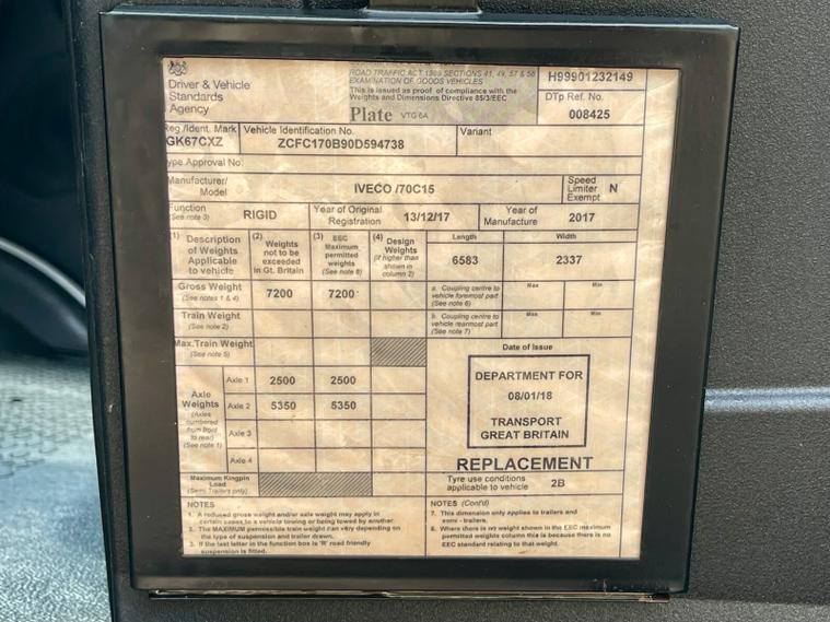 2017 67 reg IVECO DAILY 70C15 4X2 DAY CAB7.2 TONNE HGV 13FT5 FRIDGE/FREEZER BOX