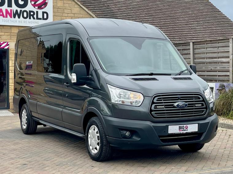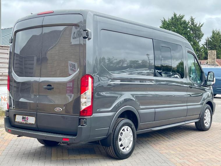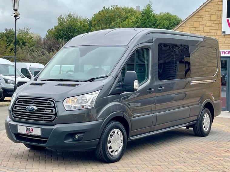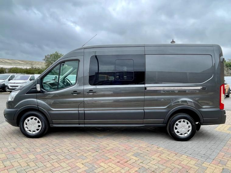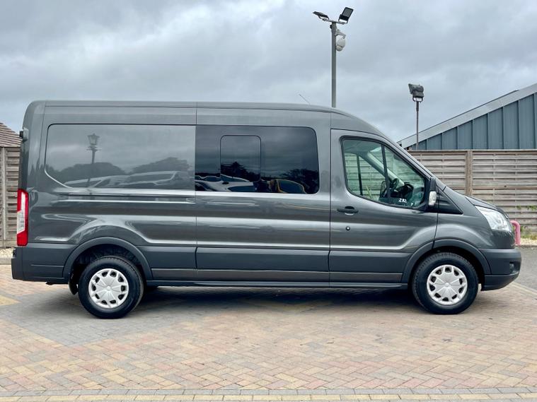 2019 68 reg FORD TRANSIT 350 2.0 TDCI 130 BHP L3 H2 TREND ECOBLUE 6 SEATS DOUBLE CAB AUTO finished in Metallic Magnetic Grey, this van offers the perfect blend of passenger space and load-carrying capability. Its 2.0 TDCI 130 BHP engine combined with a smooth automatic gearbox delivers effortless performance, making it ideal for both city and motorway driving.
