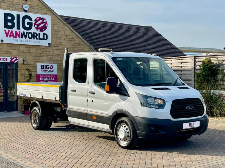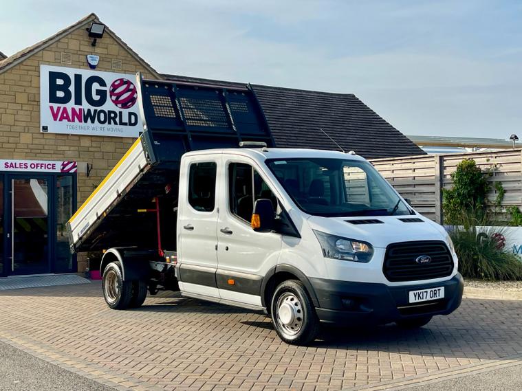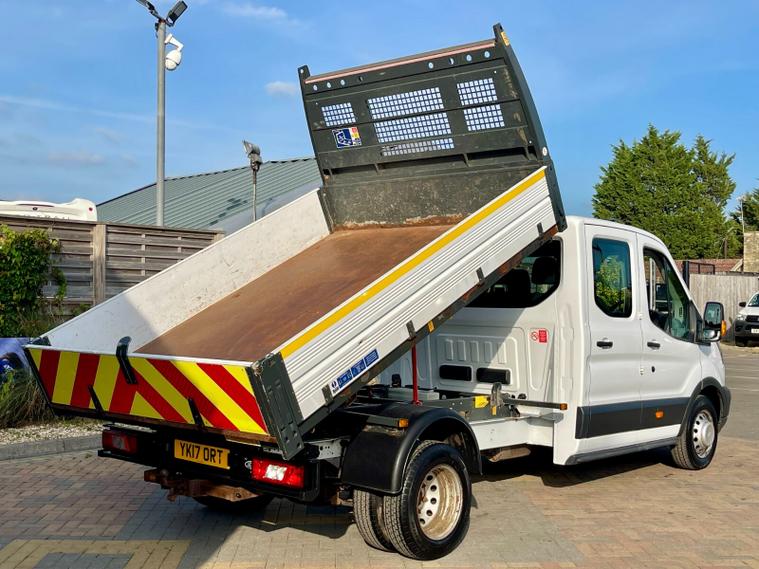 2017 17 reg FORD TRANSIT 350 2.0 TDCI 130 BHP L3 7 SEATS DOUBLE CAB ALLOY TIPPER finished in FROZEN WHITE with spec to include Twin Rear Wheel, Bluetooth, Tow Bar, Electric Windows, PAS.