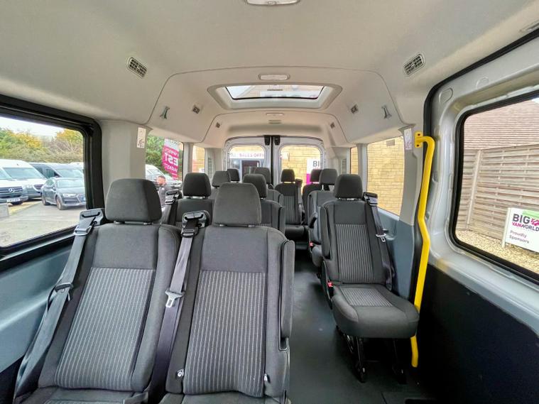 The 2018 18 reg Ford Transit 410 2.2 TDCi 125 BHP L3 H3 Trend 15-Seater Minibus finished in Metallic Moondust Silver is a superbly equipped and spacious people carrier designed to deliver comfort, practicality, and reliability. Ideal for group transport, schools, shuttle services, or large families, this Transit Minibus combines Ford’s trusted performance with a high level of refinement and safety.