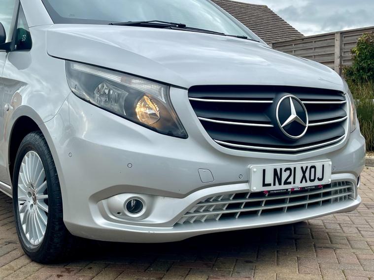 2023 23 reg MERCEDES VITO 116 2.0 CDI 163 BHP L2H1 PREMIUM 9G-TRONIC AUTO finished in Silver, this stunning van combines premium styling with a powerful 163 BHP engine and smooth 9G-Tronic automatic gearbox, delivering a refined and comfortable drive that is ideal for both business and leisure use.