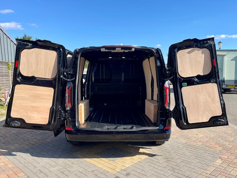2024 74 reg FORD E-TRANSIT CUSTOM 320 65KWH 136 BHP L1H1 LIMITED ELECTRIC AUTO finished in BLACK with spec to include 16in Sparkle Silver Alloy Wheels, Parking Sensors, Reverse Camera, Air Con, Cruise Control, Bluetooth, Bulkhead, Ply Lined, Auto Headlights, Electric Mirrors & Windows, DAB, PAS.