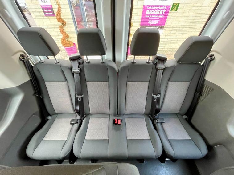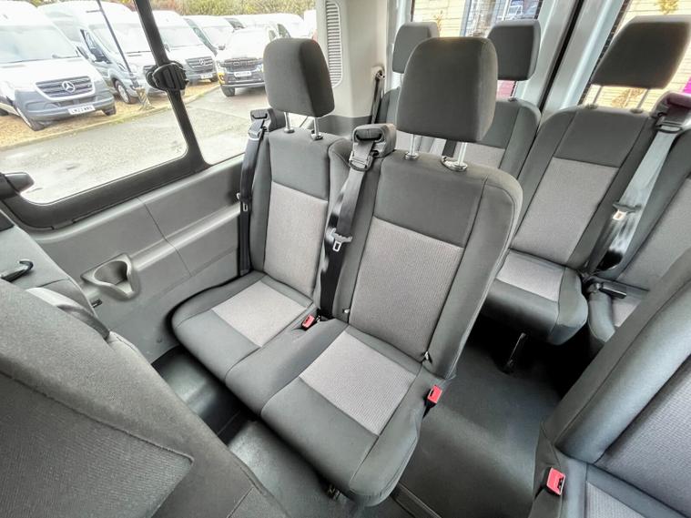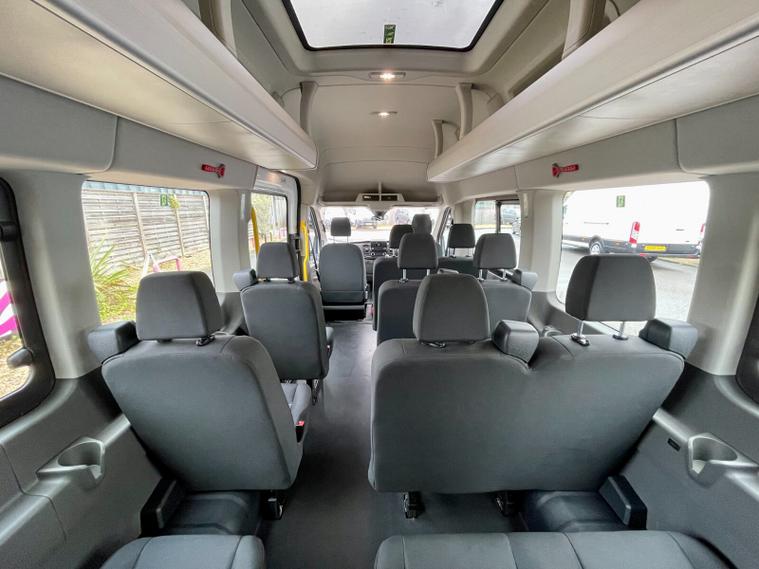 Inside, the Transit Trend offers a refined and practical environment with seating for up to 17 passengers, along with overhead storage, air conditioning, cruise control, and Bluetooth connectivity for comfort and communication on the move. The inclusion of a tachograph (tacho) further supports professional or commercial passenger transport requirements.